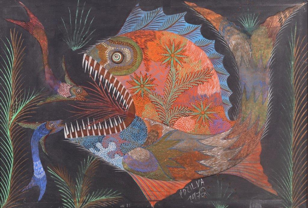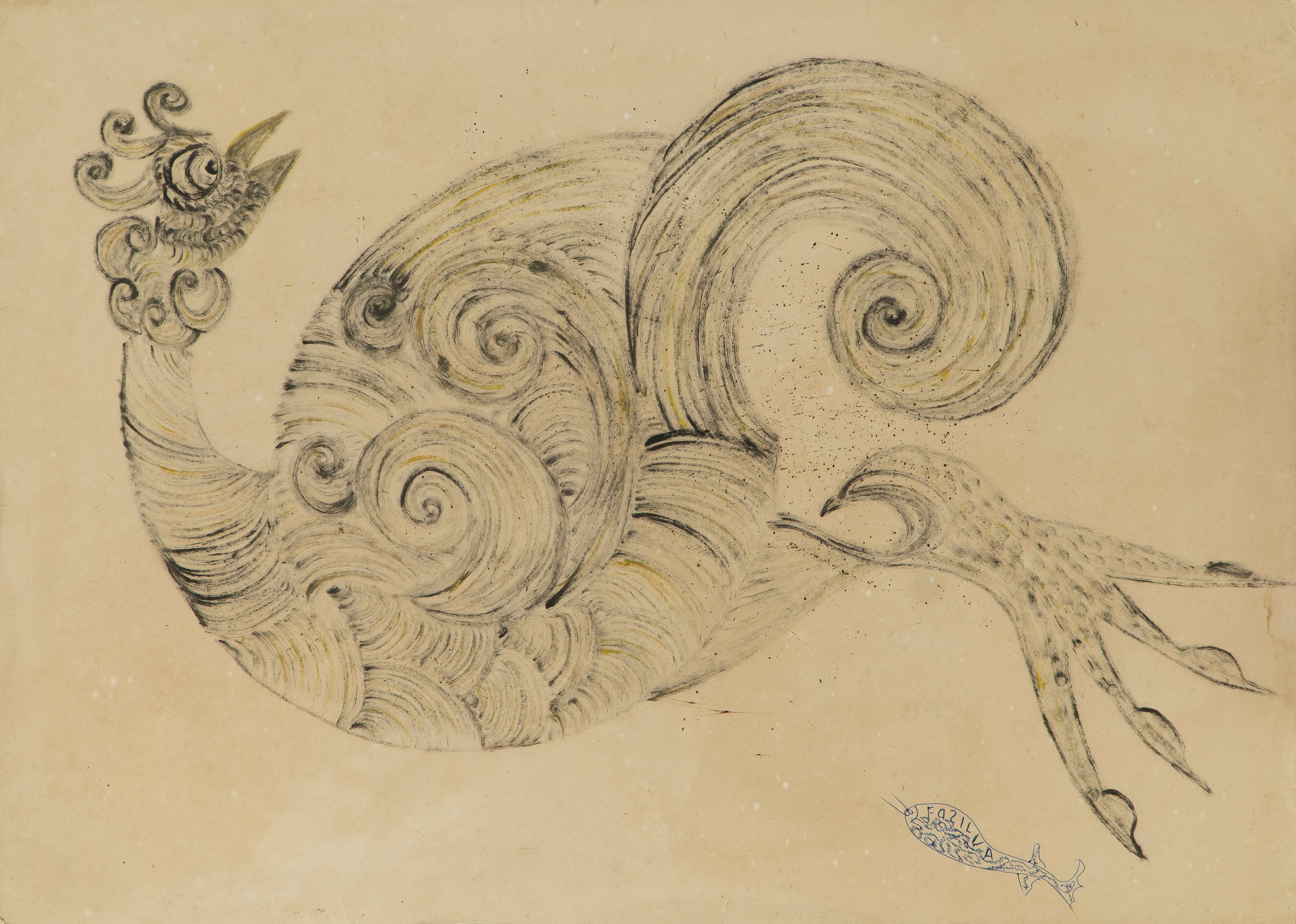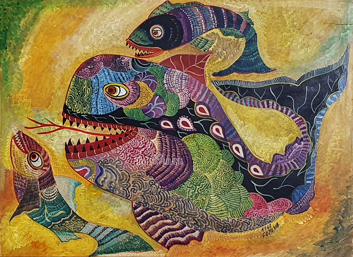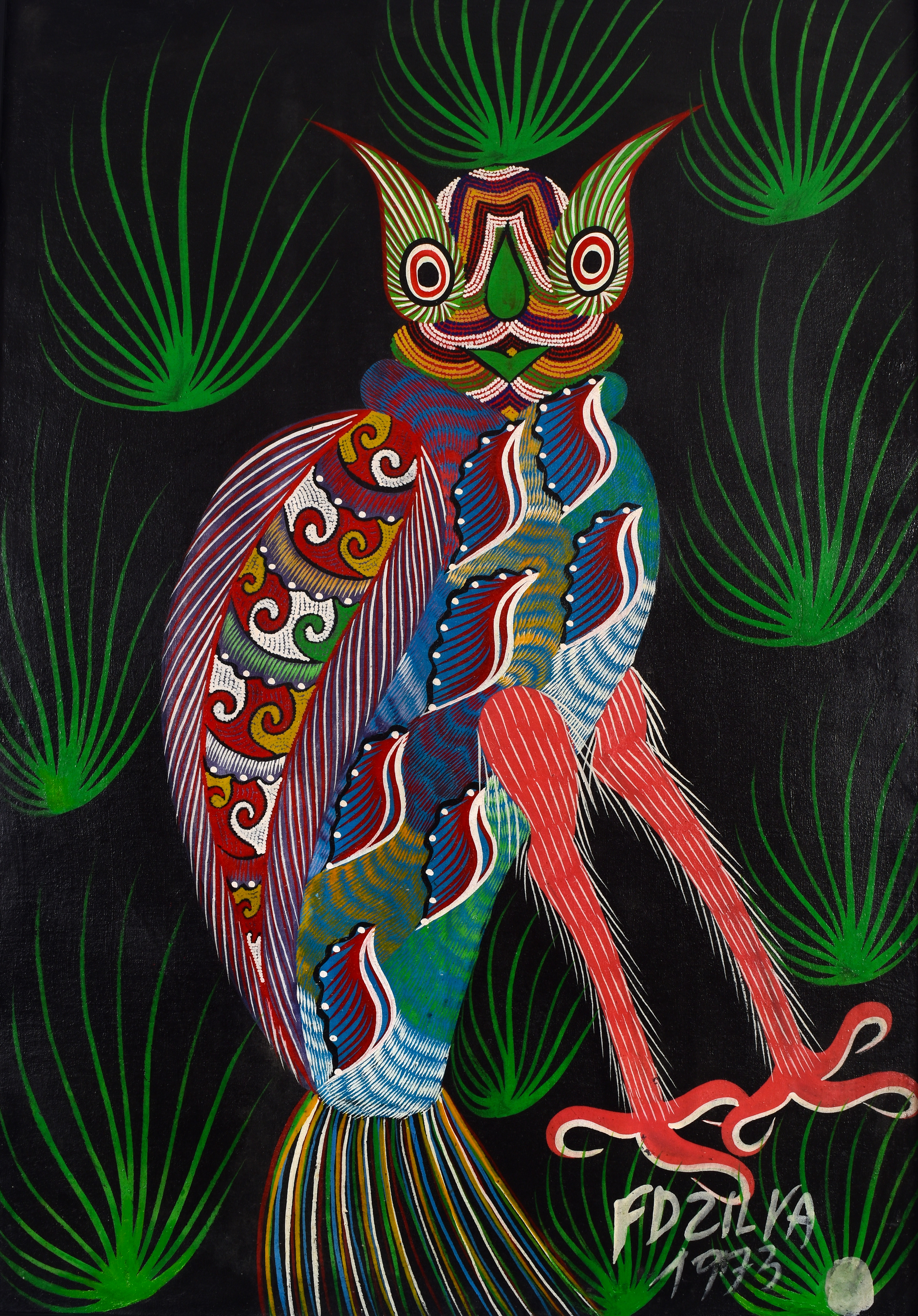 Francisco da Silva - Pavão Fantastico - Óleo sobre tela - 50 alt x 70 larg - acid - 1973