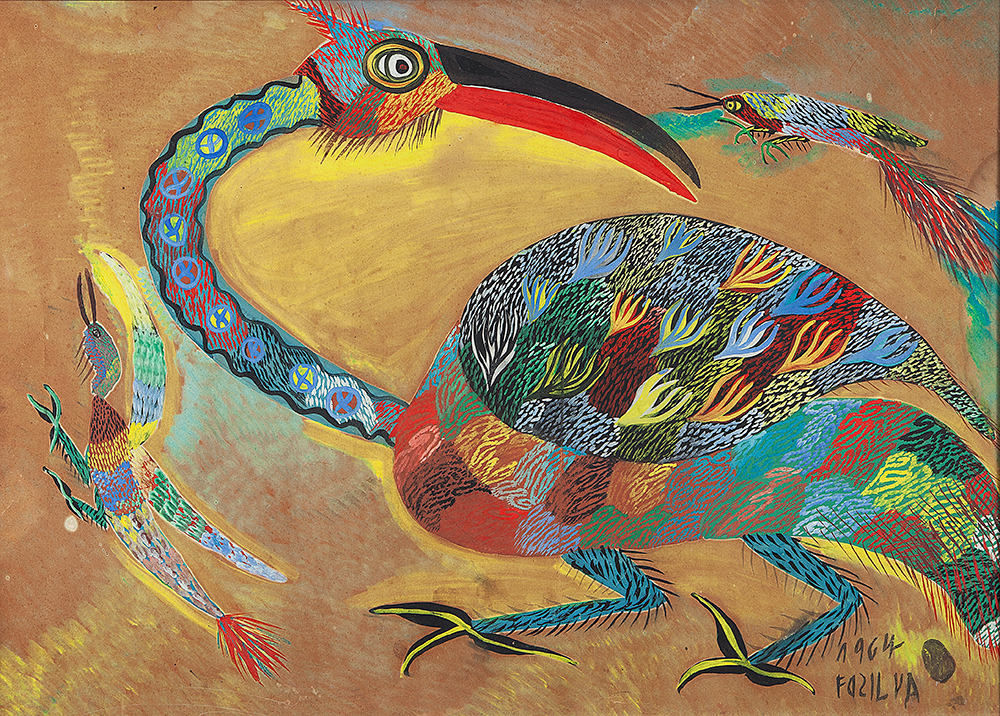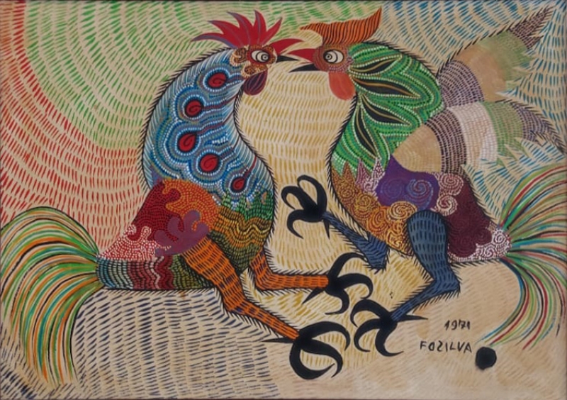 Chico da Silva - Galo - Têmpera sobre tela - 70x50 cm - A.c.i.d. 1973