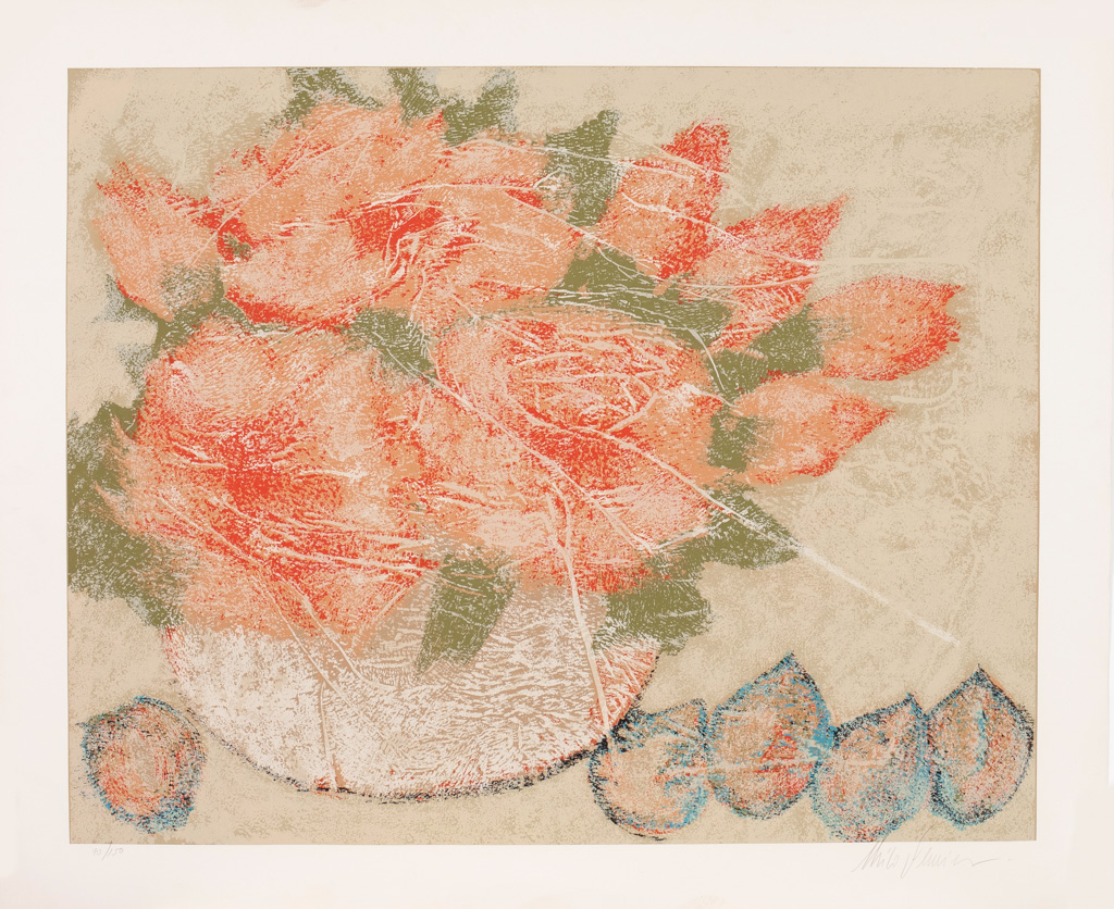 Flores – 70 x 100 cm – Gravura sem Moldura – Ass. Canto Inferior Direito - Exemplar 147/195 - Apresenta pequenos amassados nas bordas