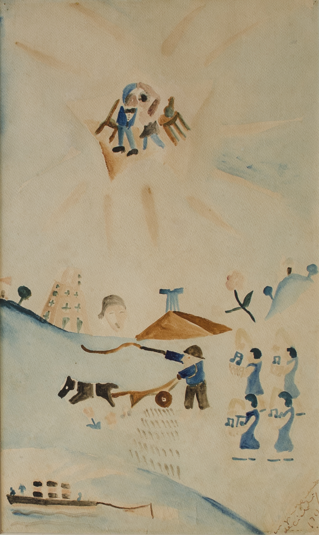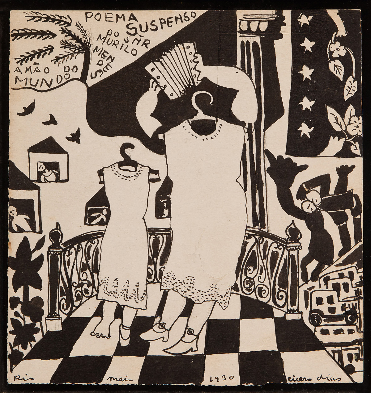 Cicero dos Santos Dias (Escada PE 1907 - Paris França 2003). Pintor, gravador, desenhista, ilustrador, cenógrafo e professor. Inicia estudos de desenho em sua terra natal. Em 1920, muda-se para o Rio de Janeiro, onde matricula-se, em 1925, nos cursos de arquitetura e pintura da Escola Nacional de Belas Artes - Enba, mas não os conclui. Entra em contato com o grupo modernista e, em 1929, colabora com a Revista de Antropofagia....