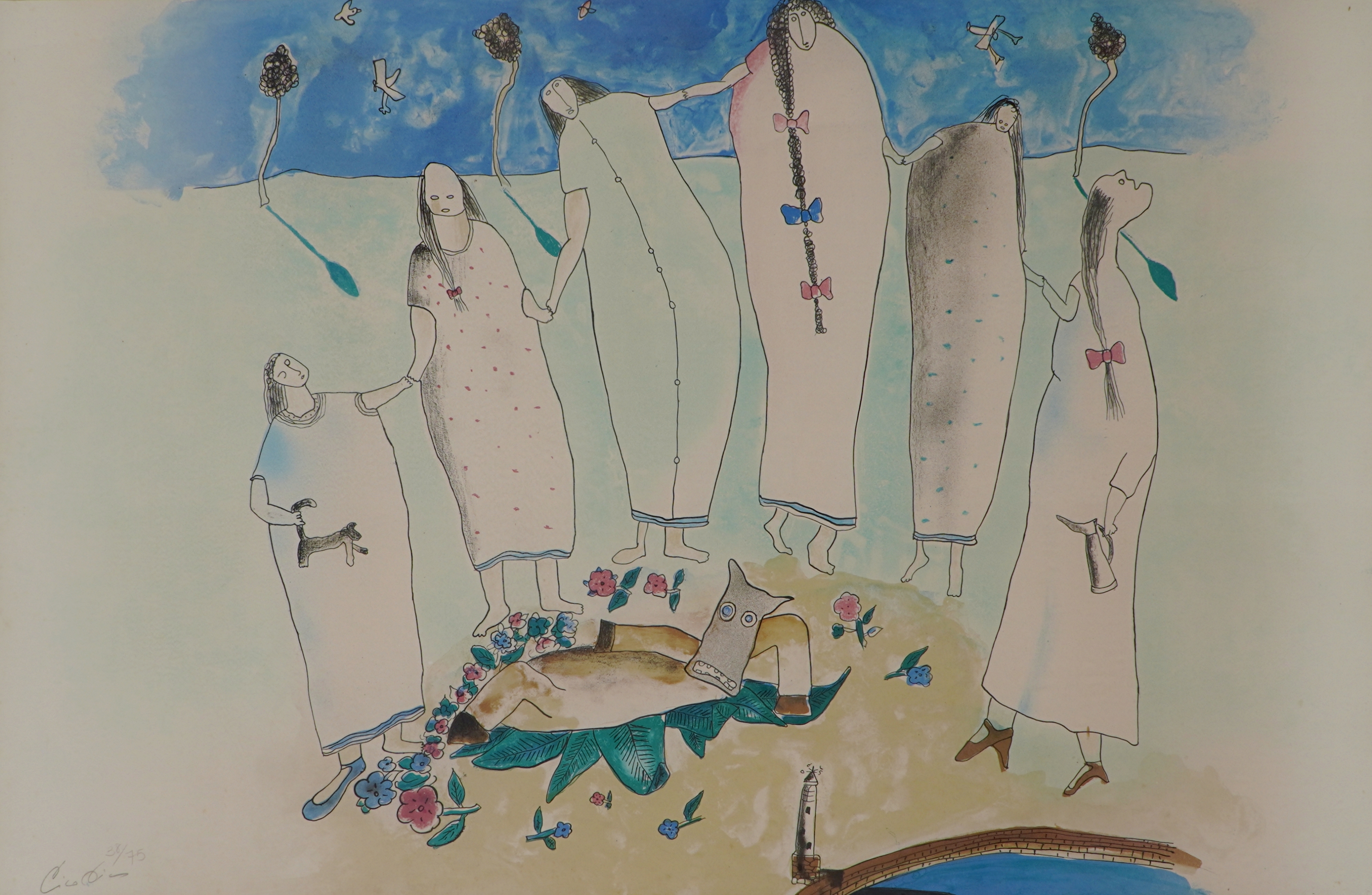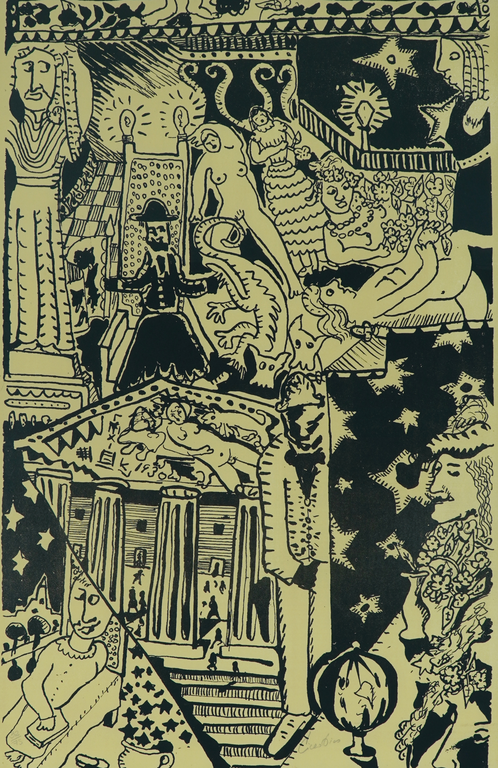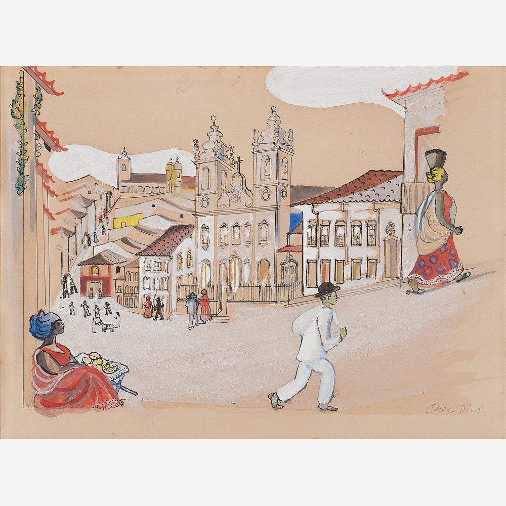 Cicero dos Santos Dias (Escada PE 1907 - Paris França 2003). Pintor, gravador, desenhista, ilustrador, cenógrafo e professor. Inicia estudos de desenho em sua terra natal. Em 1920, muda-se para o Rio de Janeiro, onde matricula-se, em 1925, nos cursos de arquitetura e pintura da Escola Nacional de Belas Artes - Enba, mas não os conclui. Entra em contato com o grupo modernista e, em 1929, colabora com a Revista de Antropofagia. Em 1931, no Salão Revolucionário, na Enba, expõe o polêmico painel, tanto por sua dimensão quanto pela temática, Eu Vi o Mundo... Ele Começava no Recife. A partir de 1932, no Recife, leciona desenho em seu ateliê. Ilustra, em 1933, Casa Grande & Senzala, de Gilberto Freyre (1900- 1987).