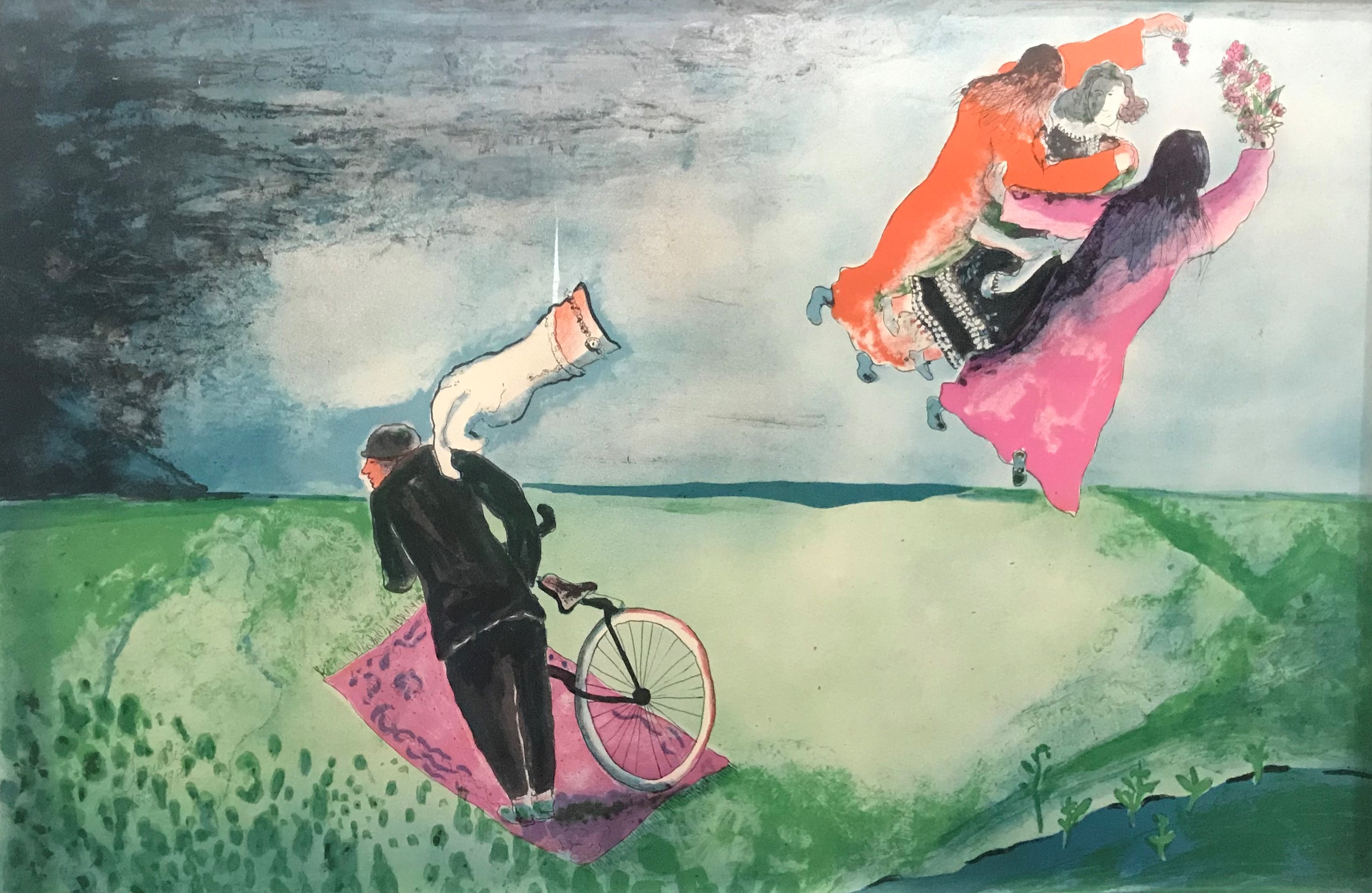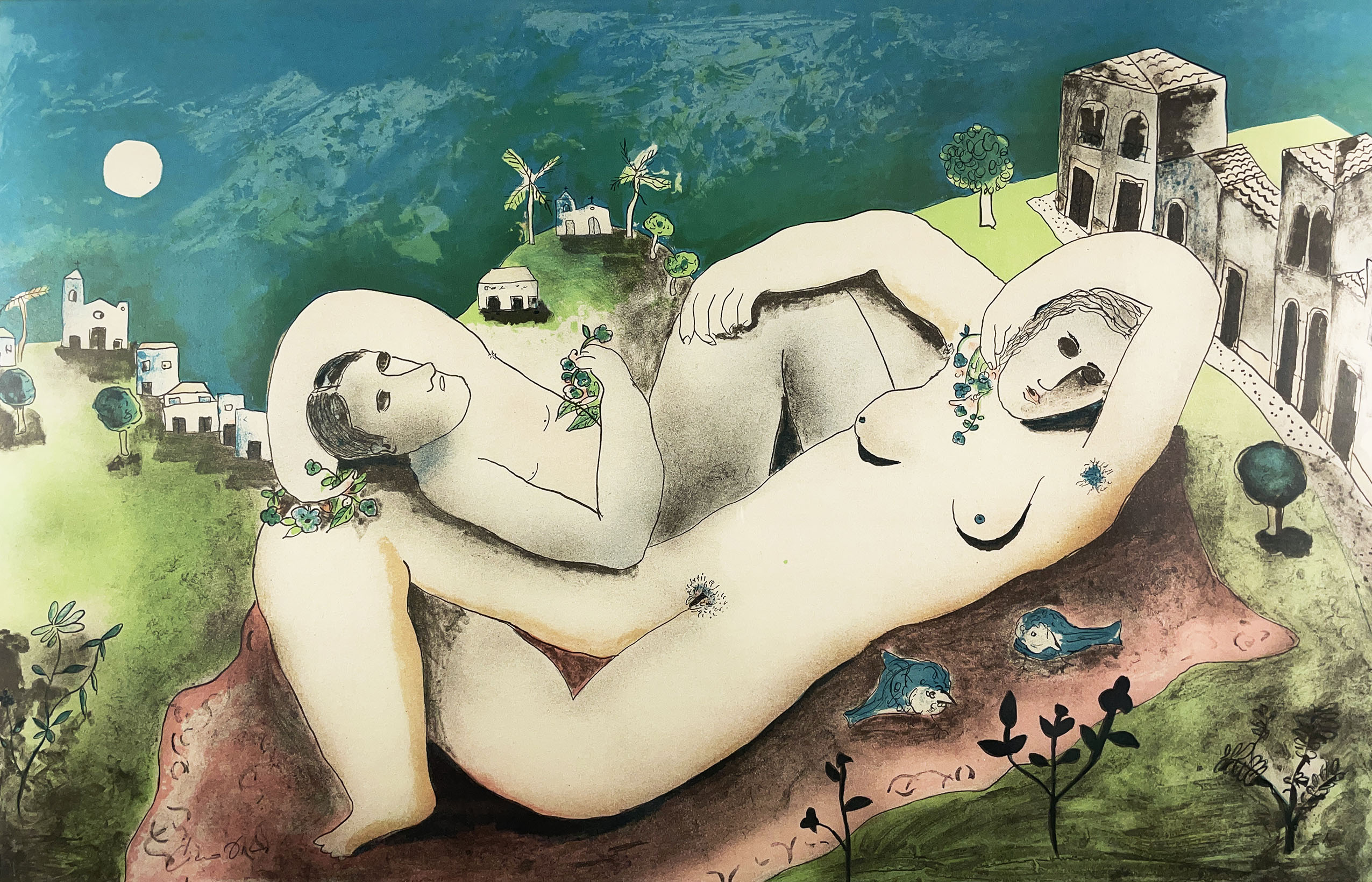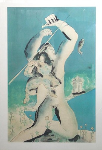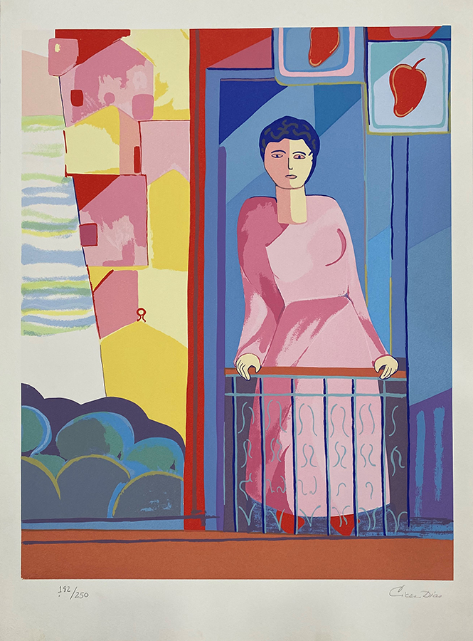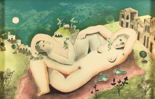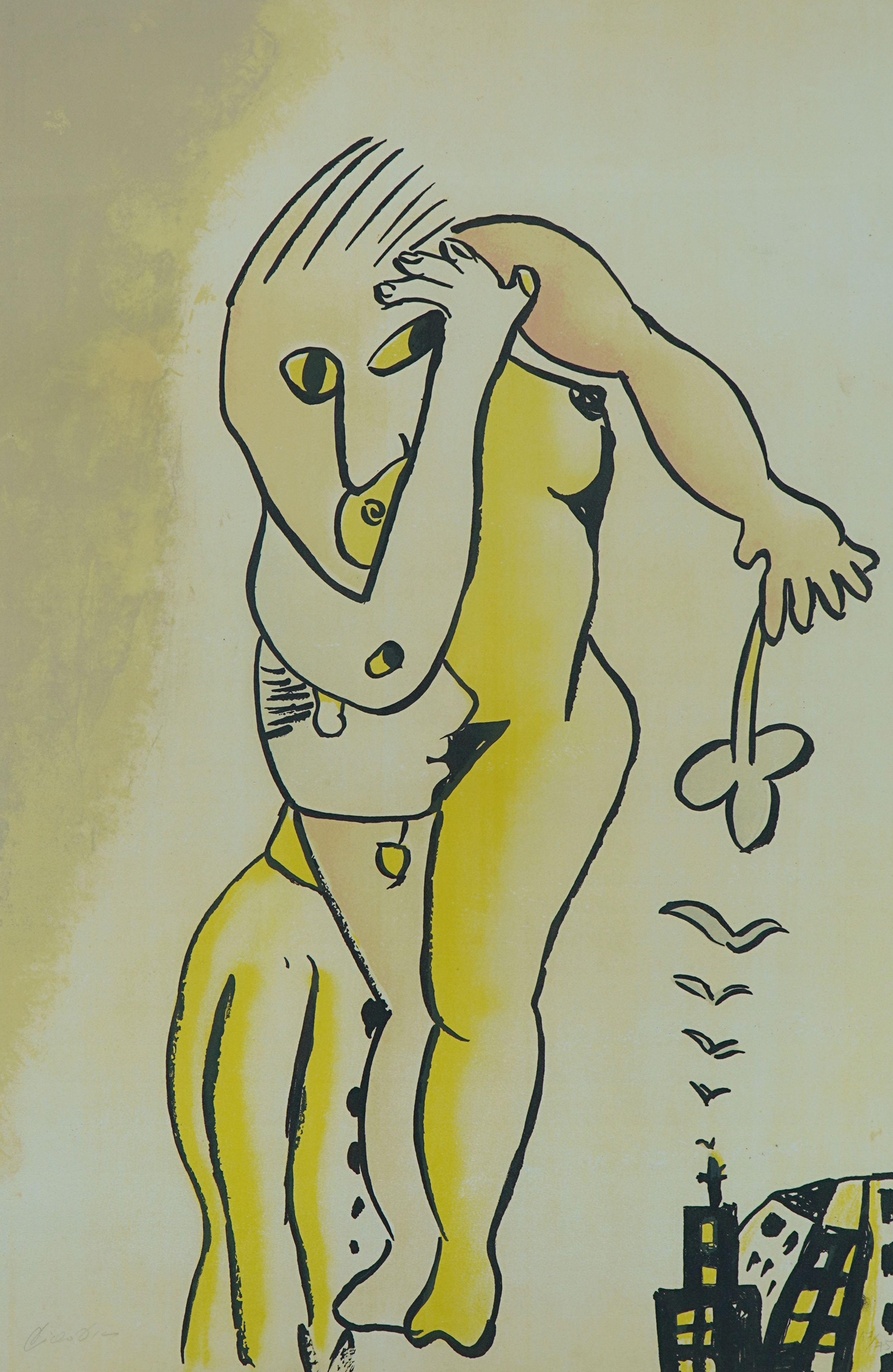 Cícero Dias - Mulher e pássaros - Óleo sobre tela - Assinado canto inferior esquerdo - 71 x 60 cm. Coleção Múcio Bandeira de Mello.
