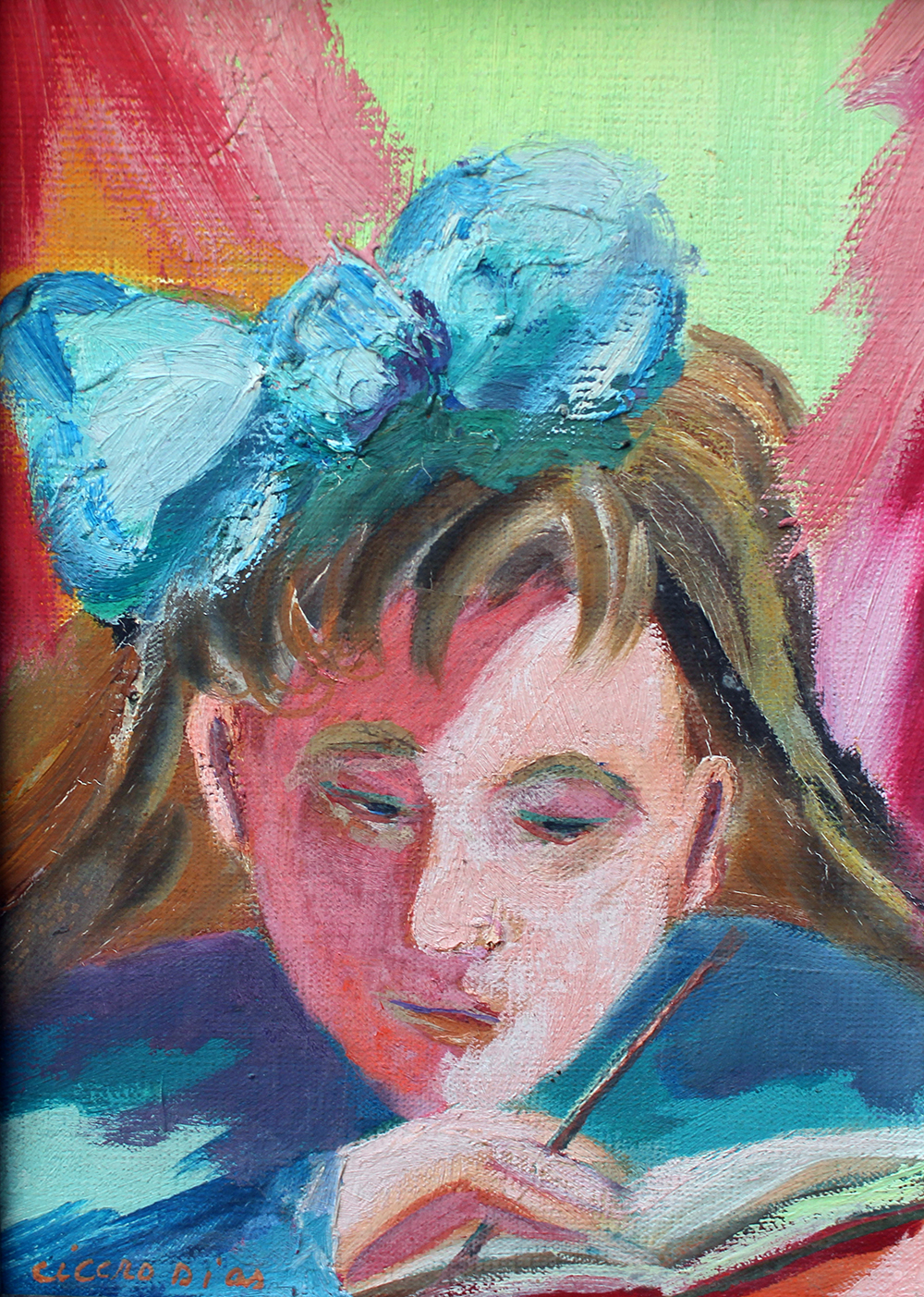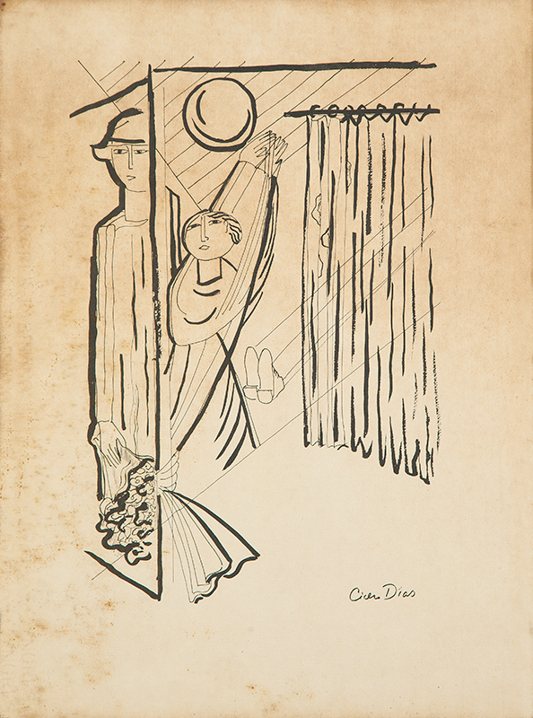 Cicero dos Santos Dias (Escada PE 1907 - Paris França 2003). Pintor, gravador, desenhista, ilustrador, cenógrafo e professor. Inicia estudos de desenho em sua terra natal. Em 1920, muda-se para o Rio de Janeiro, onde matricula-se, em 1925, nos cursos de arquitetura e pintura da Escola Nacional de Belas Artes - Enba, mas não os conclui. Entra em contato com o grupo modernista e, em 1929, colabora com a Revista de Antropofagia. Em 1931, no Salão Revolucionário, na Enba, expõe o polêmico painel, tanto por sua dimensão quanto pela temática, Eu Vi o Mundo... Ele Começava no Recife. A partir de 1932, no Recife, leciona desenho em seu ateliê. Ilustra, em 1933, Casa Grande & Senzala, de Gilberto Freyre (1900- 1987).