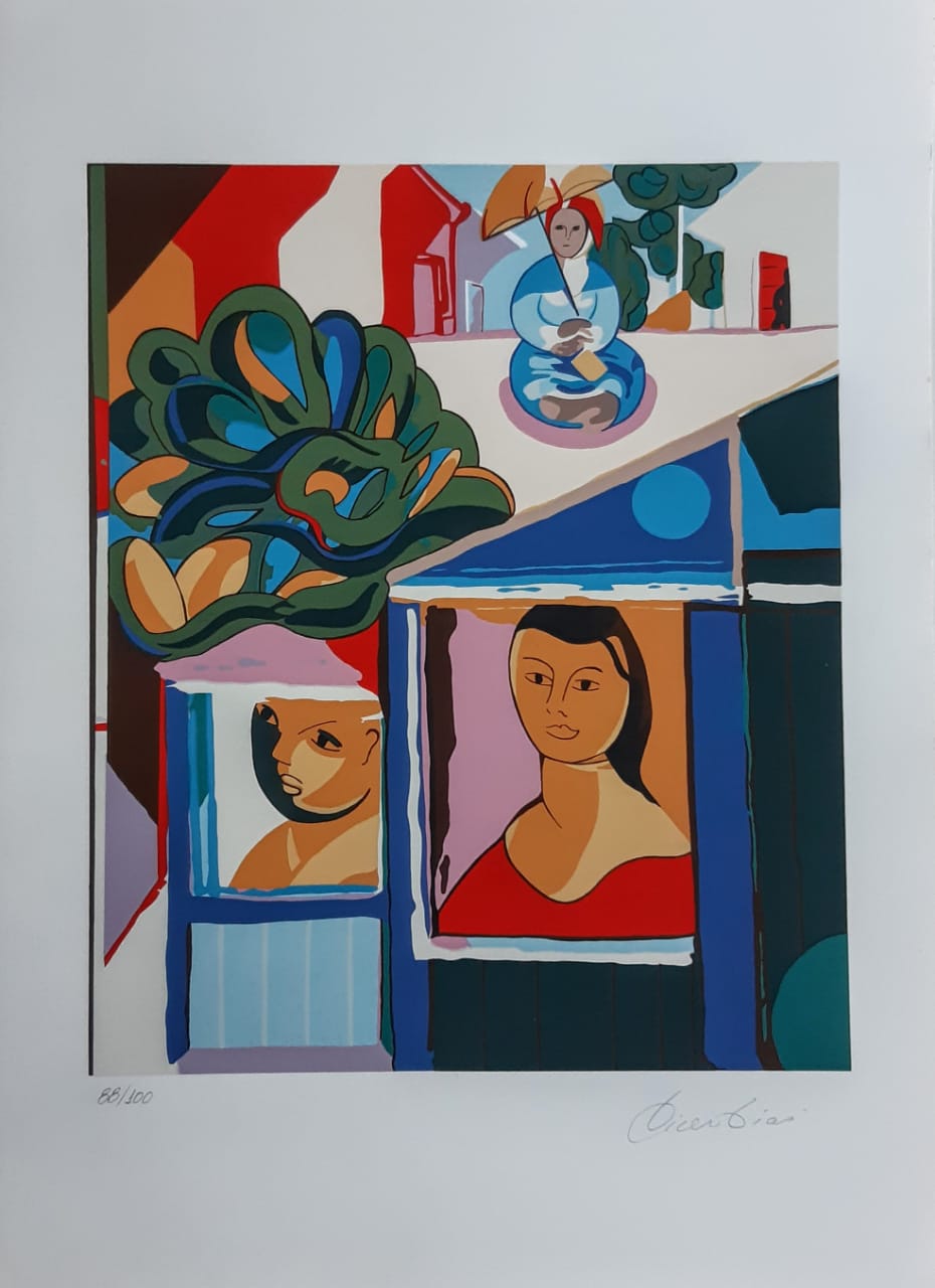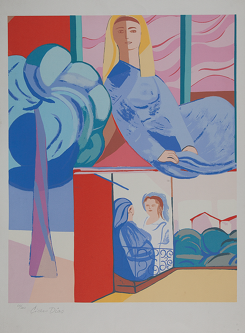 Cicero dos Santos Dias (Escada PE 1907 - Paris França 2003). Pintor, gravador, desenhista, ilustrador, cenógrafo e professor. Inicia estudos de desenho em sua terra natal. Em 1920, muda-se para o Rio de Janeiro, onde matricula-se, em 1925, nos cursos de arquitetura e pintura da Escola Nacional de Belas Artes - Enba, mas não os conclui. Entra em contato com o grupo modernista e, em 1929, colabora com a Revista de Antropofagia. Em 1931, no Salão Revolucionário, na Enba, expõe o polêmico painel, tanto por sua dimensão quanto pela temática, Eu Vi o Mundo... Ele Começava no Recife. A partir de 1932, no Recife, leciona desenho em seu ateliê. Ilustra, em 1933, Casa Grande & Senzala, de Gilberto Freyre (1900- 1987).