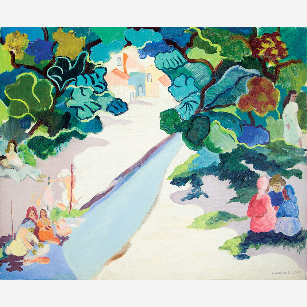 Cicero dos Santos Dias (Escada PE 1907 - Paris França 2003). Pintor, gravador, desenhista, ilustrador, cenógrafo e professor. Inicia estudos de desenho em sua terra natal. Em 1920, muda-se para o Rio de Janeiro, onde matricula-se, em 1925, nos cursos de arquitetura e pintura da Escola Nacional de Belas Artes - Enba, mas não os conclui. Entra em contato com o grupo modernista e, em 1929, colabora com a Revista de Antropofagia. Em 1931, no Salão Revolucionário, na Enba, expõe o polêmico painel, tanto por sua dimensão quanto pela temática, Eu Vi o Mundo... Ele Começava no Recife. A partir de 1932, no Recife, leciona desenho em seu ateliê. Ilustra, em 1933, Casa Grande & Senzala, de Gilberto Freyre (1900- 1987).