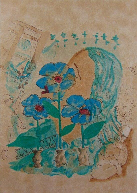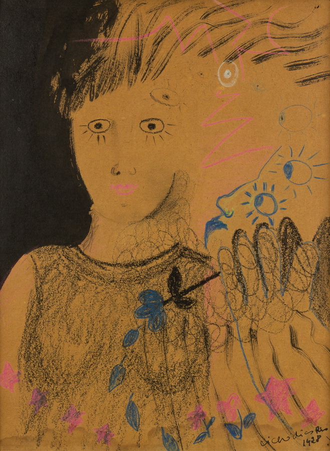 Cícero Dias - Mulher e pássaros - Óleo sobre tela - Assinado canto inferior esquerdo - 71 x 60 cm. Coleção Múcio Bandeira de Mello.