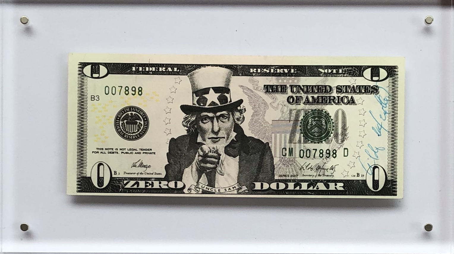 Cildo Meireles - Zero dollar - Impressão offset sobre papel moeda - Assinado canto inferior direito - 6,5 x 15 cm.
