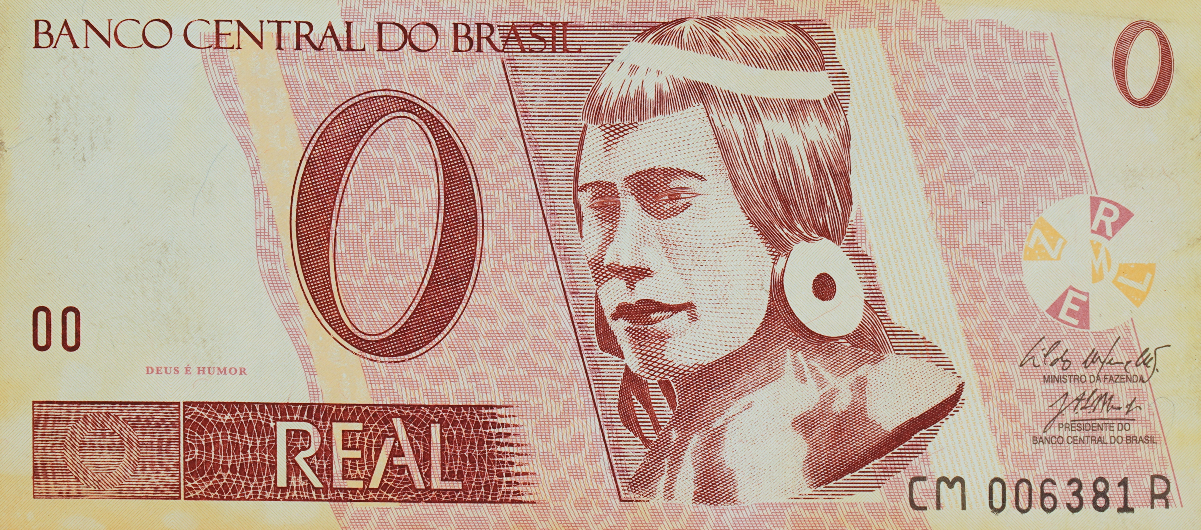Cildo Meireles - Zero real - Impressão offset sobre papel moeda - Assinado canto inferior direito - 6,5 x 14 cm.