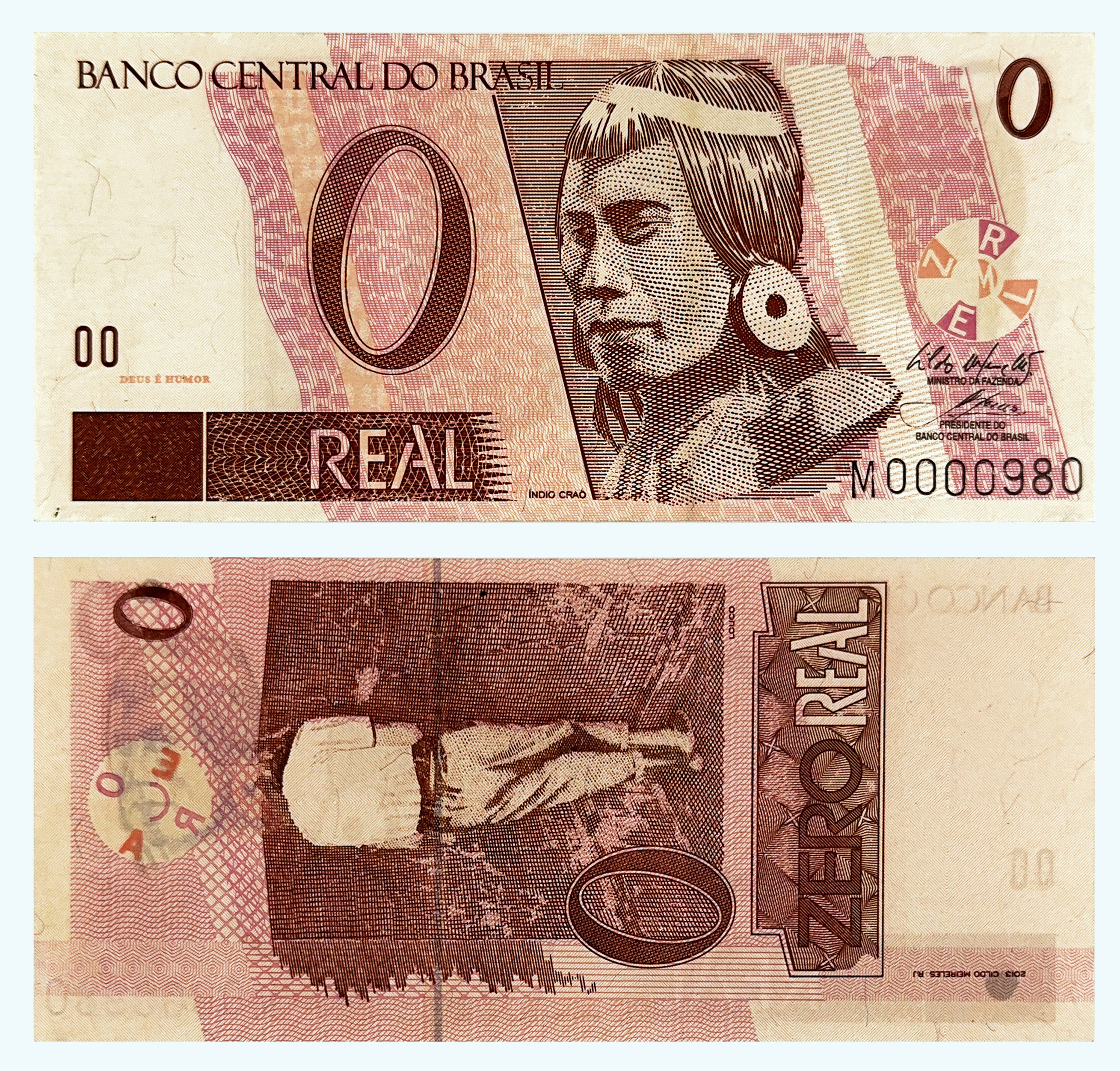Cildo Meireles - Zero real - Impressão offset sobre papel moeda - Assinado canto inferior direito - 6,5 x 14 cm.