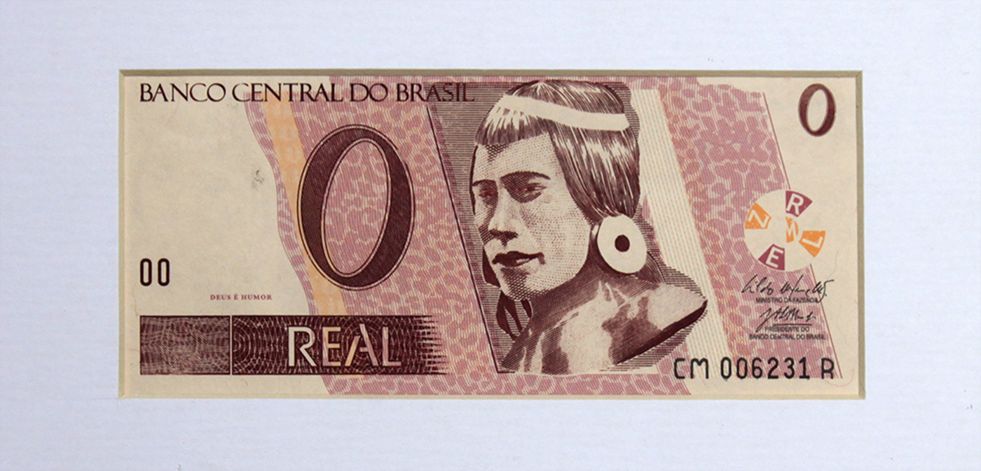 Cildo Meireles - Zero real - Impressão offset sobre papel moeda - Assinado canto inferior direito - 6,5 x 14 cm.