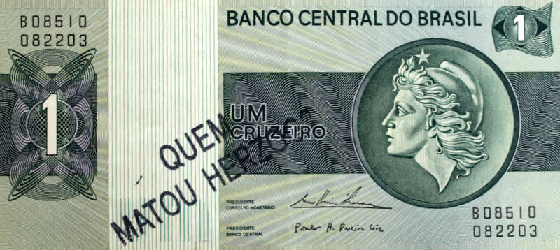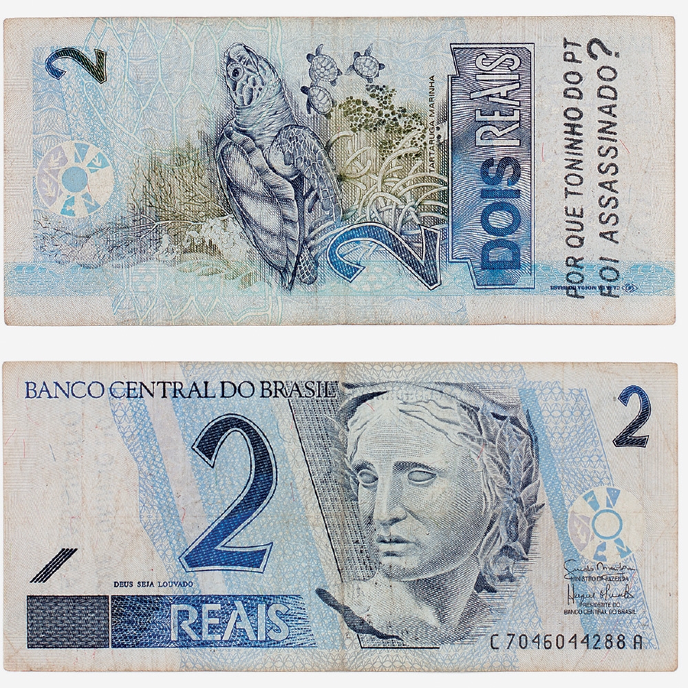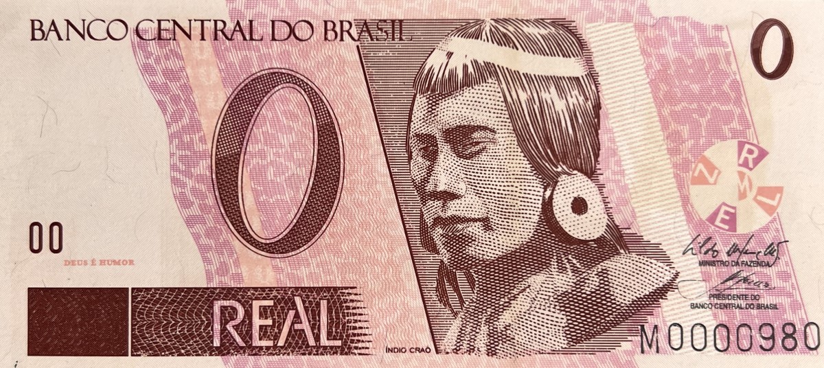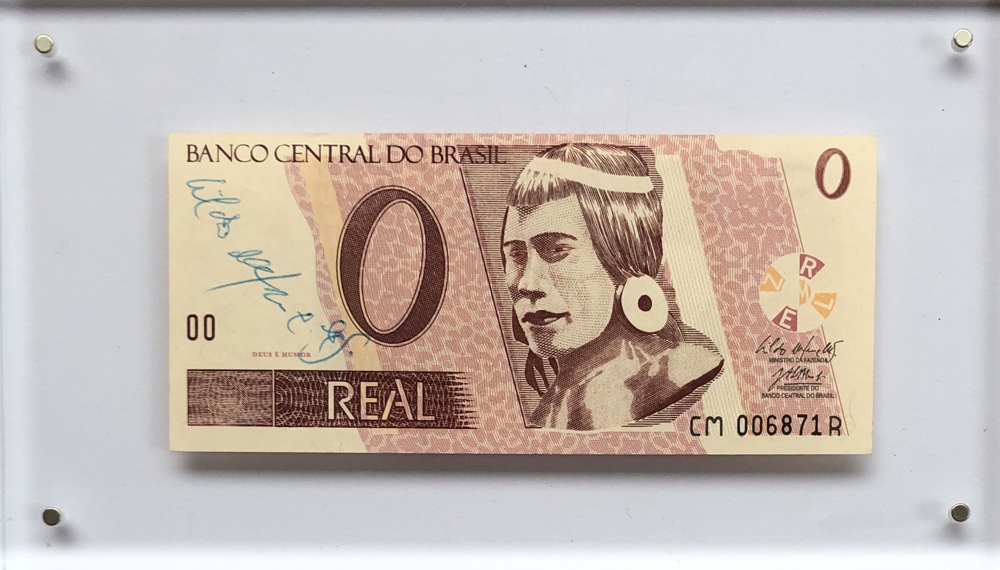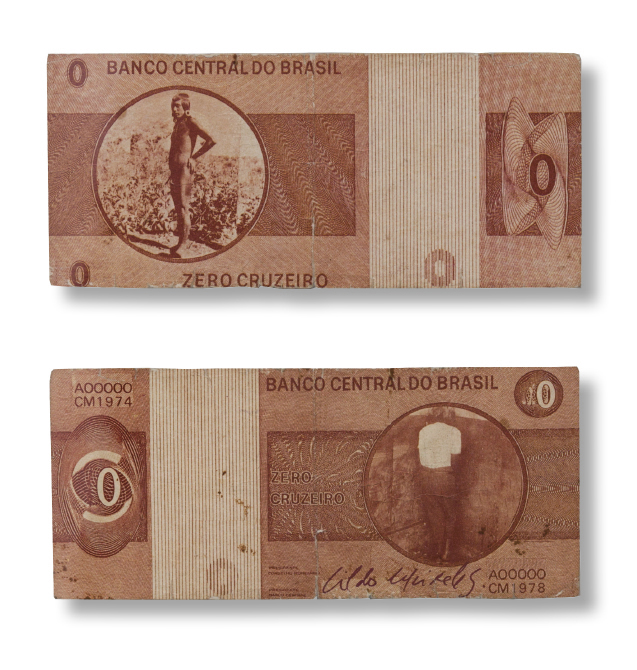 Cildo Meireles - Zero real - Impressão offset sobre papel moeda - Assinado canto inferior direito - 6,5 x 14 cm.