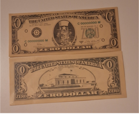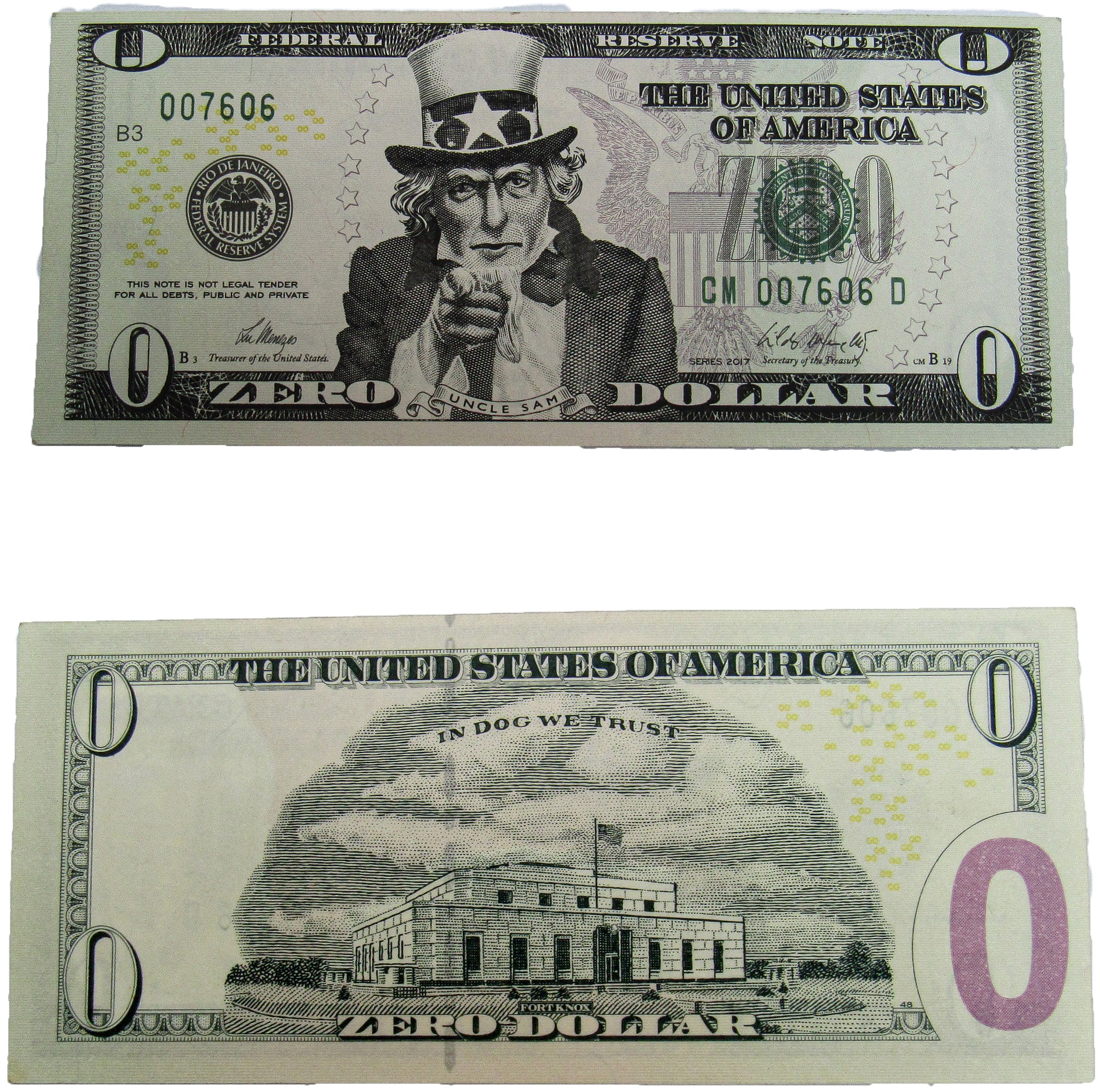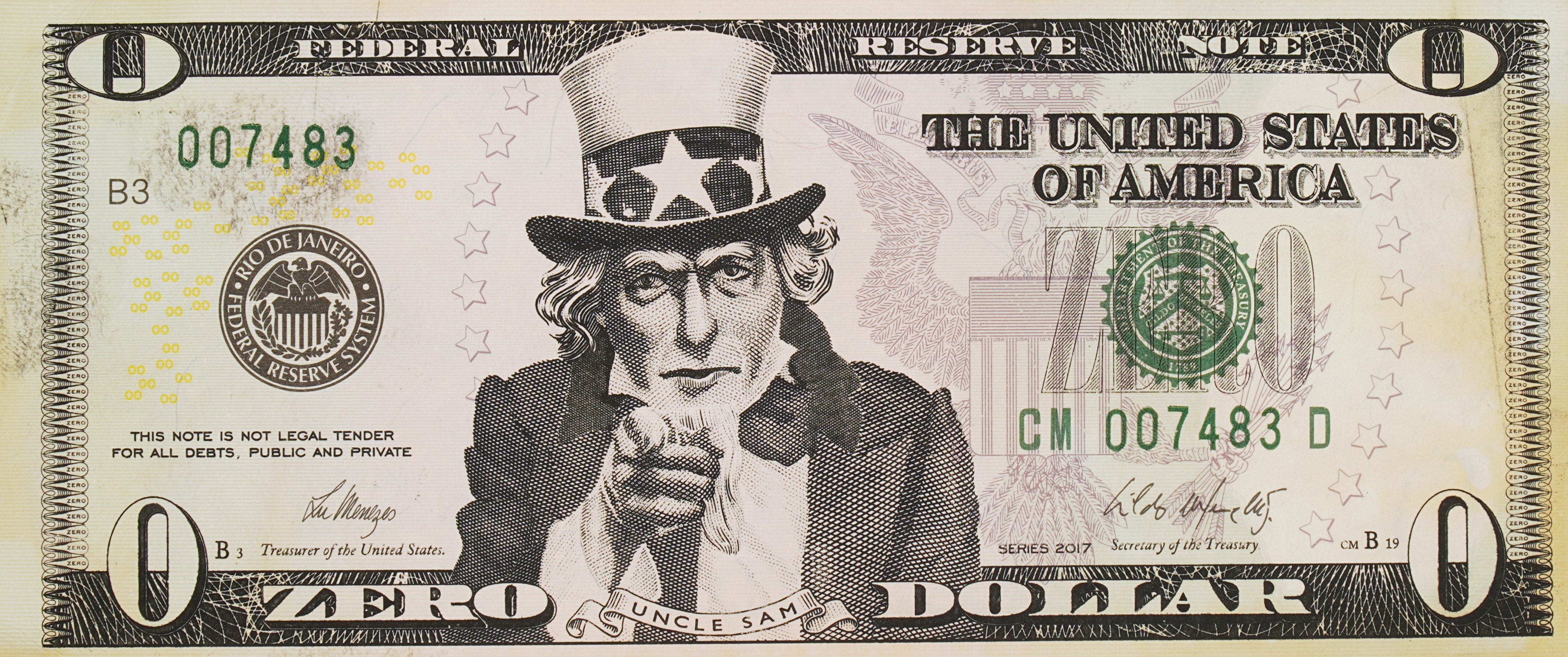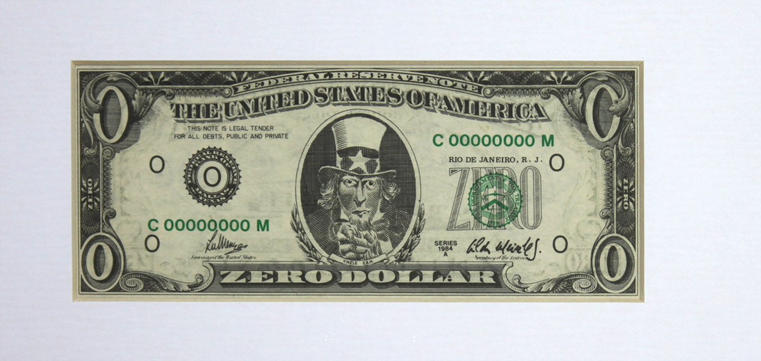 Cildo Meireles - Zero dollar - Impressão offset sobre papel moeda - Assinado canto inferior direito - 6,5 x 15 cm.