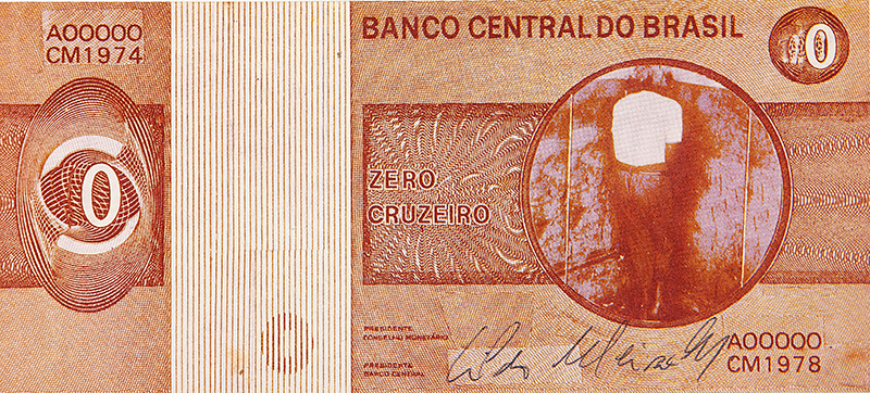 Cildo Meireles - Zero real - Impressão offset sobre papel moeda - Assinado canto inferior direito - 6,5 x 14 cm.