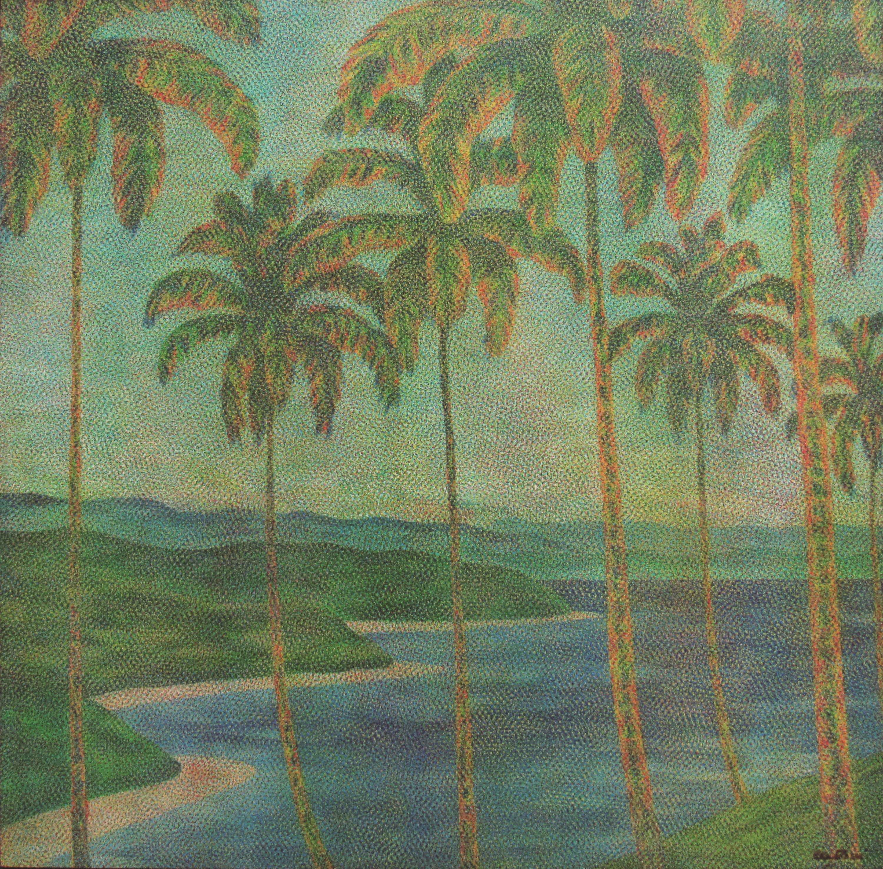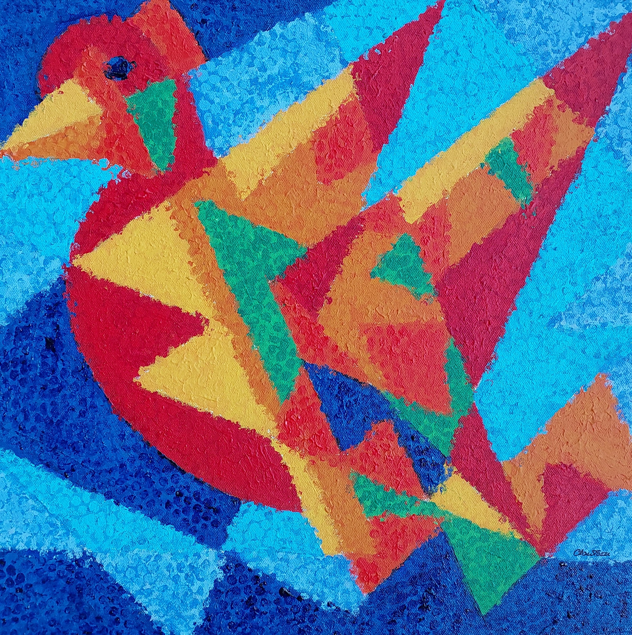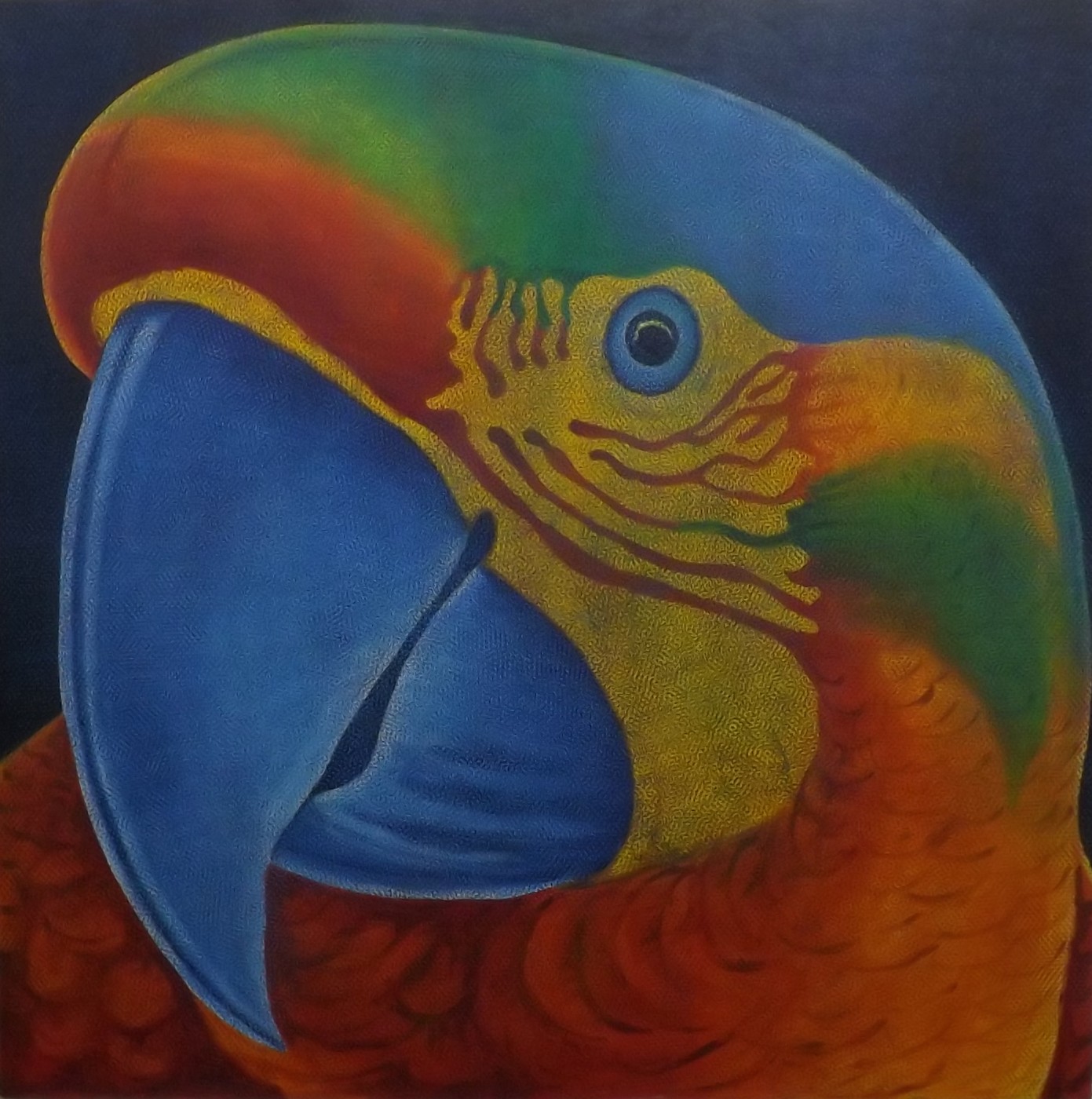 Claudio Tozzi - Papagalia - Acrílica sobre tela colada em madeira - Assinado canto inferior direito - 80 x 80 cm.