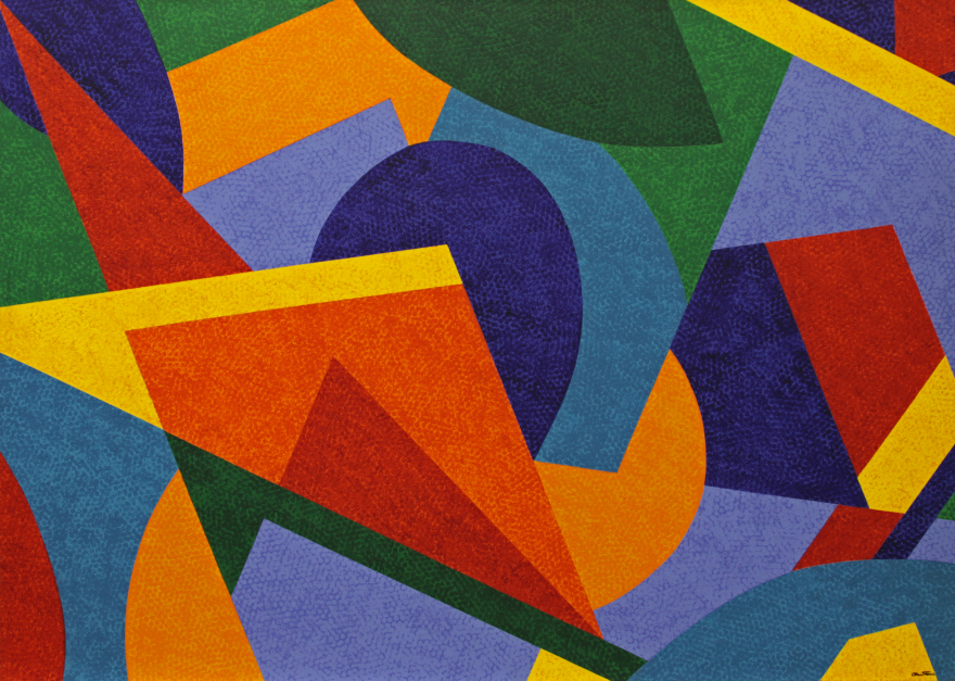 CLAUDIO TOZZI - Parafuso - Liquitex Sobre Tela Colado em Eucatex -Ass.dat.1971 centro sup.dir - 90 x 65 cm.Com certificado de autenticidade e observações no verso.Ex. Coleção Rodrigo Monteiro Lobato/Matheus Hizemberg -Galeria Uirapuru - 1974.