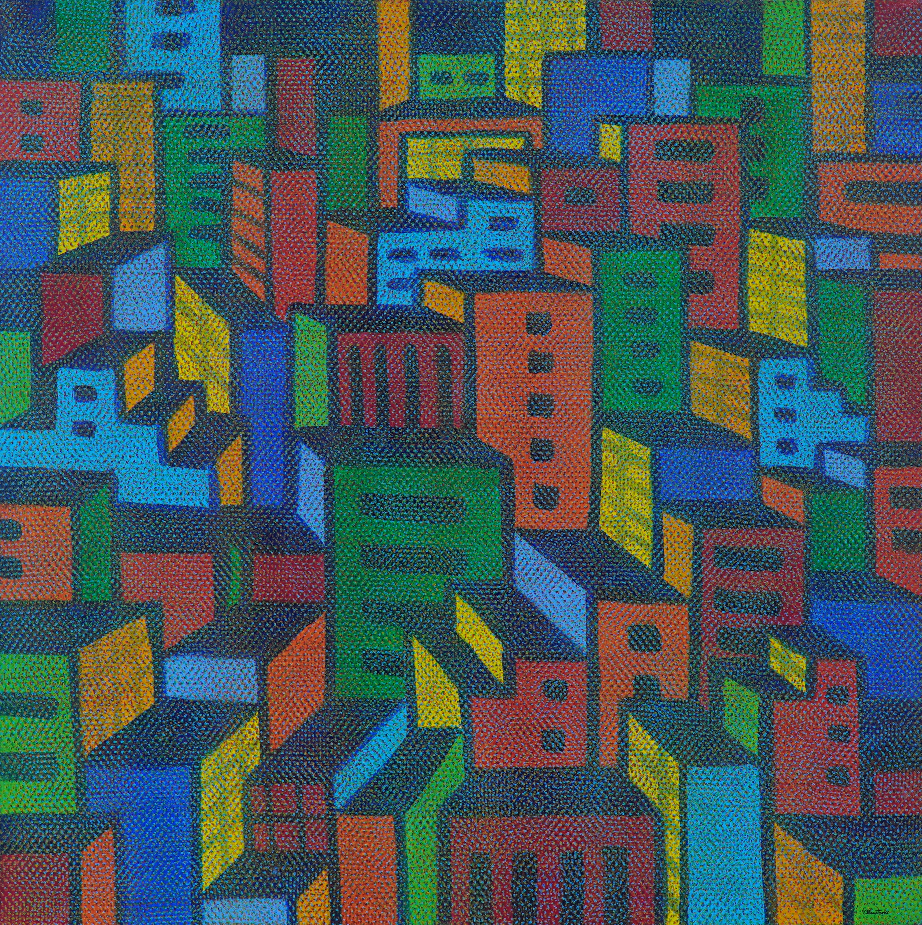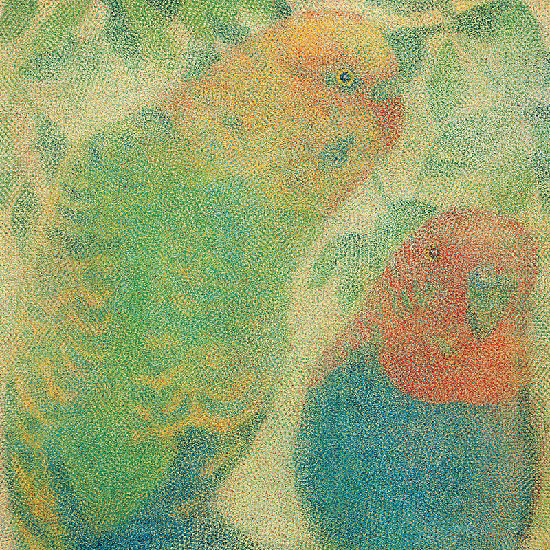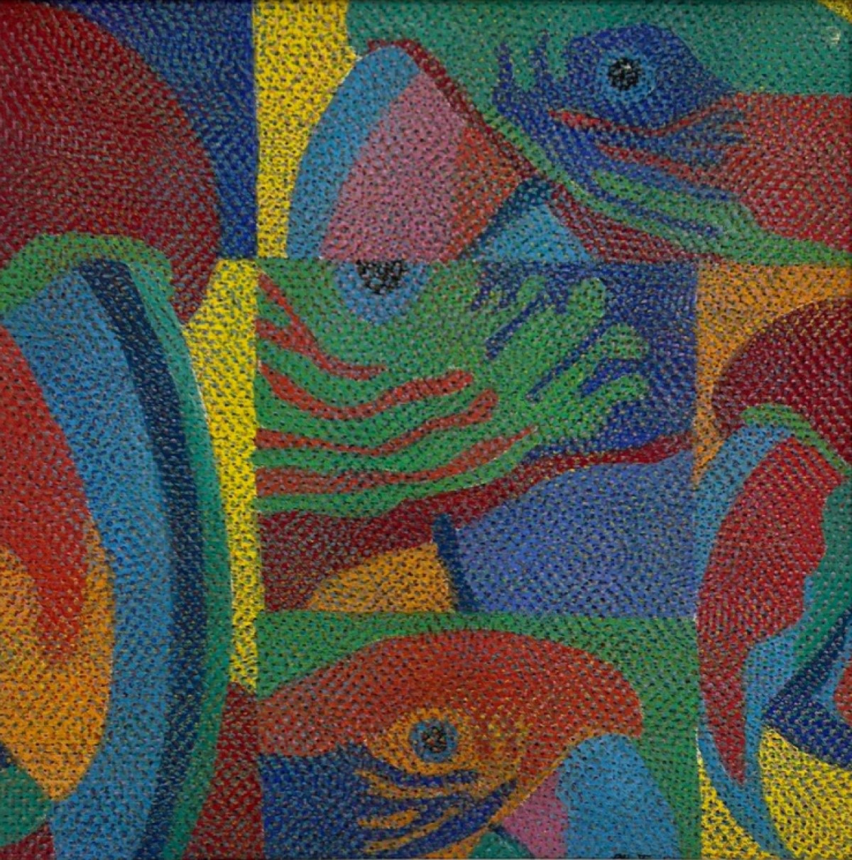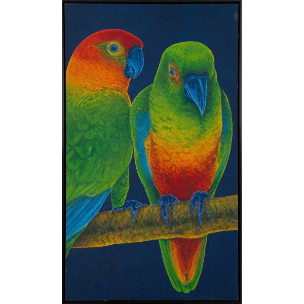 Claudio Tozzi - Papagalia - Acrílica sobre tela colada em madeira - Assinado canto inferior direito - 80 x 80 cm.