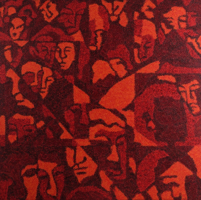 Claudio Tozzi - Multidão - 1968 - Liquitex sobre placa - Assinado canto inferior direito - 86 x 86 cm. Certificado de autenticidade emitido pelo artista.