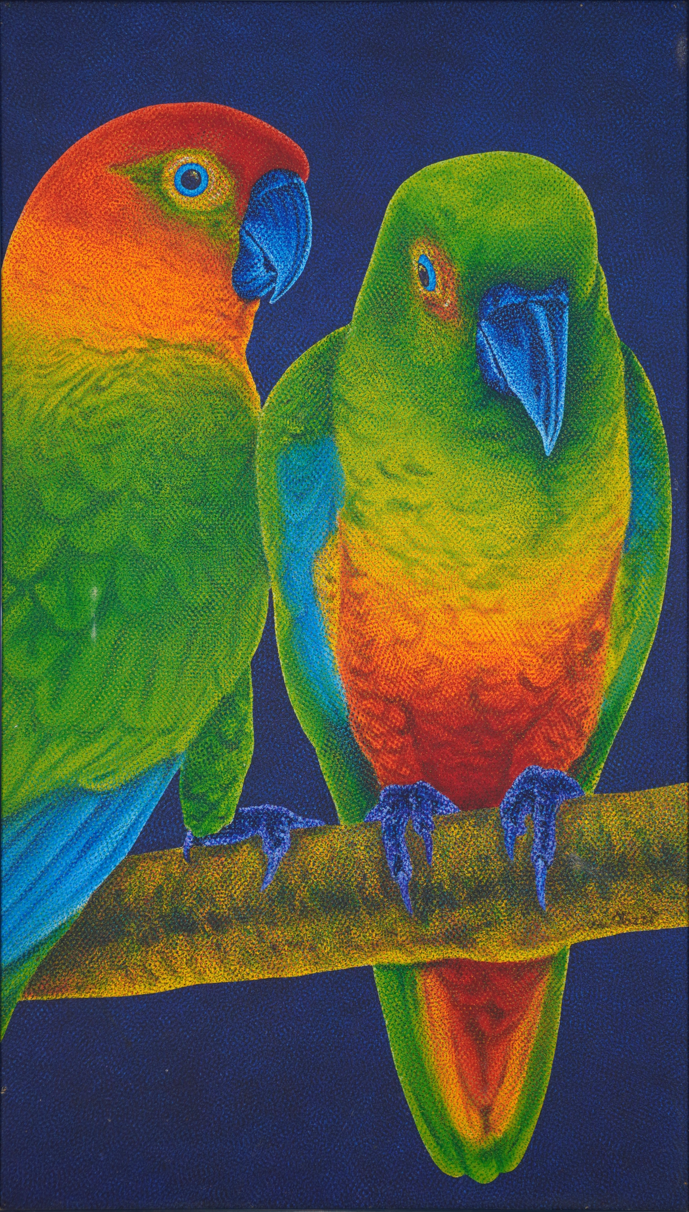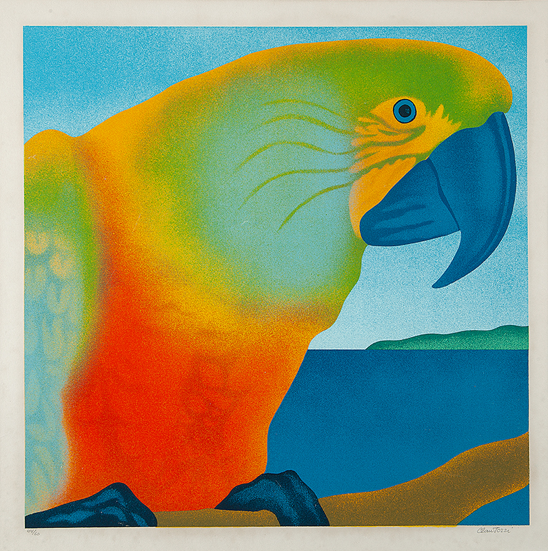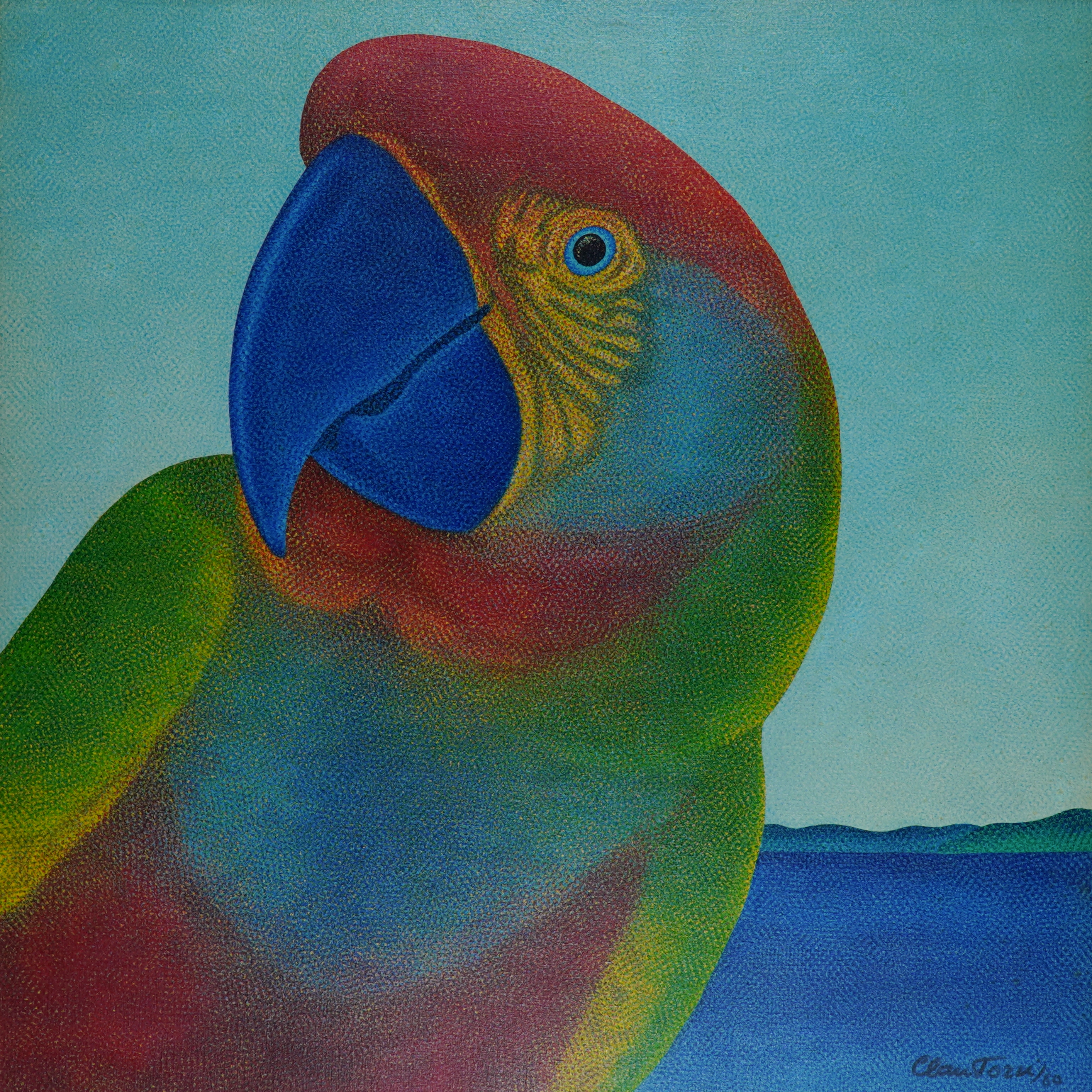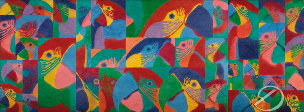 Claudio Tozzi - Papagalia - Acrílica sobre tela colada em madeira - Assinado canto inferior direito - 80 x 80 cm.