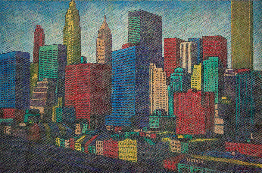 Claudio Tozzi - Sem título - 1986 - Acrílica sobre tela colada em madeira - Assinado verso - 142 x 150 cm.