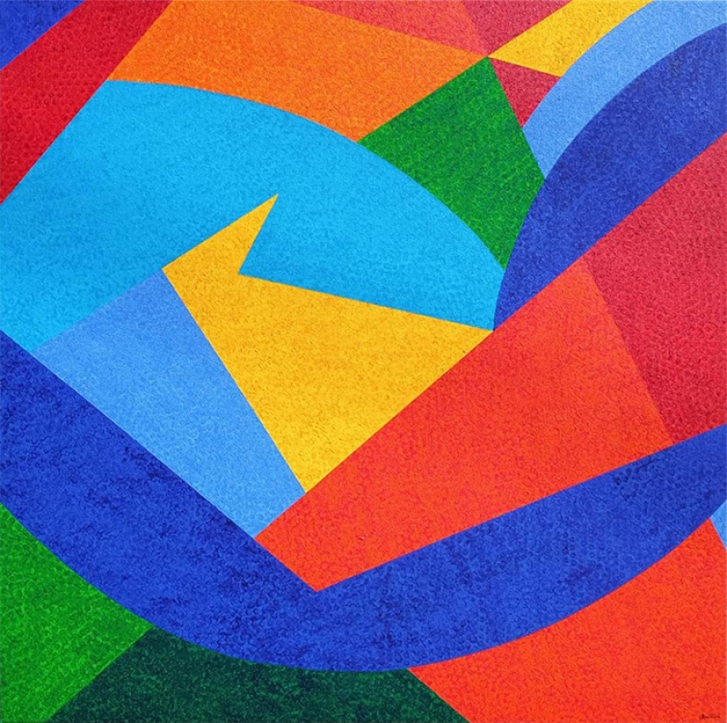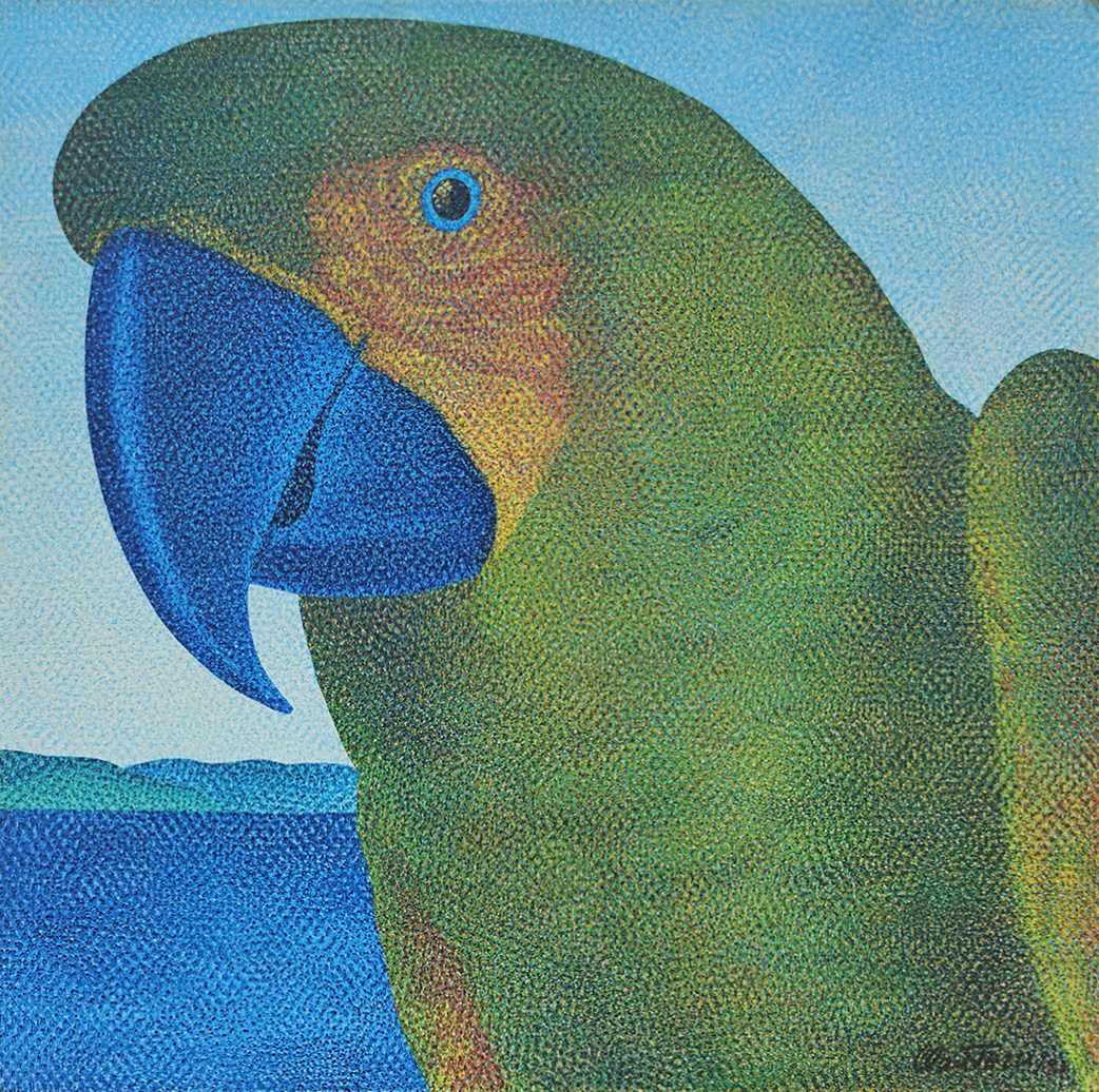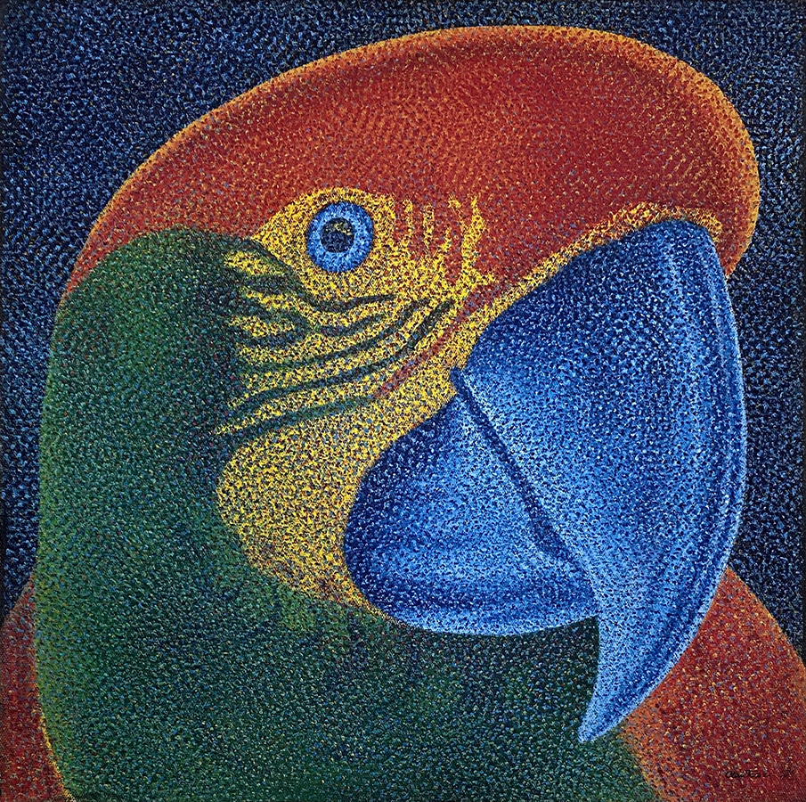 Claudio Tozzi - Papagalia - Acrílica sobre tela colada em madeira - Assinado canto inferior direito - 80 x 80 cm.