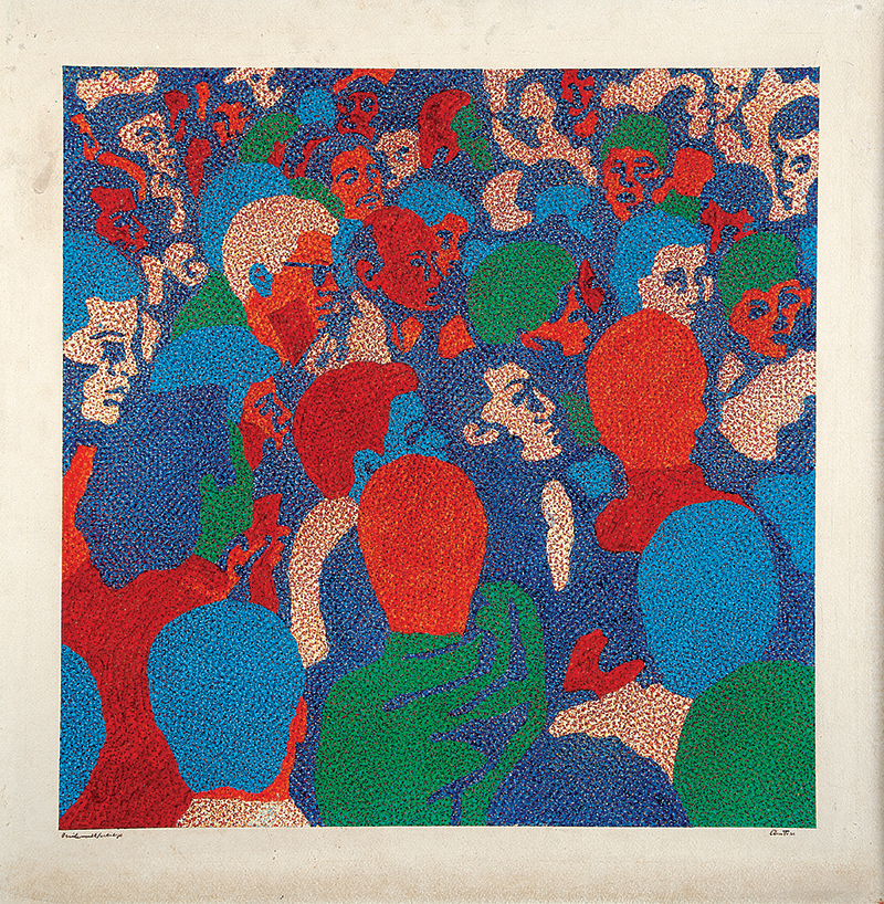 Claudio Tozzi - Multidão - 1968 - Liquitex sobre placa - Assinado canto inferior direito - 86 x 86 cm. Certificado de autenticidade emitido pelo artista.