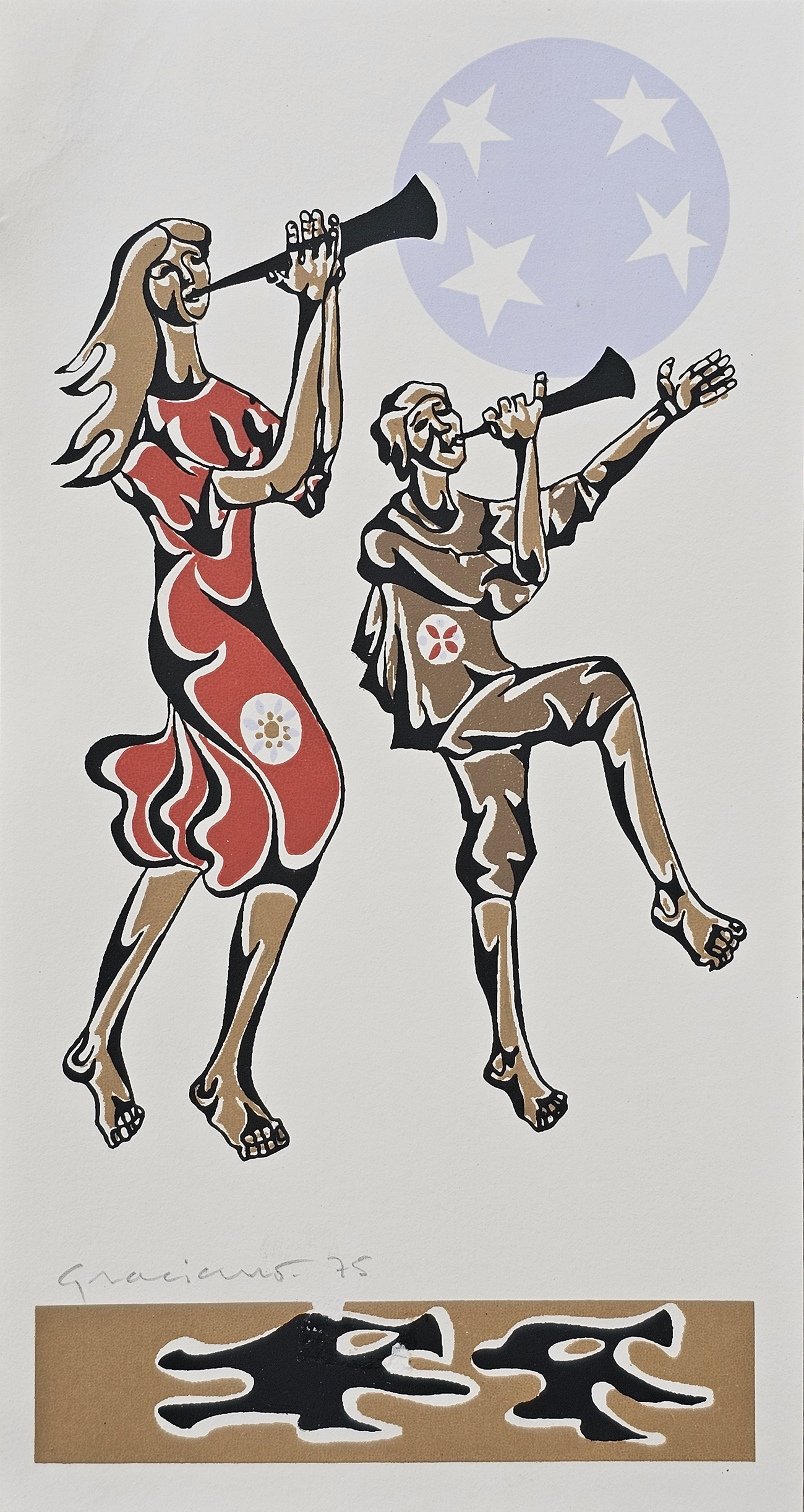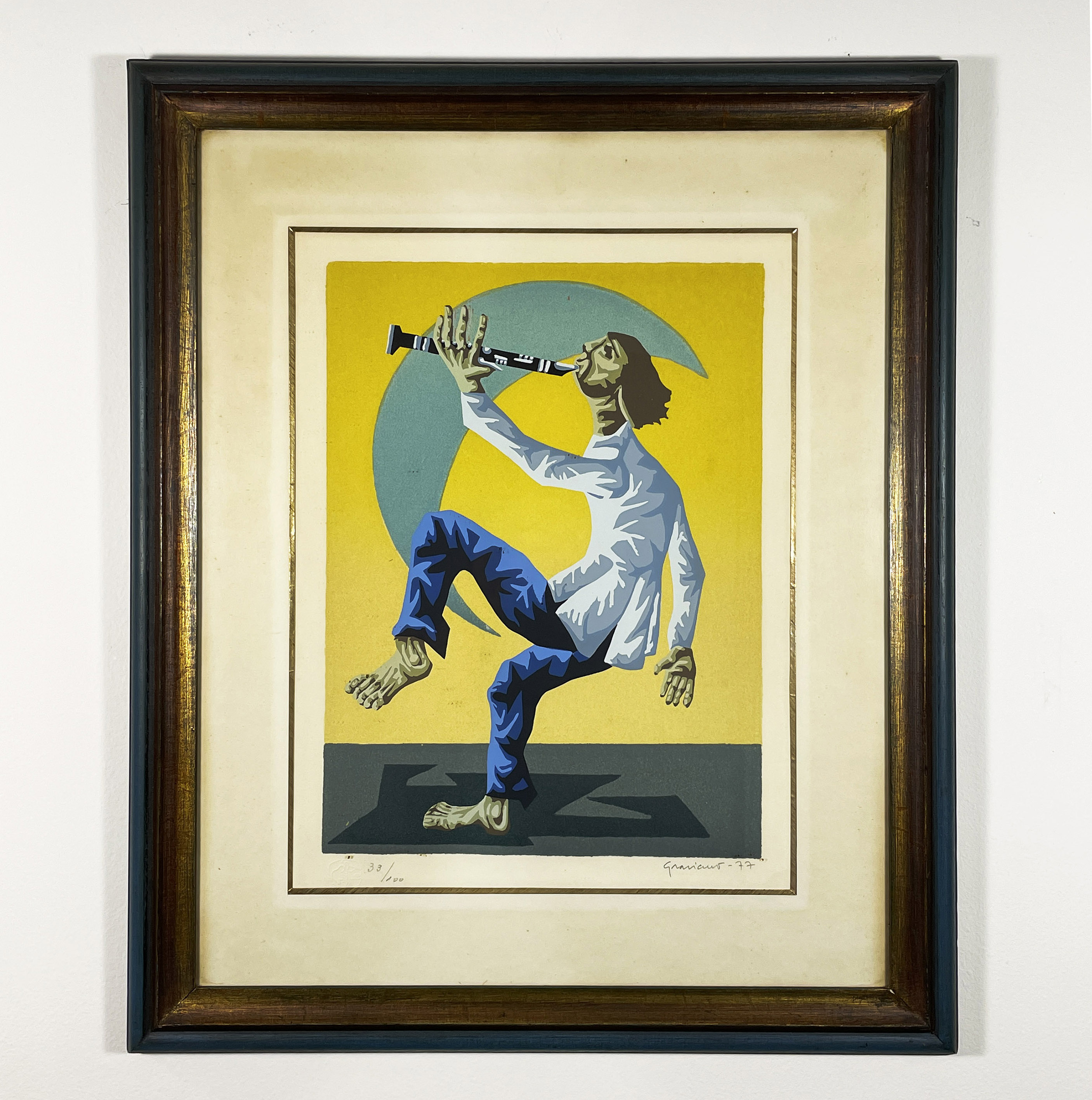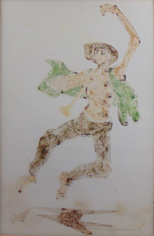 Clóvis Graciano - Mulher e pássaro - 4-4. Monotipia, 50x35 cm, 1969, A.C.I.D. Com moldura