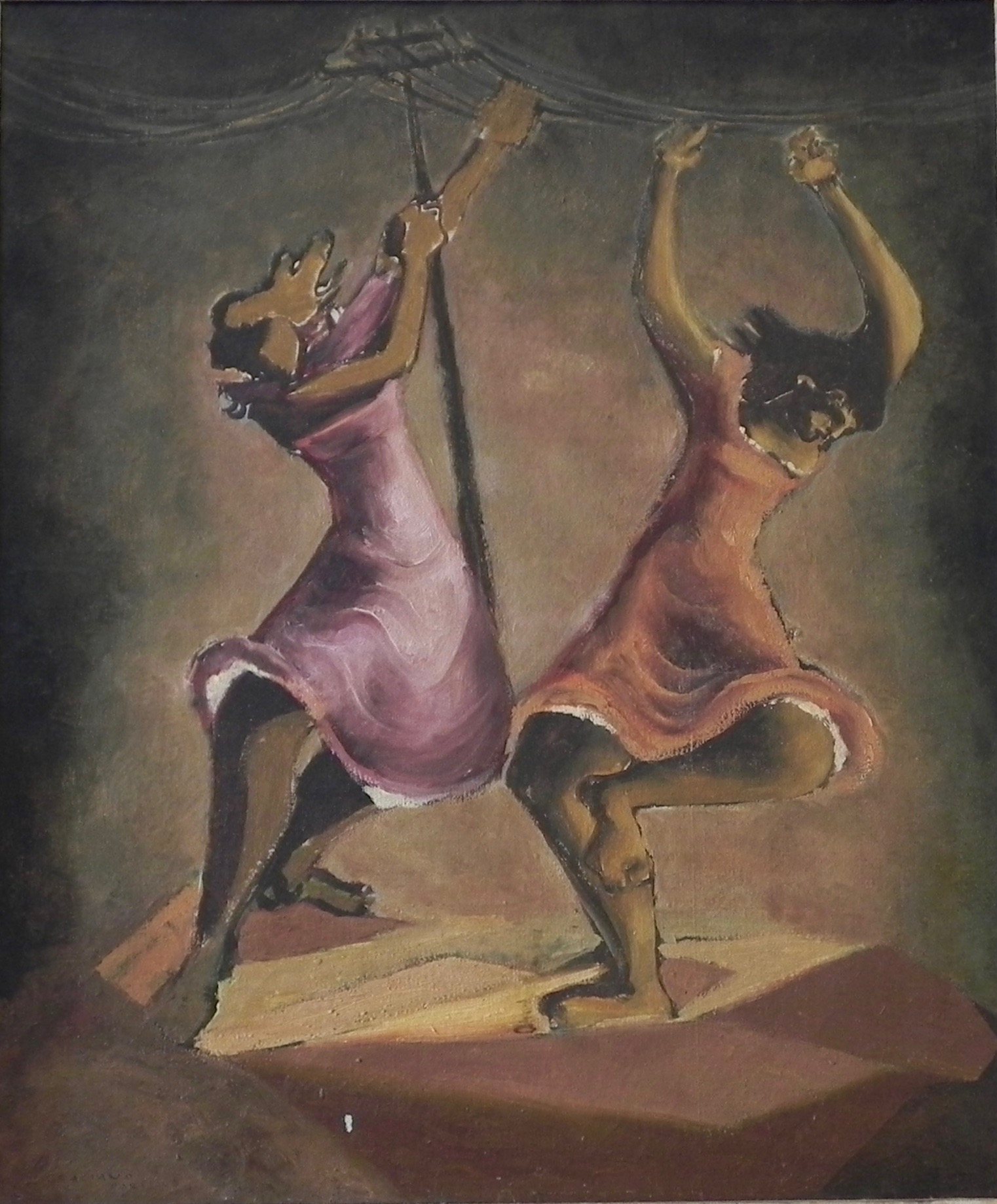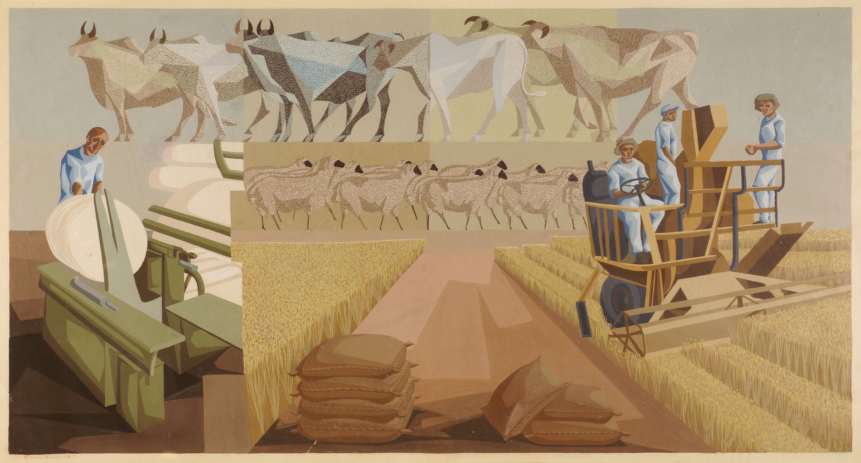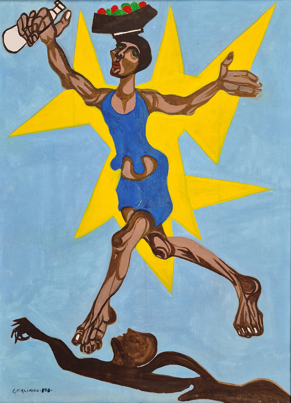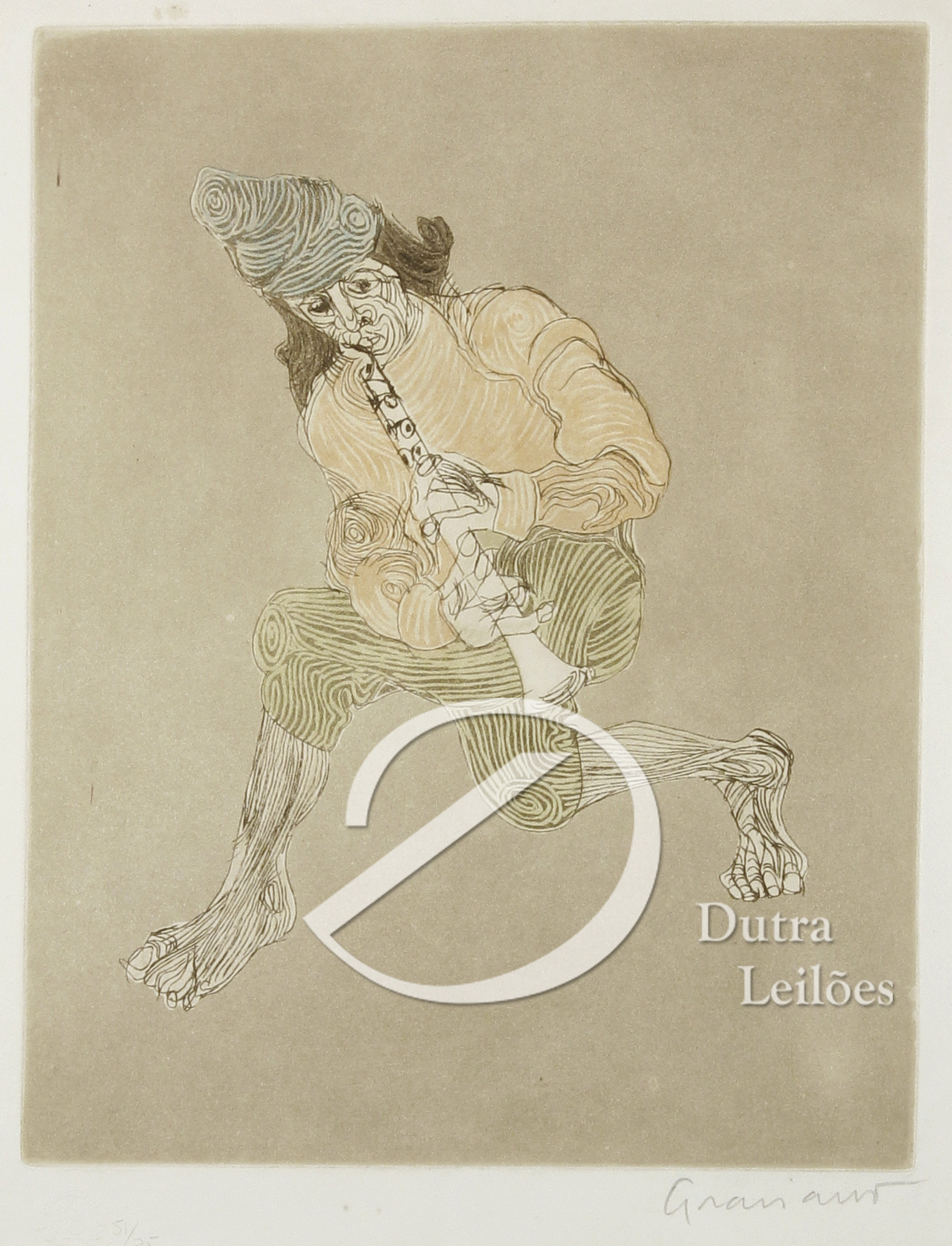 Clóvis Graciano (Araras SP 1907 - São Paulo SP 1988). Pintor, desenhista, cenógrafo, gravador, ilustrador. Em 1934, muda-se para a cidade de São Paulo onde realiza estudos com o pintor Waldemar da Costa (1904 - 1982), entre 1935 e 1937. Com Francisco Rebolo, Mario Zanini e Bonadei, integra o Grupo Santa Helena, em 1937. Na Escola Paulista de Belas Artes freqüenta como aluno ouvinte o curso de desenho até 1938. Em 1939 é eleito presidente da Família Artística Paulista-FAP. Em 1941, realiza sua primeira exposição individual e em 1948 é sócio-fundador do Museu de Arte Moderna de São Paulo-MAM/SP. Recebe prêmio no Salão Nacional de Belas Artes de viagem á Europa, em 1949. Estuda gravura e pintura mural por dois anos em Paris. Nos anos 1950 dedica-se especialmente a pintura mural. Transita pela ilustração de obras literárias, como Cancioneiro da Bahia de Dorival Caymmi e Terras do Sem Fim de Jorge Amado. Assume a direção da Pinacoteca do Estado de São Paulo, em 1971. Entre 1976 e 1978 é adido cultural em Paris. A obra de Clóvis Graciano caracteriza-se pela fidelidade ao figurativismo onde predominam os temas sociais. Produz paisagens e naturezas- mortas, cuja particularidade reside na singularidade do corte, no grafismo sintético e na rapidez da execução. Sua arte apresenta influência de Candido Portinari, uma vez que recorre ao pós-cubismo, à superposição de planos, e desconstrói a perspectiva por meio da deformação das figuras, especialmente de mãos e pés. A arte de Clóvis Graciano, principalmente a produção dos anos 1940, é marcada por temas sociais e pela figura humana, nas quais figuram os retirantes. Também produziu auto-retratos que expressam pouca tensão, mas apresentam variações psicológicas. Nos anos 1950 a produção é voltada à pintura mural como Arsmistício de Iperoig, na Fundação Armando Álvares Penteado-FAAP, entre outros, cuja inspiração advém do Renascimento.