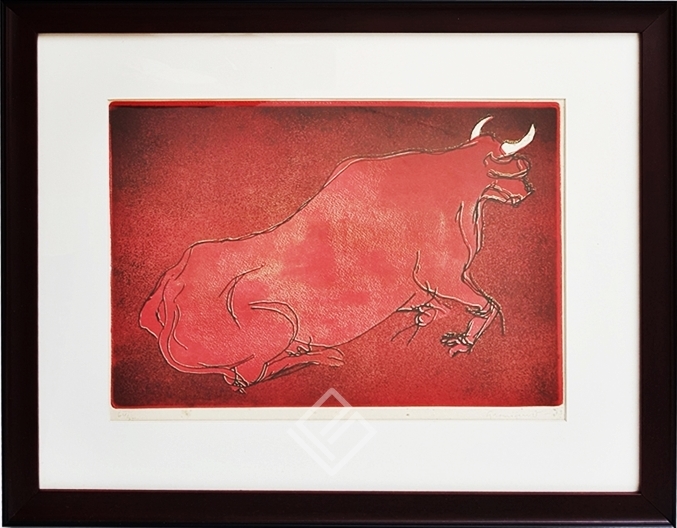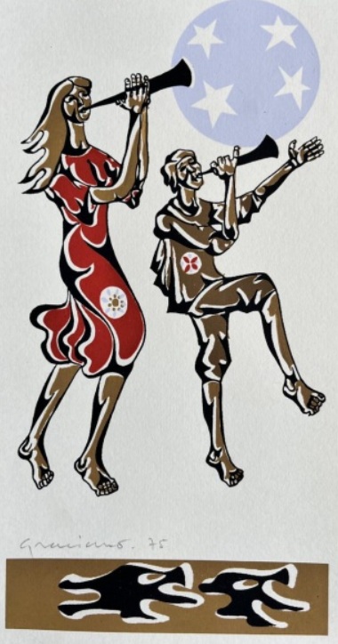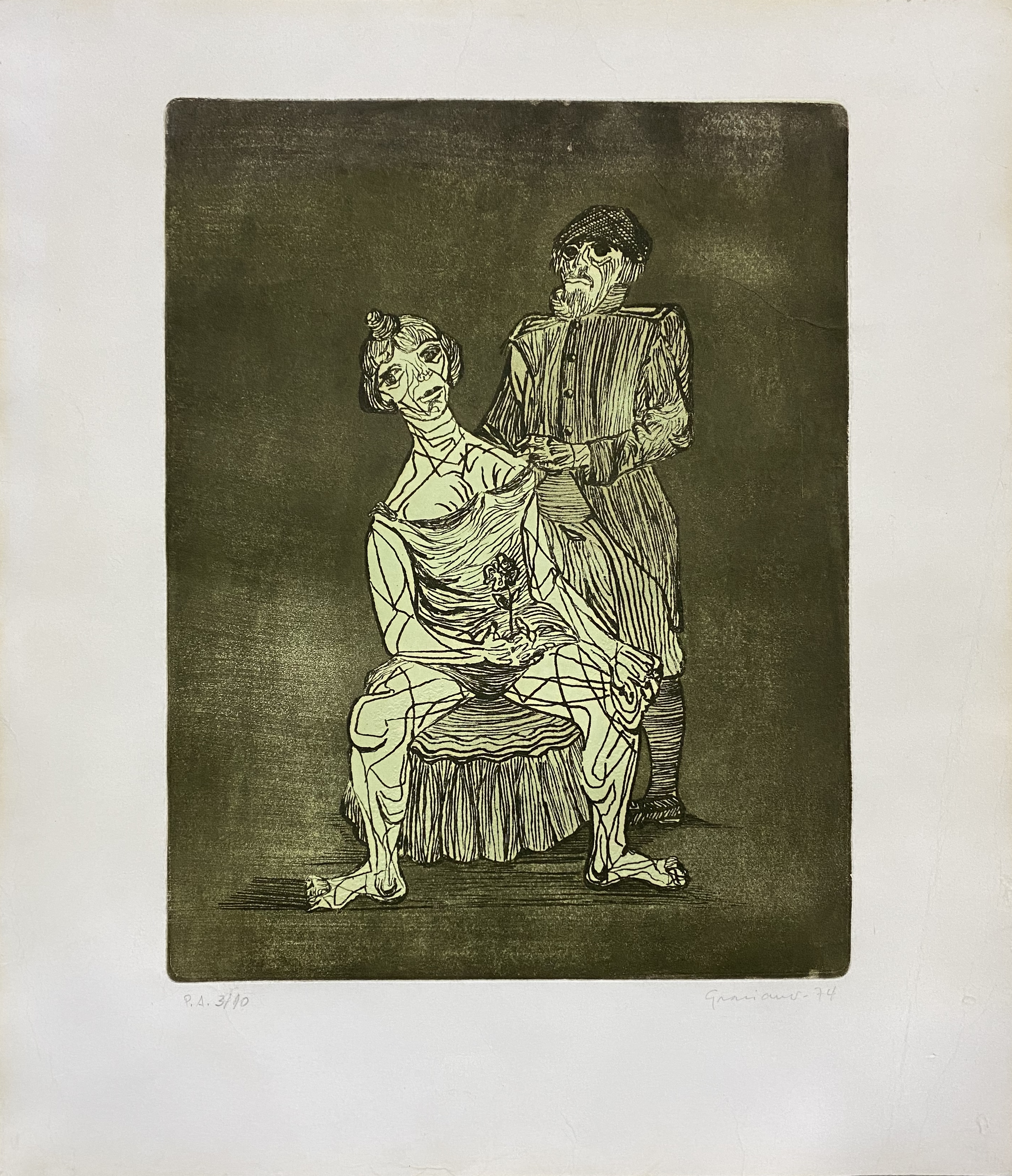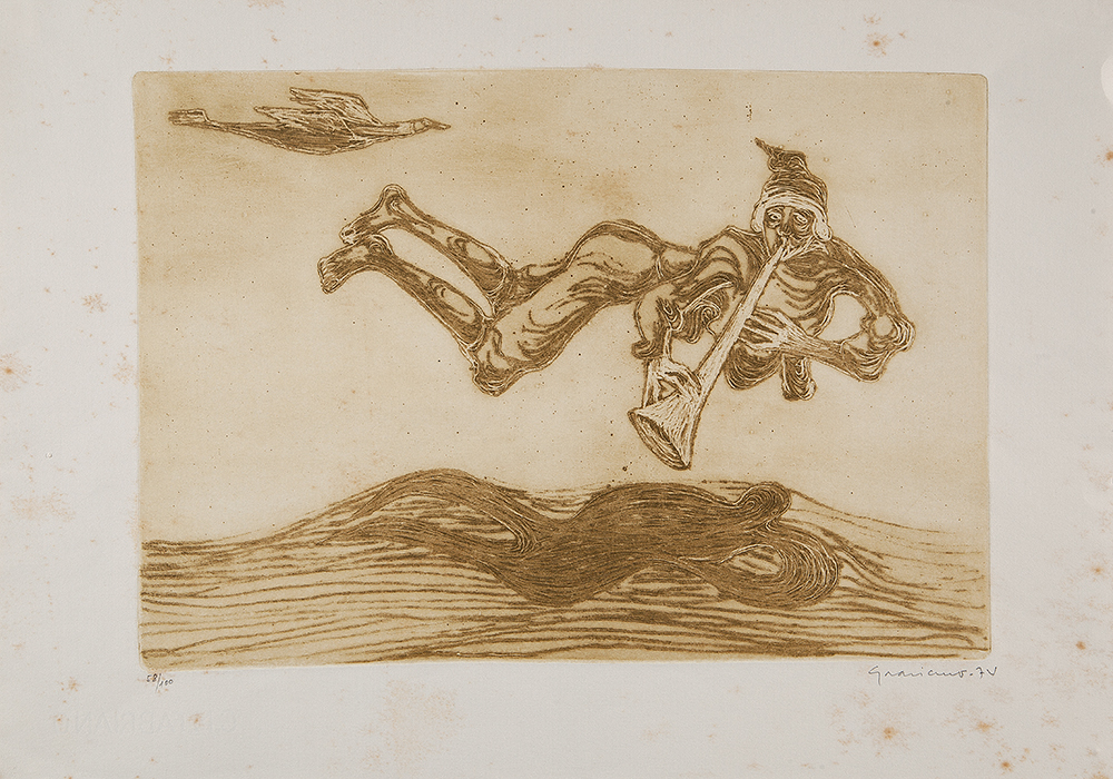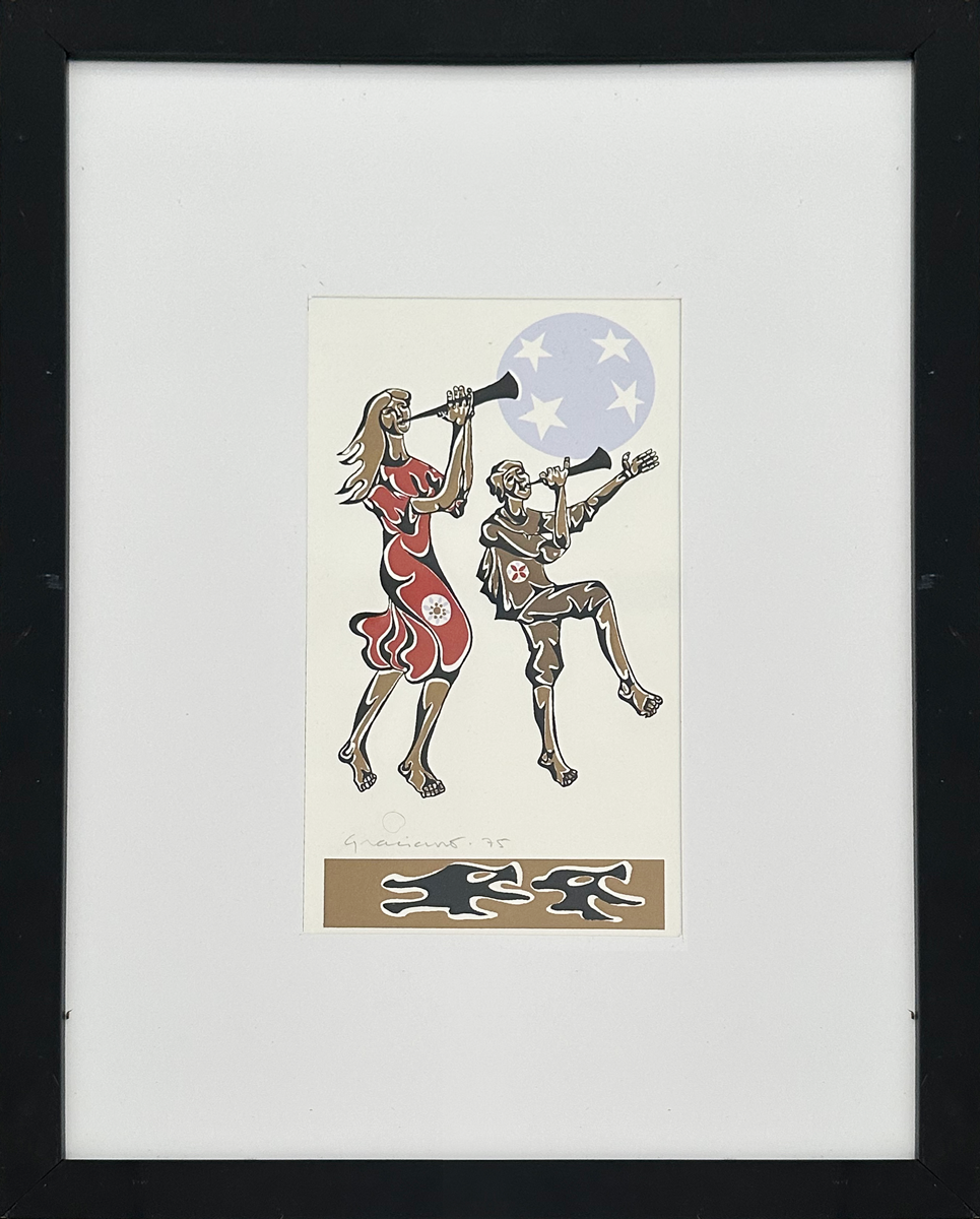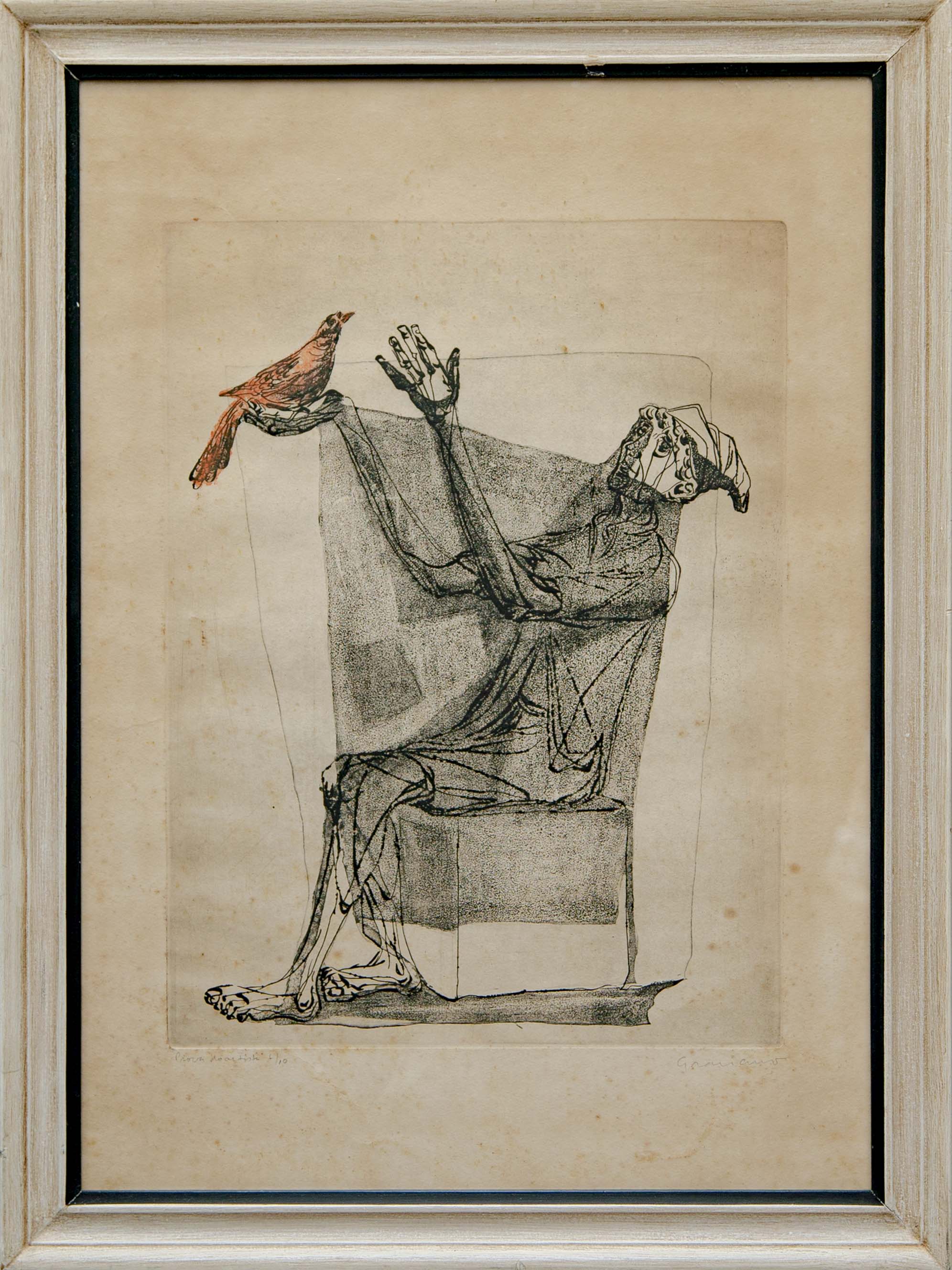 Clóvis Graciano - Mulher e pássaro - 4-4. Monotipia, 50x35 cm, 1969, A.C.I.D. Com moldura