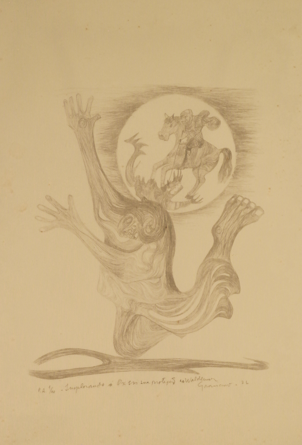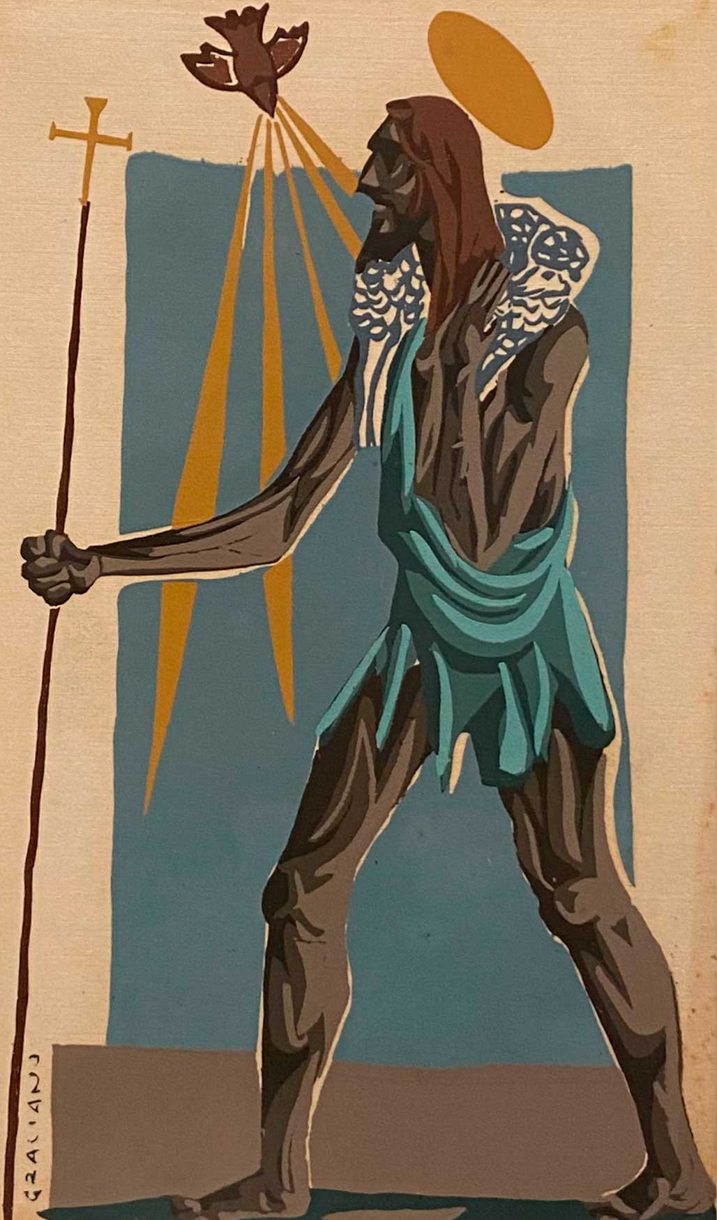 Clóvis Graciano - São Jorge e o Dragão - 1950 - Óleo sobre tela - Assinado canto inferior esquerdo - 55 x 81 cm.
