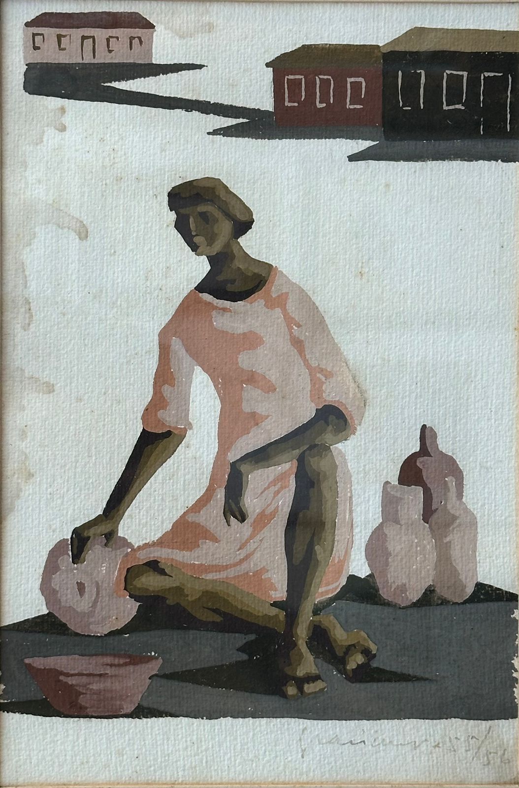 Clóvis Graciano - Sem título - 1960 - Guache sobre cartão - Assinado canto inferior direito - 37 x 24 cm.