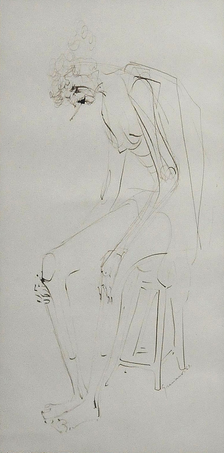 CLOVIS GRACIANO, Auto-Retrato, Desenho à Nanquim, ACIE,(m.i). (vidro da moldura no estado / com fungos)