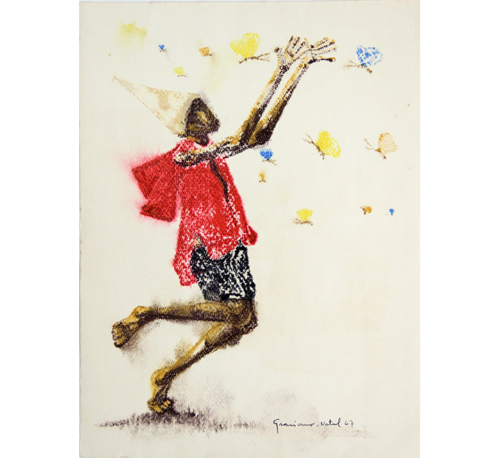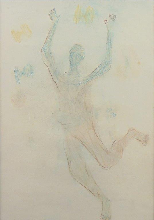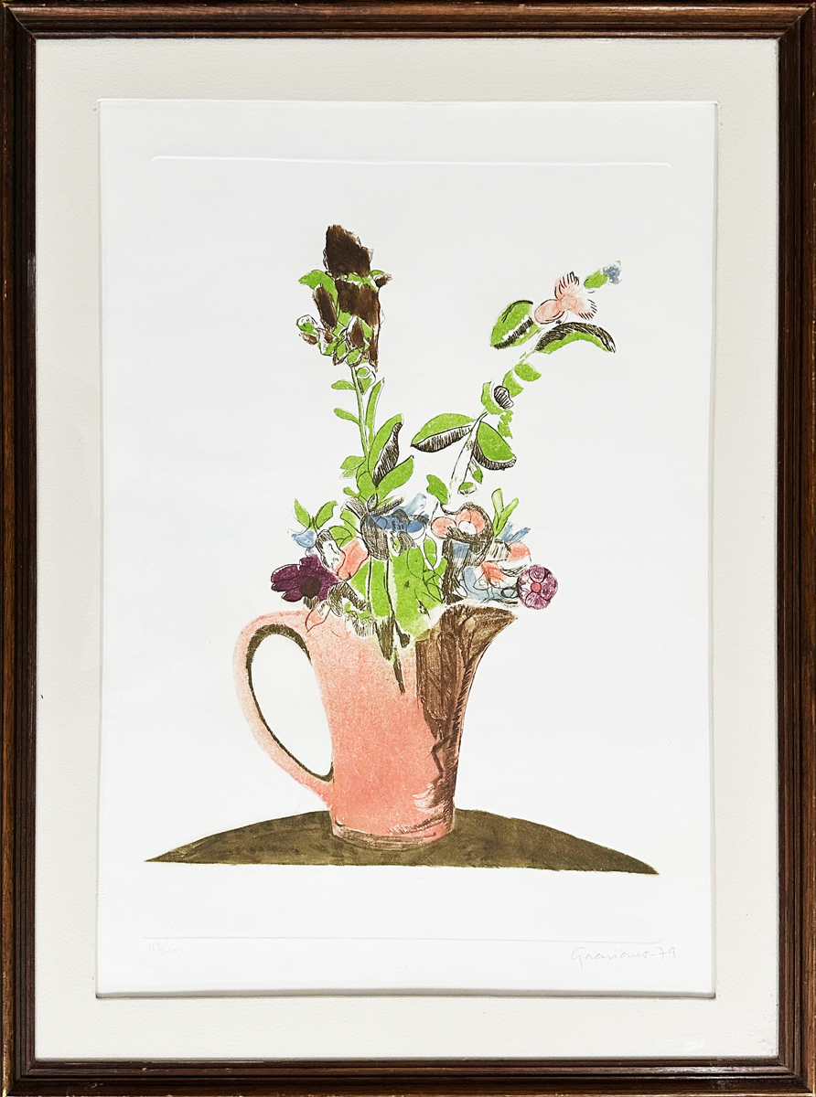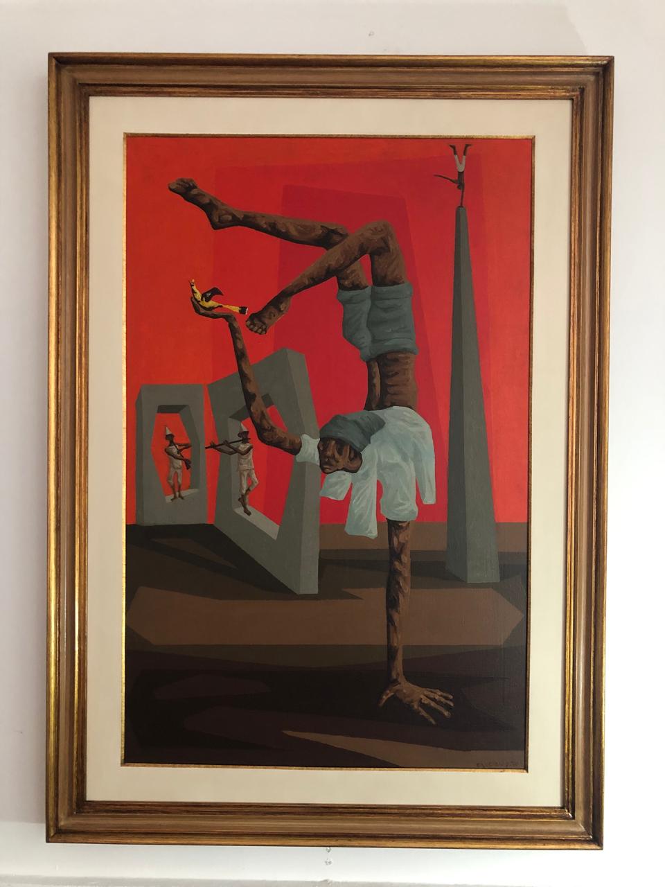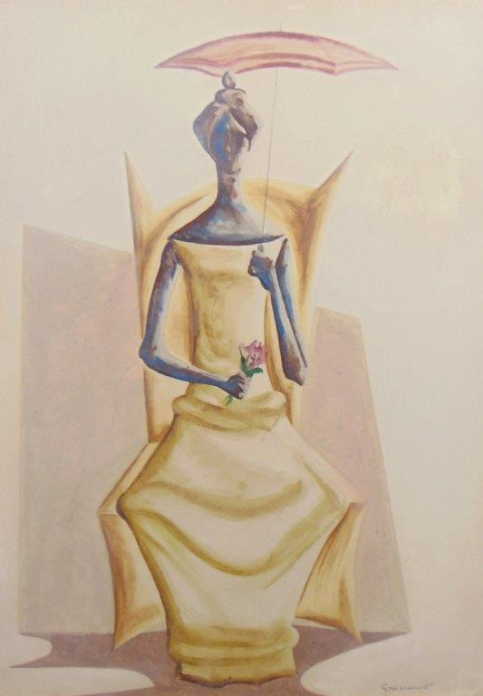 Clóvis Graciano - Mulher e pássaro - 4-4. Monotipia, 50x35 cm, 1969, A.C.I.D. Com moldura
