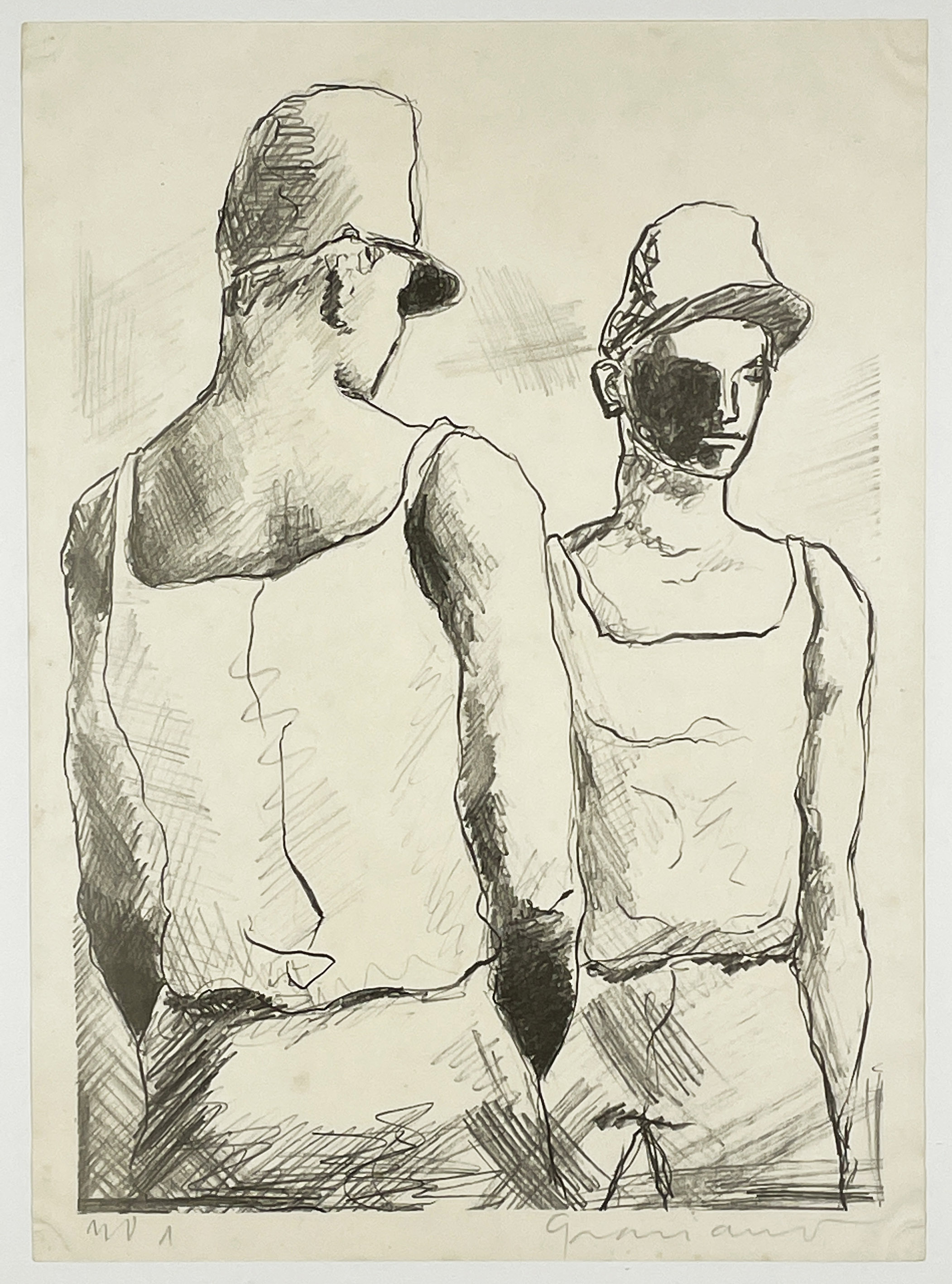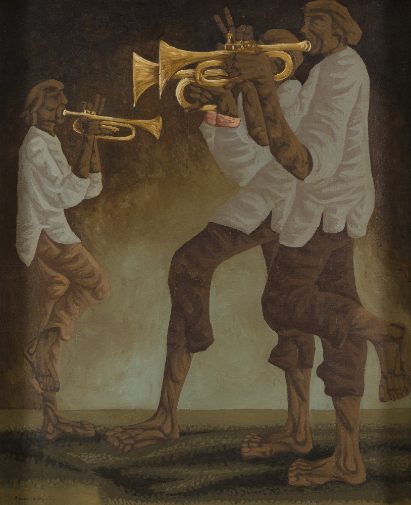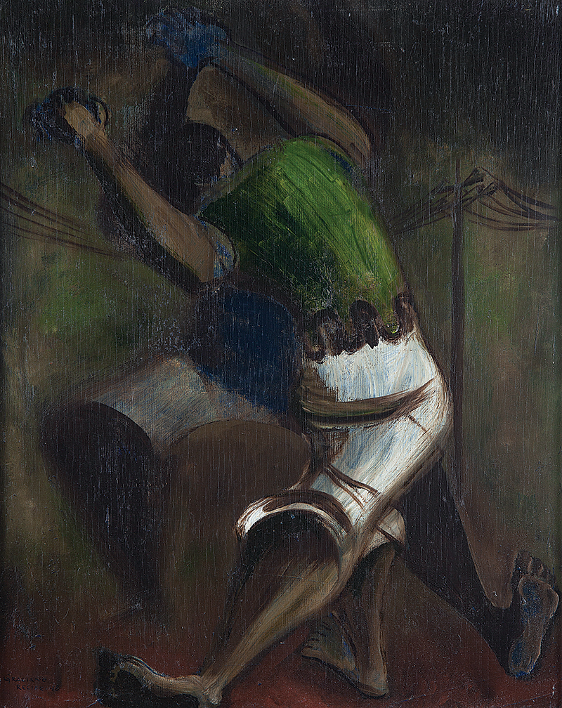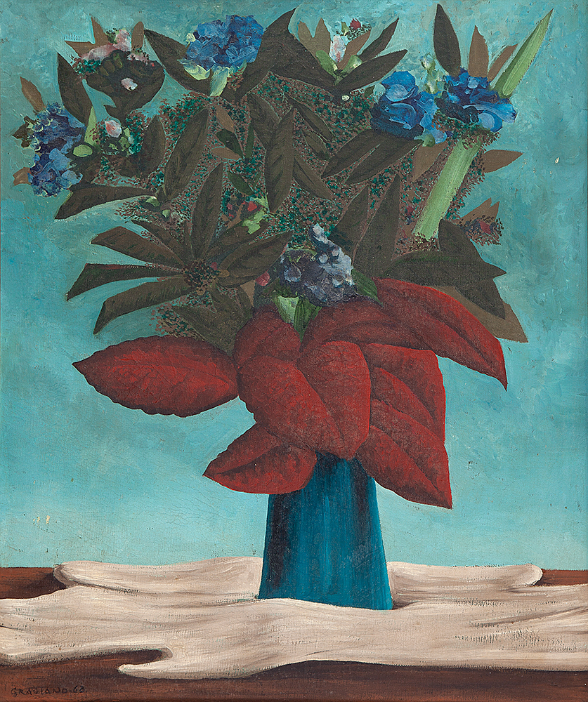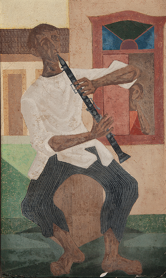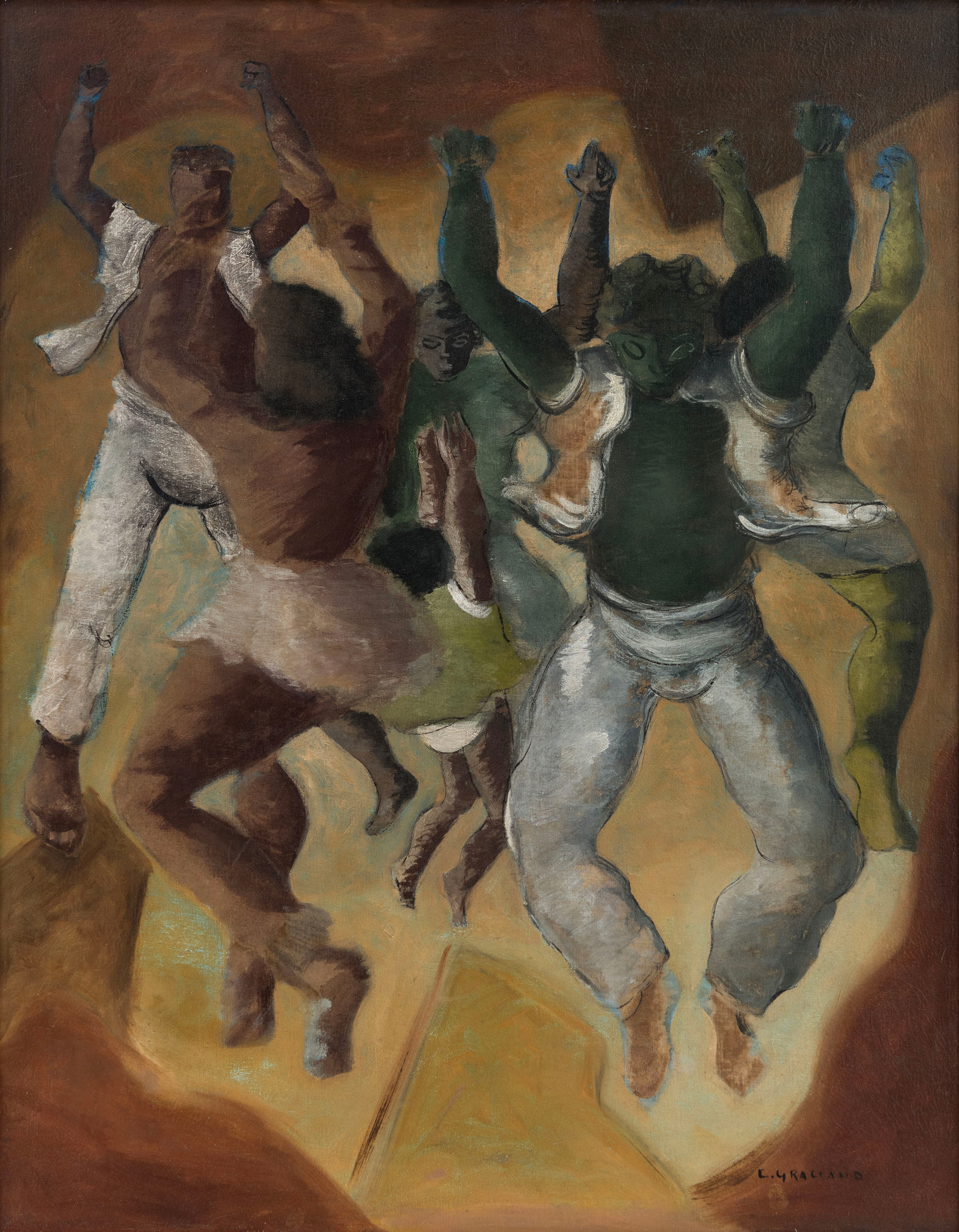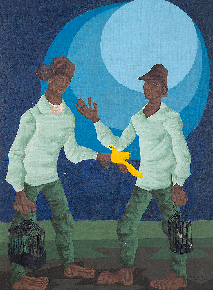 Clóvis Graciano (Araras SP 1907 - São Paulo SP 1988). Pintor, desenhista, cenógrafo, gravador, ilustrador. Em 1934, muda-se para a cidade de São Paulo onde realiza estudos com o pintor Waldemar da Costa (1904 - 1982), entre 1935 e 1937. Com Francisco Rebolo, Mario Zanini e Bonadei, integra o Grupo Santa Helena, em 1937. Na Escola Paulista de Belas Artes freqüenta como aluno ouvinte o curso de desenho até 1938. Em 1939 é eleito presidente da Família Artística Paulista-FAP. Em 1941, realiza sua primeira exposição individual e em 1948 é sócio-fundador do Museu de Arte Moderna de São Paulo-MAM/SP. Recebe prêmio no Salão Nacional de Belas Artes de viagem á Europa, em 1949. Estuda gravura e pintura mural por dois anos em Paris. Nos anos 1950 dedica-se especialmente a pintura mural. Transita pela ilustração de obras literárias, como Cancioneiro da Bahia de Dorival Caymmi e Terras do Sem Fim de Jorge Amado. Assume a direção da Pinacoteca do Estado de São Paulo, em 1971. Entre 1976 e 1978 é adido cultural em Paris. A obra de Clóvis Graciano caracteriza-se pela fidelidade ao figurativismo onde predominam os temas sociais. Produz paisagens e naturezas- mortas, cuja particularidade reside na singularidade do corte, no grafismo sintético e na rapidez da execução. Sua arte apresenta influência de Candido Portinari, uma vez que recorre ao pós-cubismo, à superposição de planos, e desconstrói a perspectiva por meio da deformação das figuras, especialmente de mãos e pés. A arte de Clóvis Graciano, principalmente a produção dos anos 1940, é marcada por temas sociais e pela figura humana, nas quais figuram os retirantes. Também produziu auto-retratos que expressam pouca tensão, mas apresentam variações psicológicas. Nos anos 1950 a produção é voltada à pintura mural como Arsmistício de Iperoig, na Fundação Armando Álvares Penteado-FAAP, entre outros, cuja inspiração advém do Renascimento.