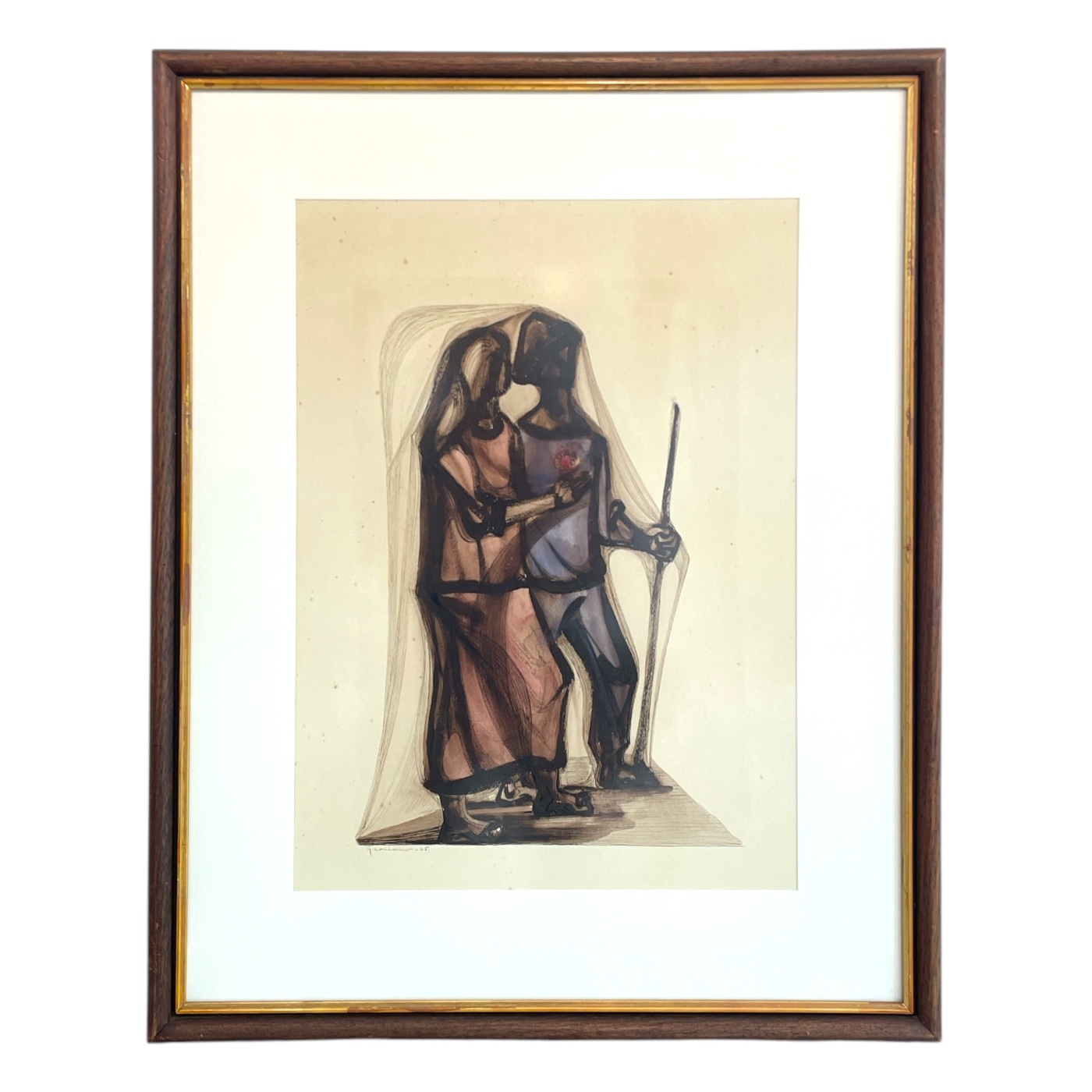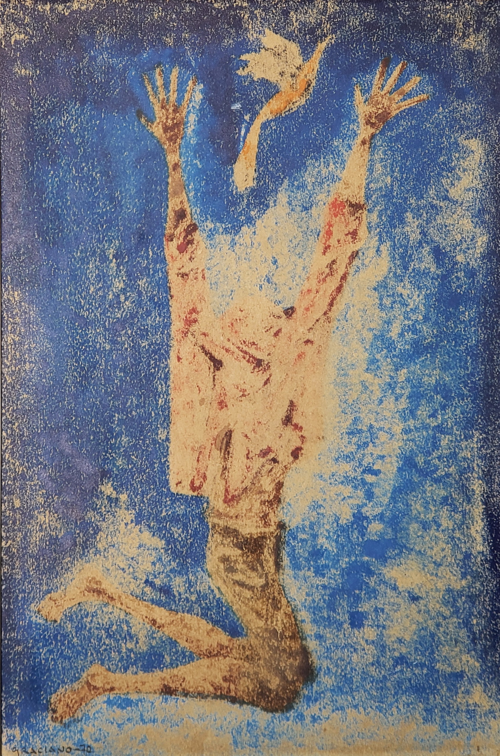 Clóvis Graciano - Mulher e pássaro - 4-4. Monotipia, 50x35 cm, 1969, A.C.I.D. Com moldura
