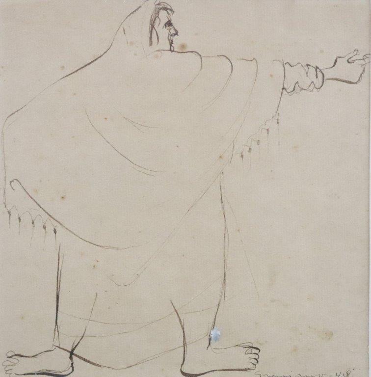 CLOVIS GRACIANO, Auto-Retrato, Desenho à Nanquim, ACIE,(m.i). (vidro da moldura no estado / com fungos)