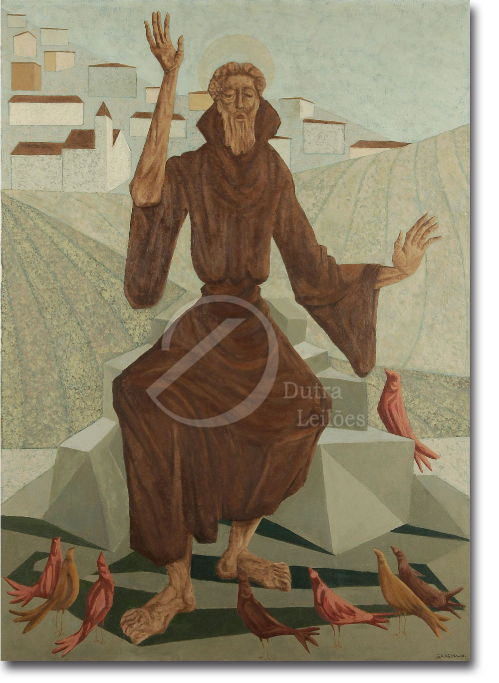 Clóvis Graciano - São Jorge e o Dragão - 1950 - Óleo sobre tela - Assinado canto inferior esquerdo - 55 x 81 cm.