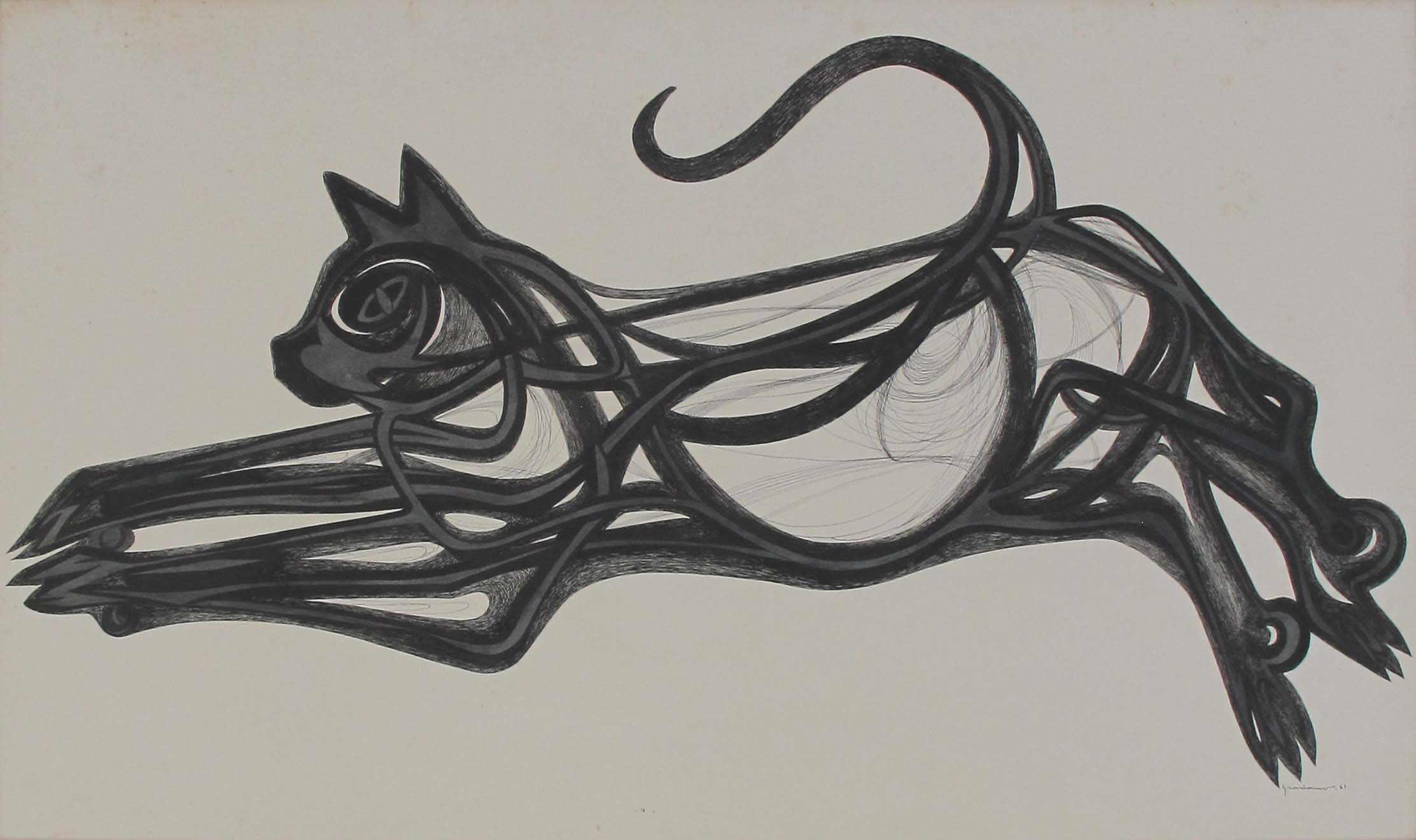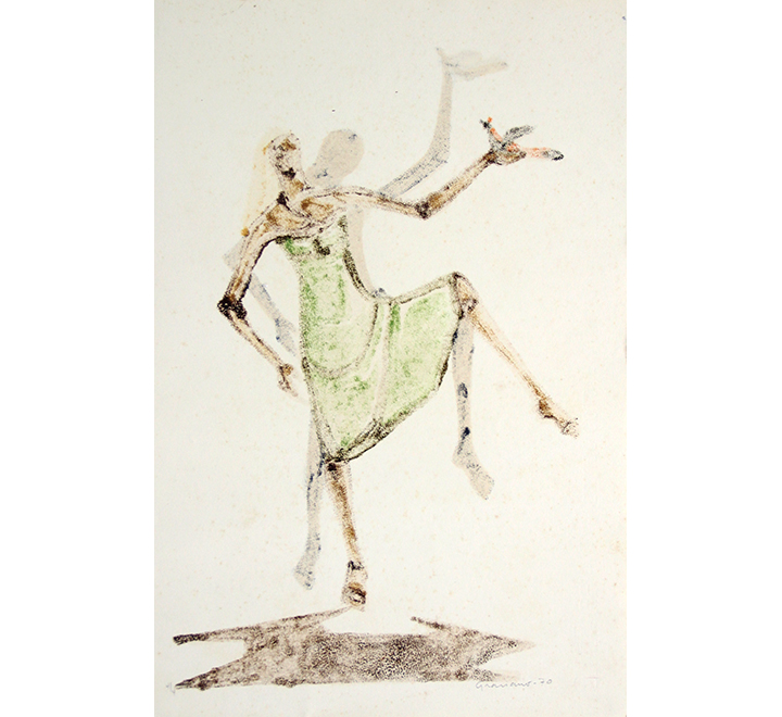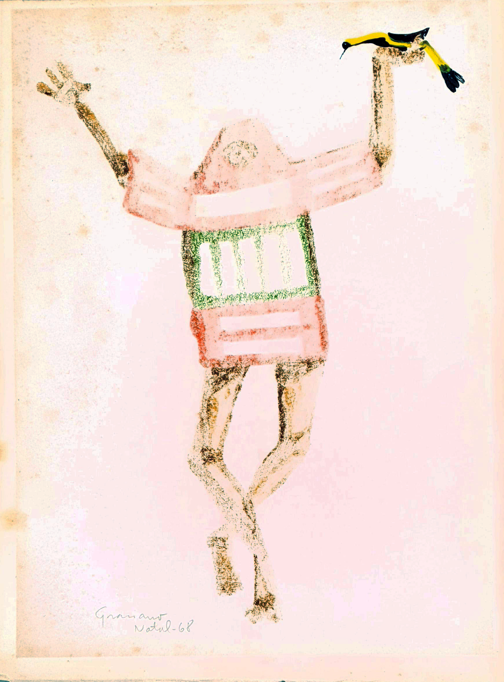 Clóvis Graciano - Mulher e pássaro - 4-4. Monotipia, 50x35 cm, 1969, A.C.I.D. Com moldura
