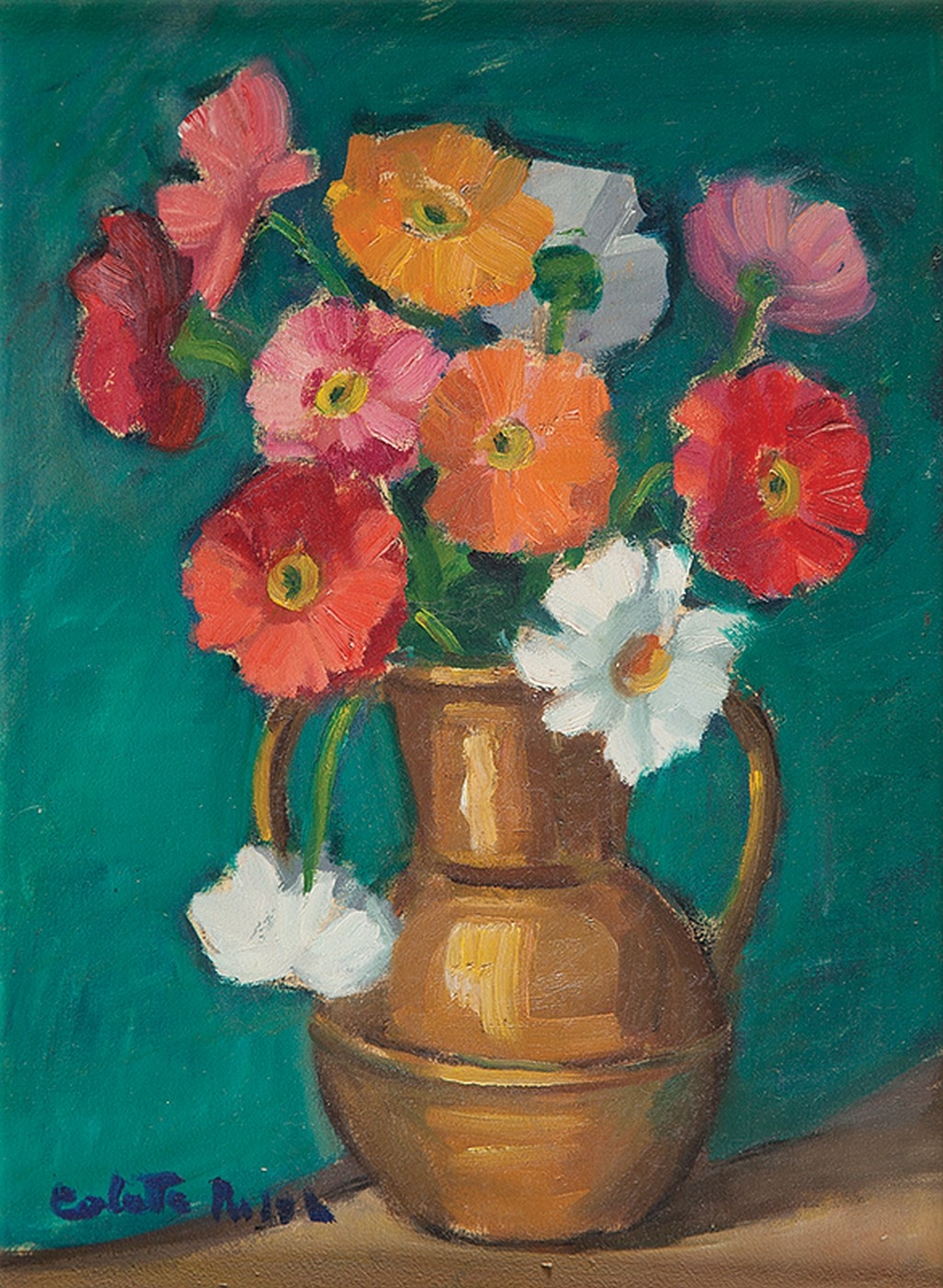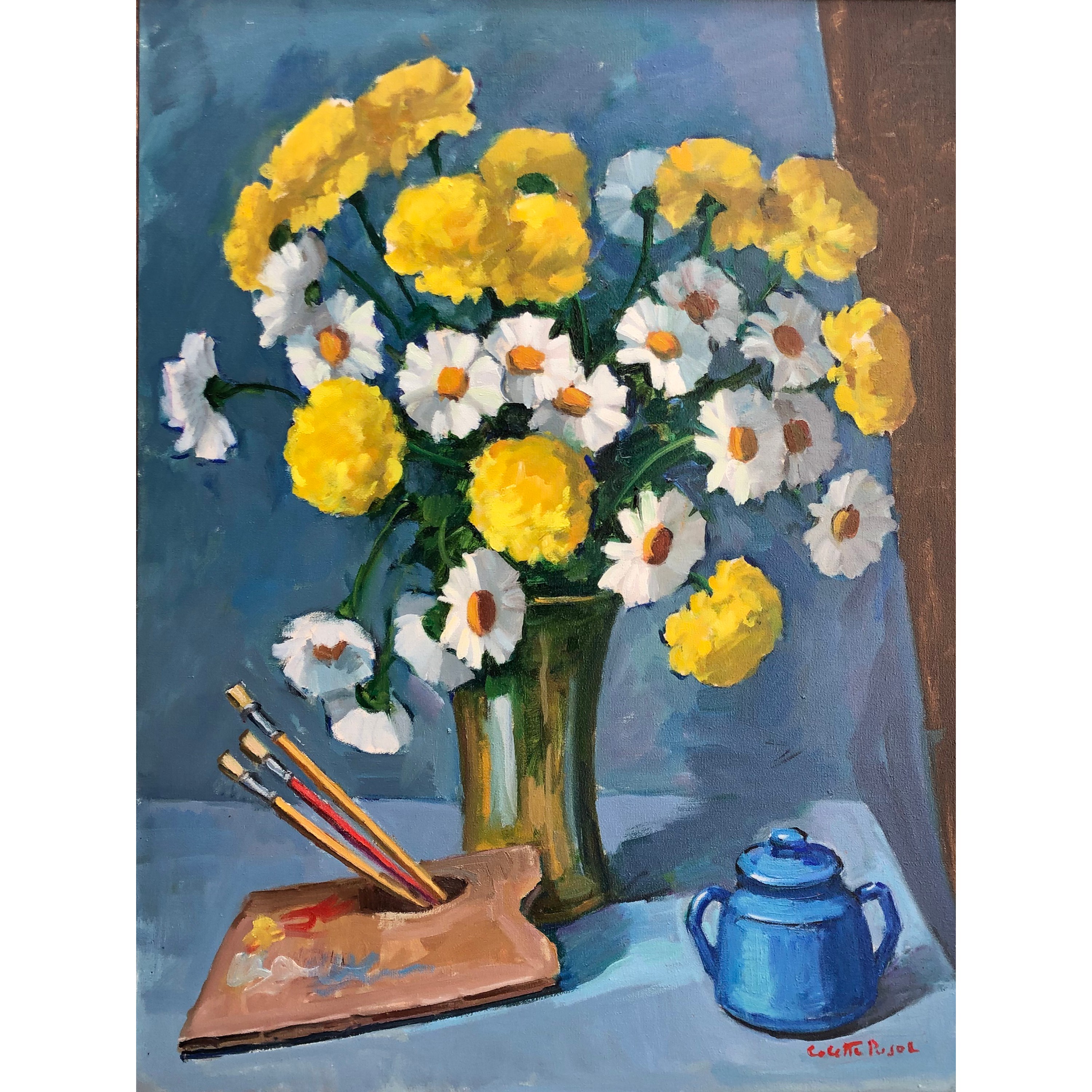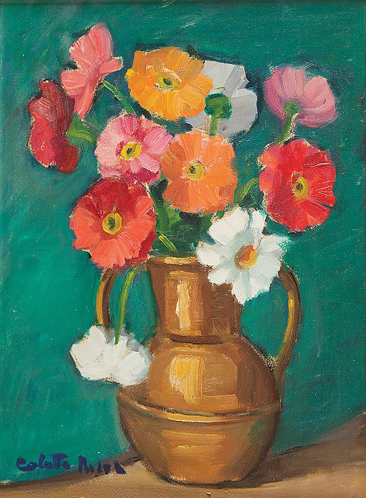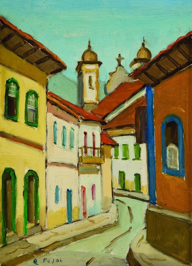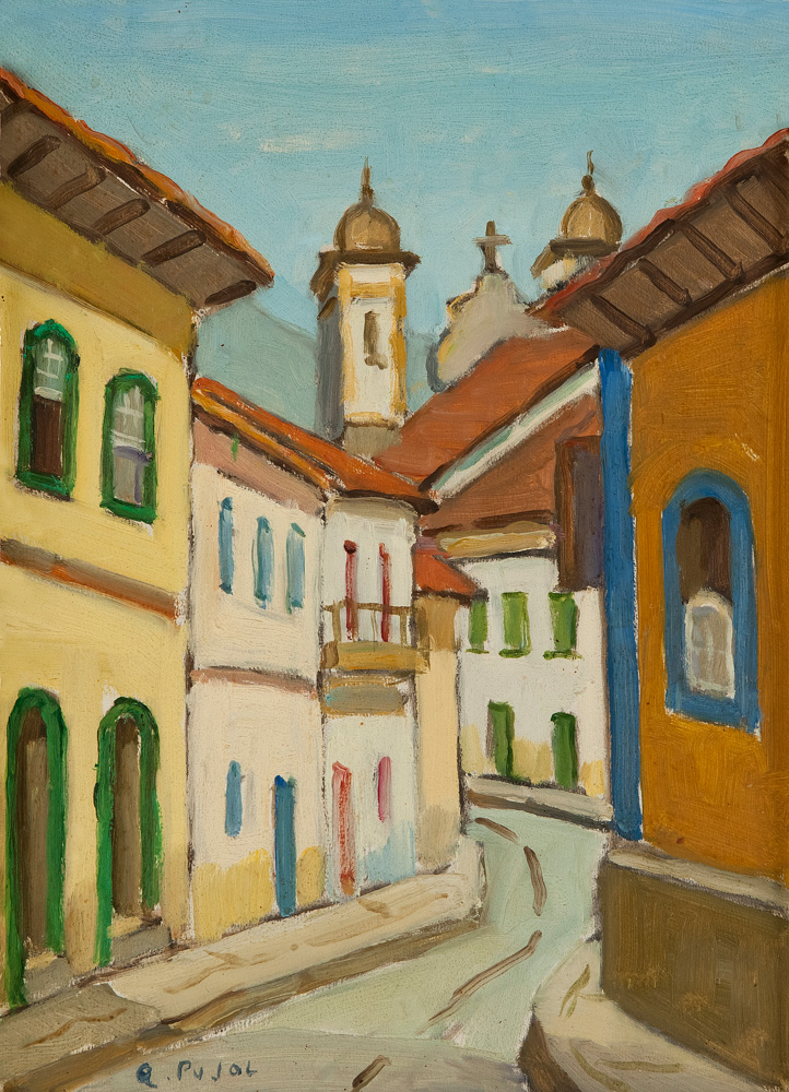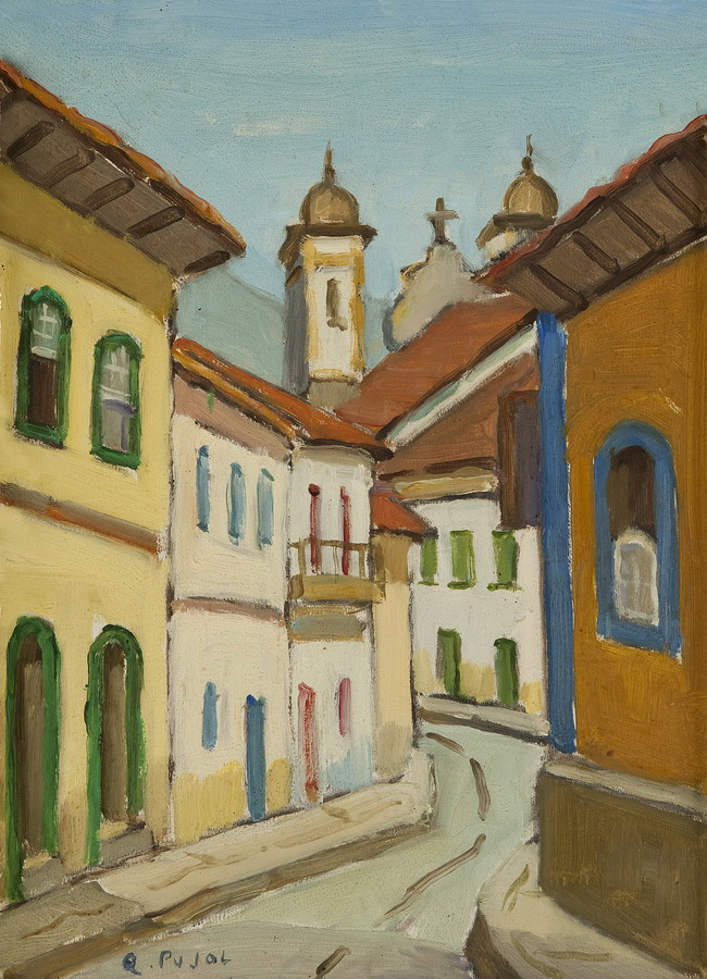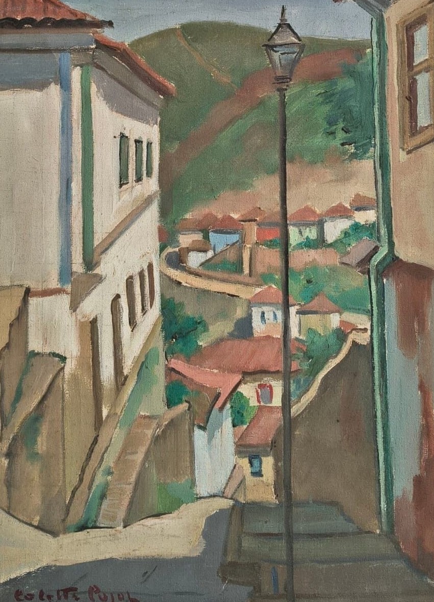 Colette Pujol (São Paulo SP 1913 - idem 1999). Pintora, desenhista e professora. Inicia-se na pintura com Georges Pavec em Paris, em 1925. Estuda desenho com Lucília Fraga (1895-1979), e pintura com Antonio Rocco (1880-1944), de 1937 a 1942, em São Paulo. Em 1942, reside em Salvador, onde cursa a Escola de Belas Artes, com Presciliano Silva (1883-1965). Em 1945, leciona pintura e desenho na Escola de Belas Artes de São Paulo. Com bolsa de estudos, concedida pelo governo francês, freqüenta a Escola Superior de Belas Artes (1946 a 1947) e a Academia Julian. Estuda com Emmanuel Fougerat, Lucien Jonas e Désirée Lucas e ingressa no ateliê de Dupas. Regressa ao Brasil em 1949 e abre um curso particular de desenho e pintura. Torna-se professora da Associação Paulista de Belas Artes de São Paulo em 1959.