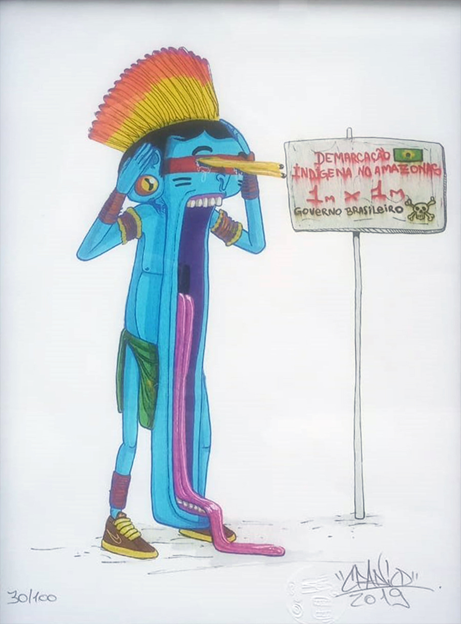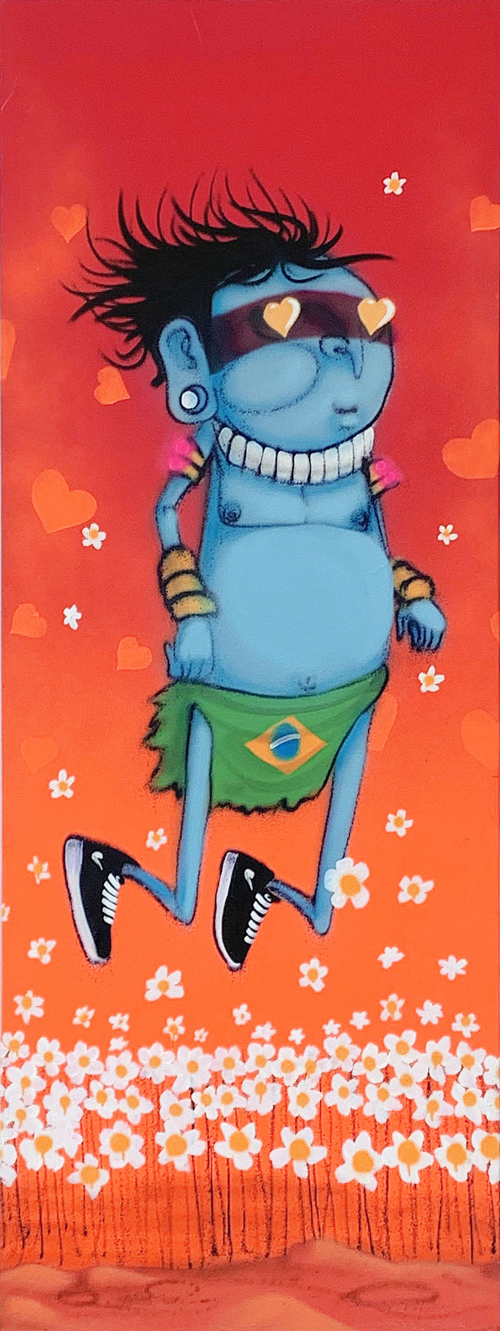 Adepto a pintura free-style, suas referências estão no pop art, no cartoon e na animação.