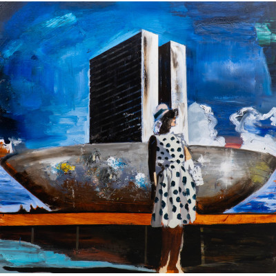 Daniel Lannes - Na Garrafa - 2006 - Óleo sobre tela - Assinado verso - 140 × 163 cm.