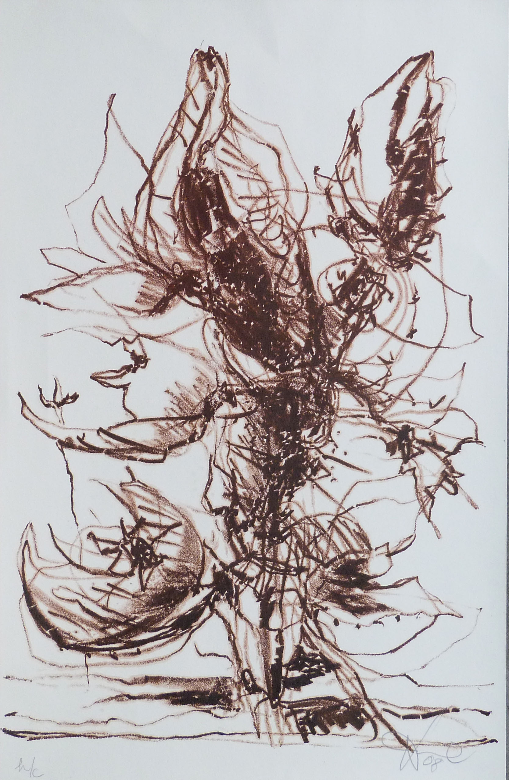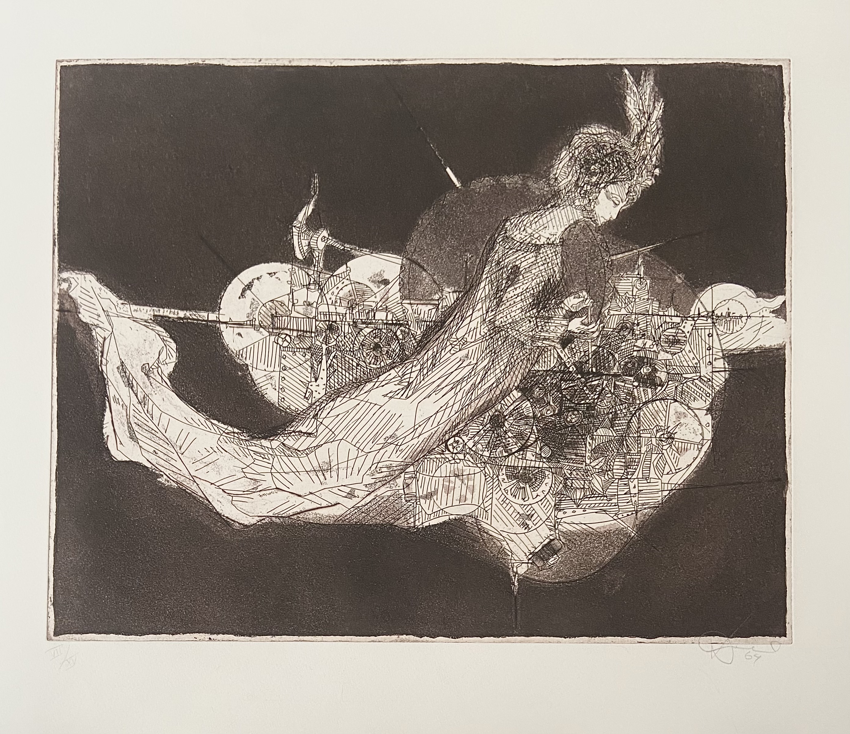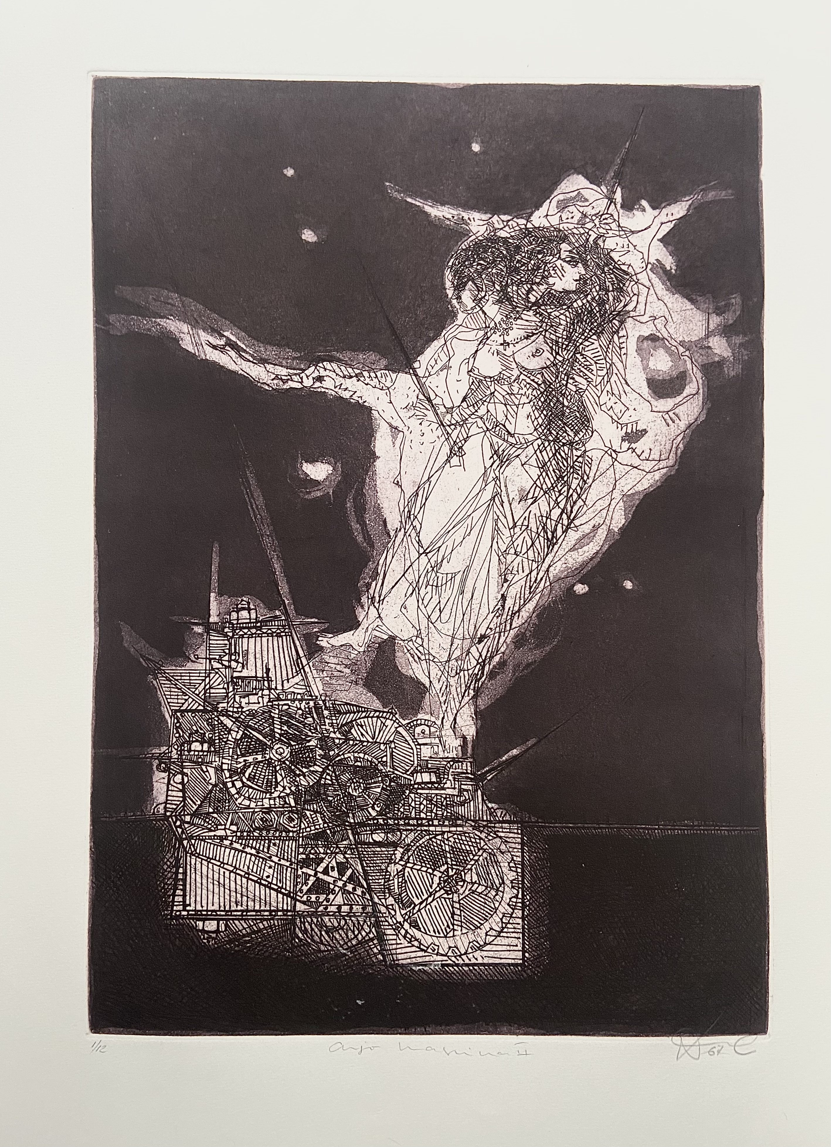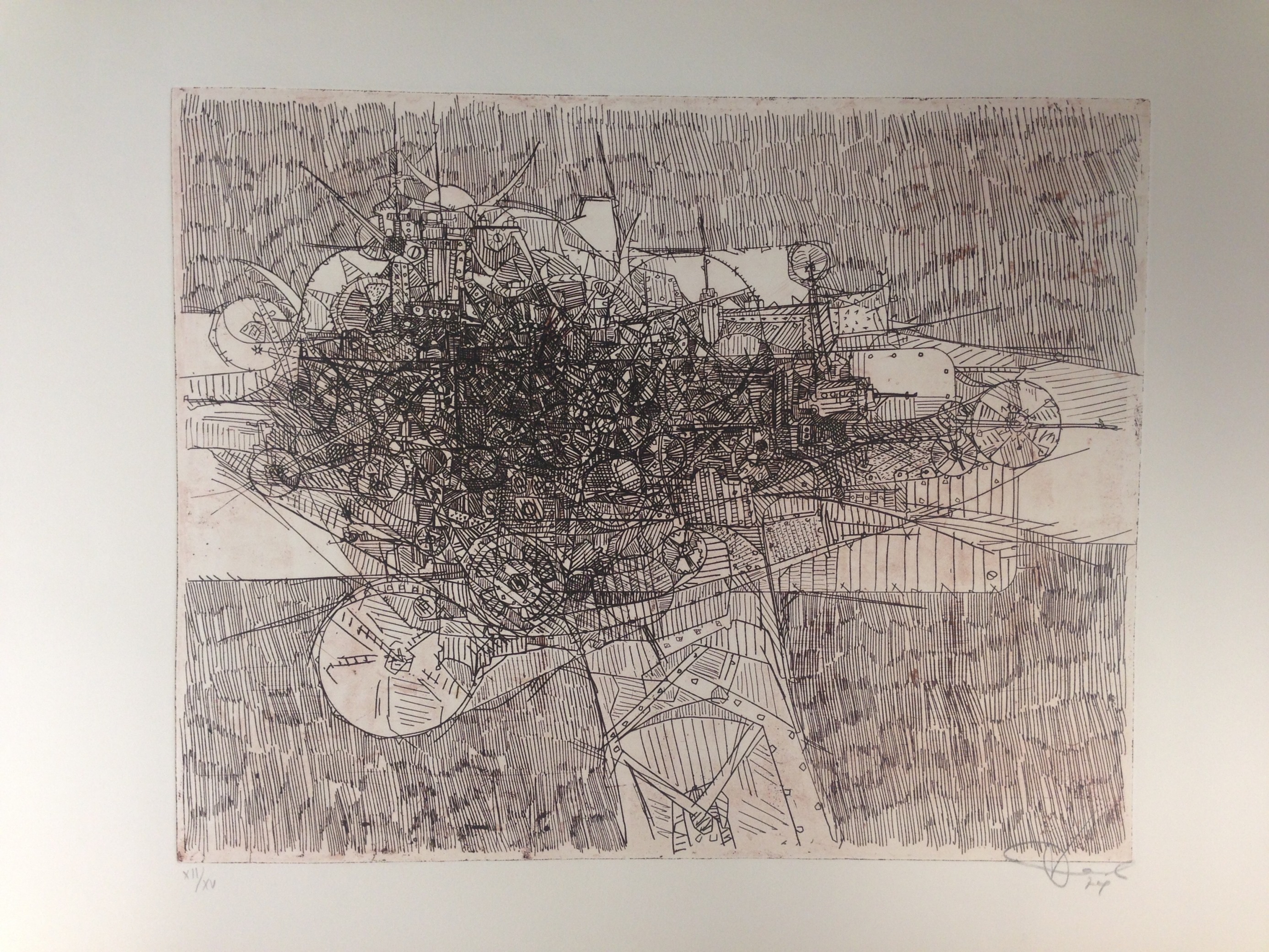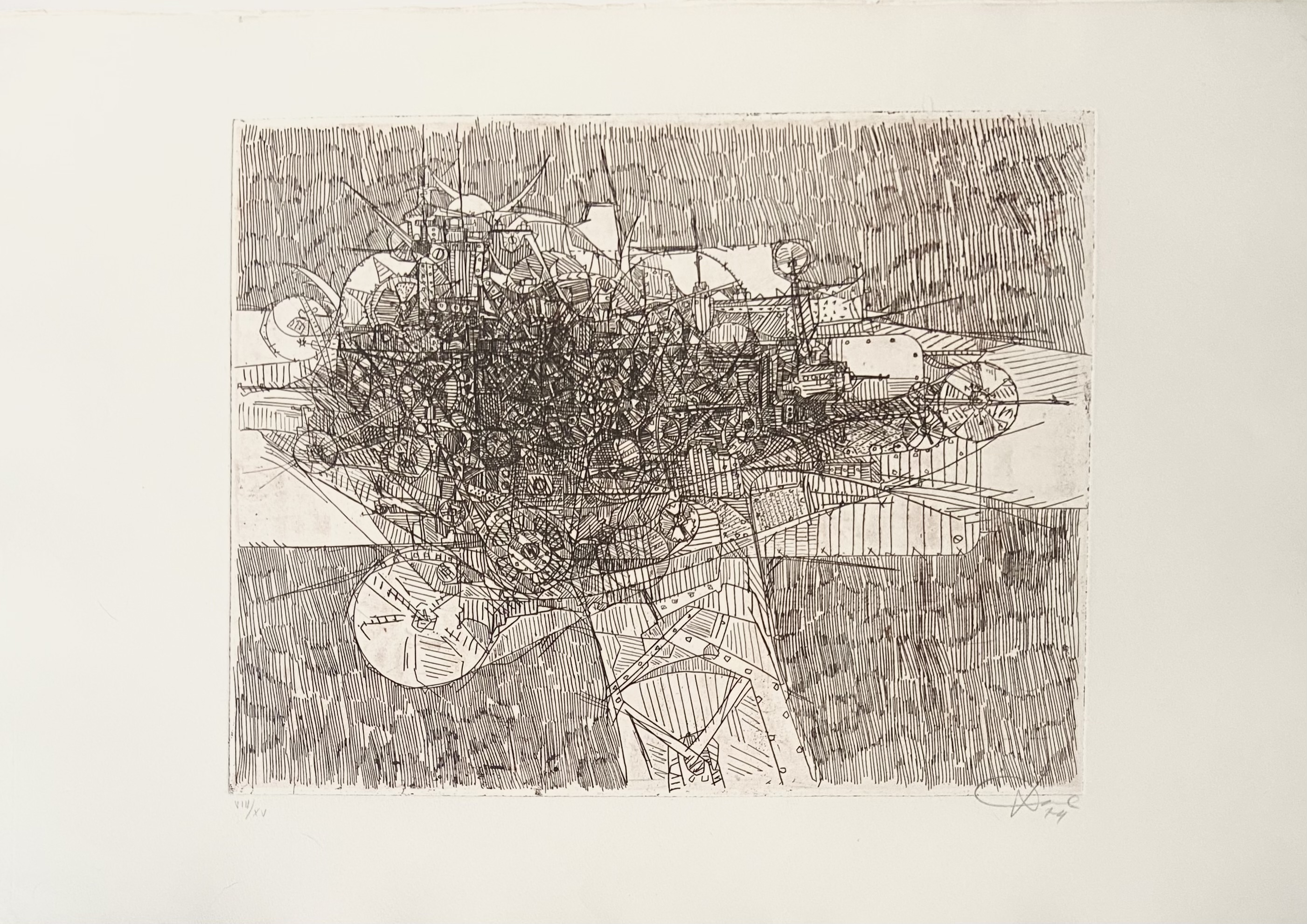 Utiliza variadas técnicas como desenhos, gravuras e pinturas, apresentando uma produção cujos principais temas são: as cidades imaginárias e os anjos e as máquinas.