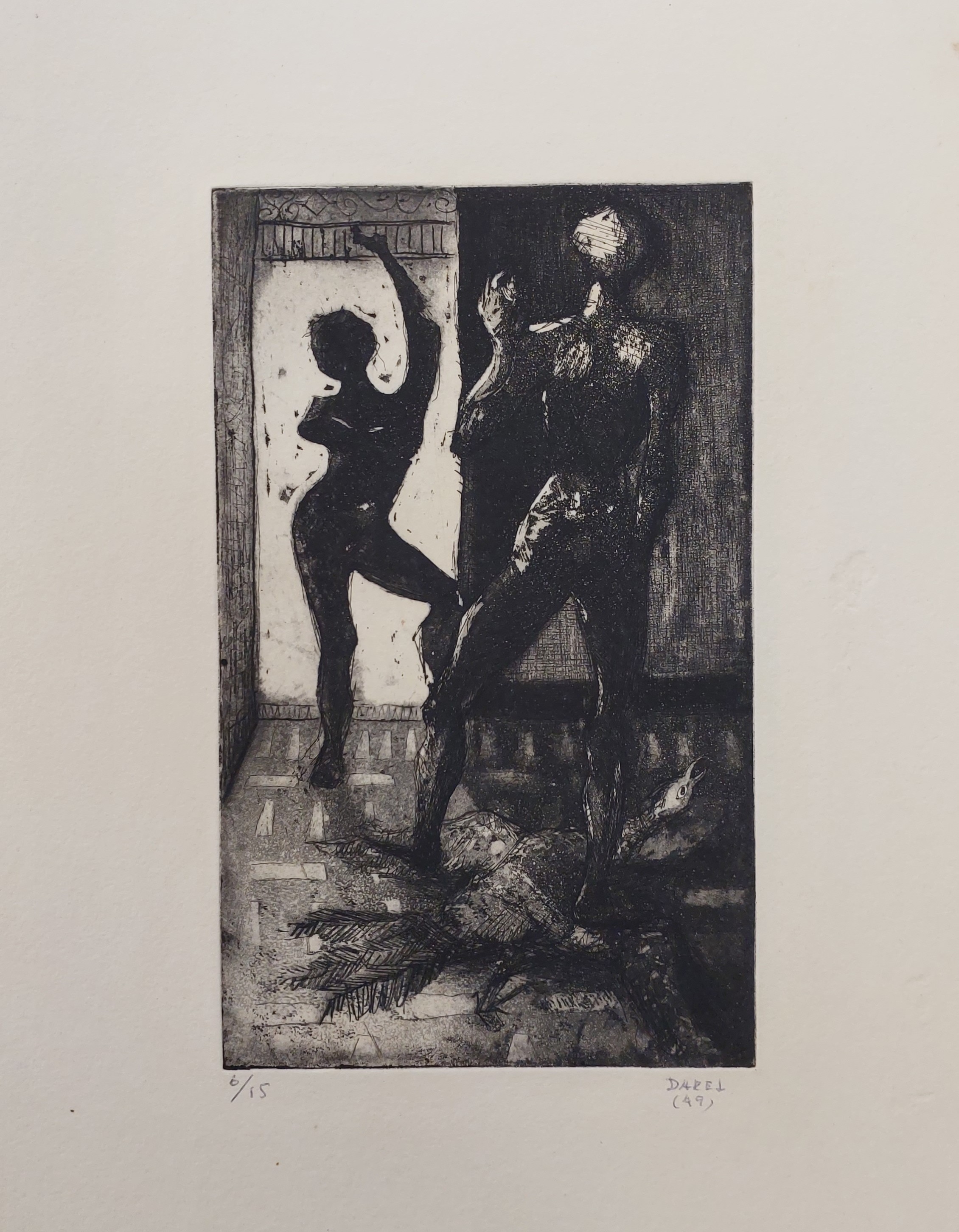 Darel Valença Lins (Palmares PE 1924). Gravador, pintor, desenhista, ilustrador, professor. Estuda na Escola de Belas Artes do Recife, atual Universidade Federal de Pernambuco - UFPE, entre 1941 e 1942, e atua como desenhista técnico. Muda-se para o Rio de Janeiro em 1946. Estuda gravura em metal com Henrique Oswald (1918 - 1965) no Liceu de Artes e Ofícios, em 1948. Dois anos depois, entra em contato com Oswaldo Goeldi (1895 - 1961). Atua como ilustrador em diversos periódicos, como a revista Manchete e os jornais Última Hora e Diário de Notícias. Entre 1953 e 1966, encarrega-se das publicações da Sociedade dos Cem Bibliófilos do Brasil. Com o prêmio de viagem ao exterior, recebido no Salão Nacional de Arte Moderna - SNAM do Rio de Janeiro, em 1957, viaja para a Itália, onde permanece até 1960. Ilustra diversos livros, como Memórias de um Sargento de Milícias, 1957, de Manuel Antônio de Almeida (1831 - 1861); Poranduba Amazonense, 1961, de Barbosa Rodrigues (1842 - 1909); São Bernardo, 1992, de Graciliano Ramos (1892 - 1953); e A Polaquinha, 2002, de Dalton Trevisan (1925). Leciona gravura em metal no Museu de Arte de São Paulo Assis Chateaubriand - Masp, em 1951; litografia na Escola Nacional de Belas Artes - Enba, no Rio de Janeiro, entre 1955 e 1957; e na Faculdade de Artes Plásticas da Fundação Armando Álvares Penteado - Faap, em São Paulo, de 1961 a 1964. Entre 1968 e 1969, realiza painéis como os do Palácio dos Arcos, sede do Ministério das Relações Exteriores, em Brasília.