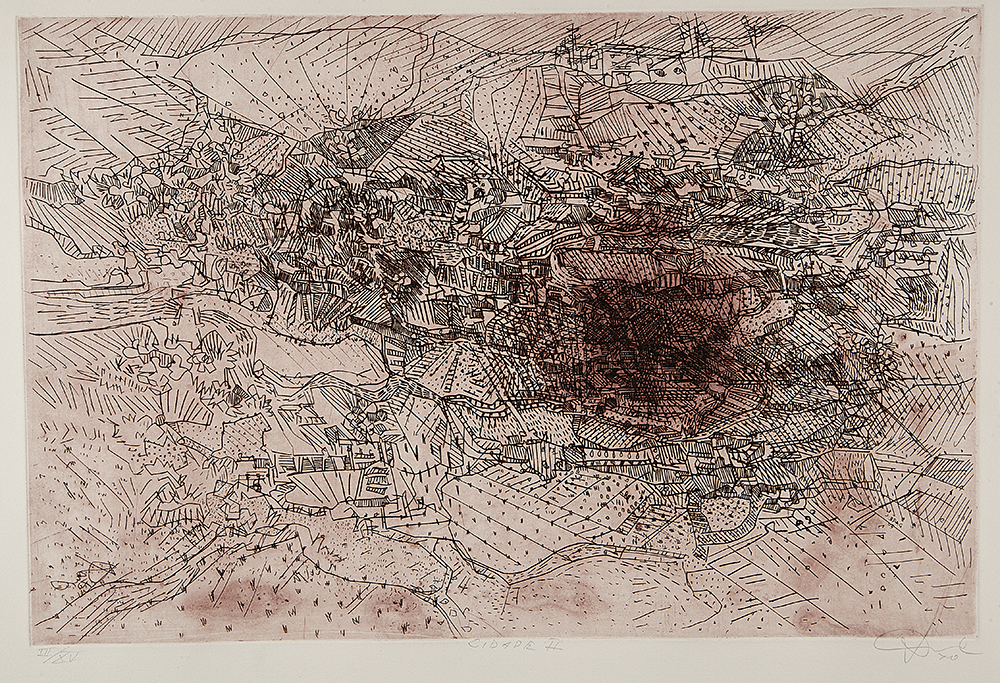 Utiliza variadas técnicas como desenhos, gravuras e pinturas, apresentando uma produção cujos principais temas são: as cidades imaginárias e os anjos e as máquinas.