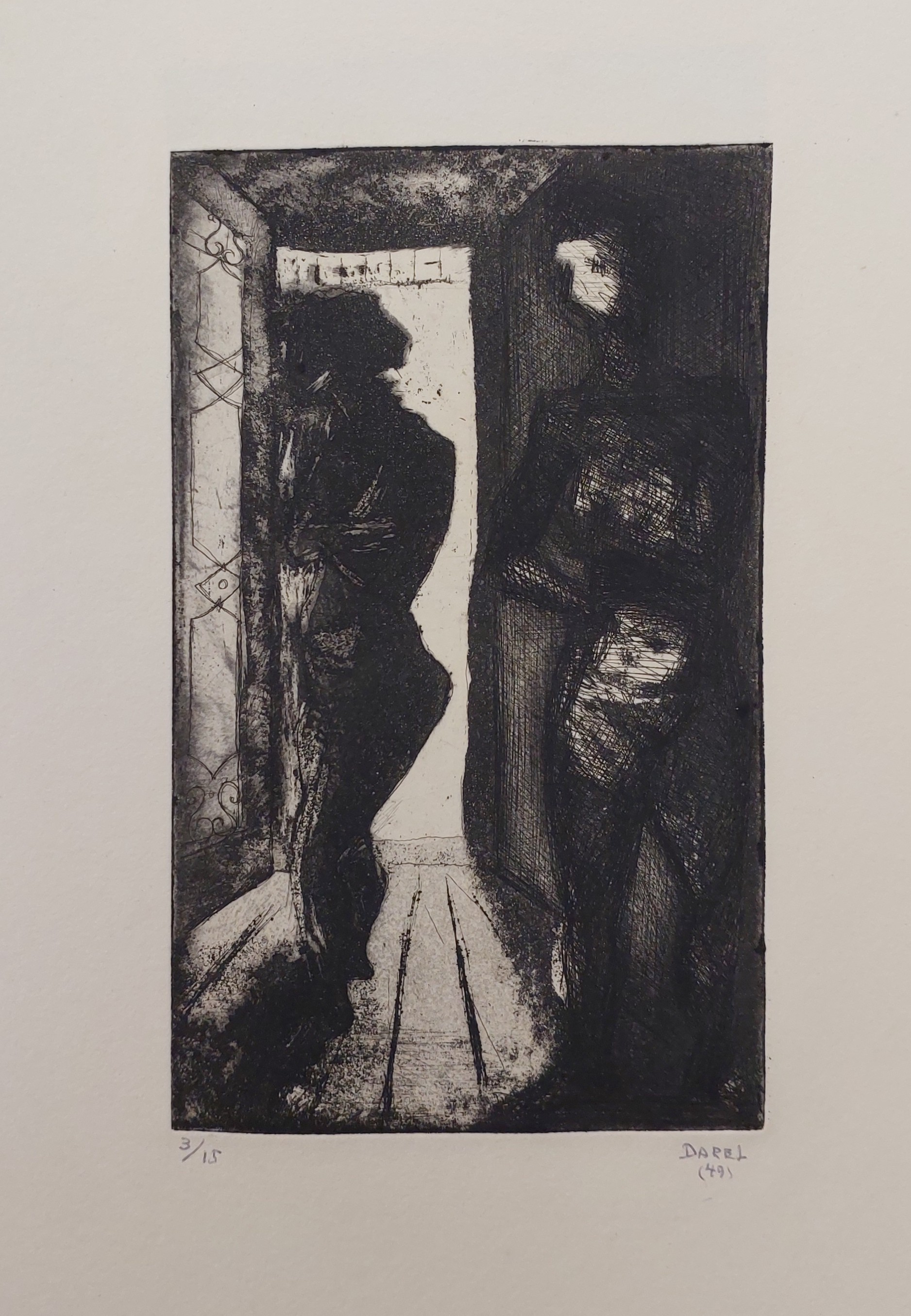 Darel Valença Lins (Palmares PE 1924). Gravador, pintor, desenhista, ilustrador, professor. Estuda na Escola de Belas Artes do Recife, atual Universidade Federal de Pernambuco - UFPE, entre 1941 e 1942, e atua como desenhista técnico. Muda-se para o Rio de Janeiro em 1946. Estuda gravura em metal com Henrique Oswald (1918 - 1965) no Liceu de Artes e Ofícios, em 1948. Dois anos depois, entra em contato com Oswaldo Goeldi (1895 - 1961). Atua como ilustrador em diversos periódicos, como a revista Manchete e os jornais Última Hora e Diário de Notícias. Entre 1953 e 1966, encarrega-se das publicações da Sociedade dos Cem Bibliófilos do Brasil. Com o prêmio de viagem ao exterior, recebido no Salão Nacional de Arte Moderna - SNAM do Rio de Janeiro, em 1957, viaja para a Itália, onde permanece até 1960. Ilustra diversos livros, como Memórias de um Sargento de Milícias, 1957, de Manuel Antônio de Almeida (1831 - 1861); Poranduba Amazonense, 1961, de Barbosa Rodrigues (1842 - 1909); São Bernardo, 1992, de Graciliano Ramos (1892 - 1953); e A Polaquinha, 2002, de Dalton Trevisan (1925). Leciona gravura em metal no Museu de Arte de São Paulo Assis Chateaubriand - Masp, em 1951; litografia na Escola Nacional de Belas Artes - Enba, no Rio de Janeiro, entre 1955 e 1957; e na Faculdade de Artes Plásticas da Fundação Armando Álvares Penteado - Faap, em São Paulo, de 1961 a 1964. Entre 1968 e 1969, realiza painéis como os do Palácio dos Arcos, sede do Ministério das Relações Exteriores, em Brasília.
