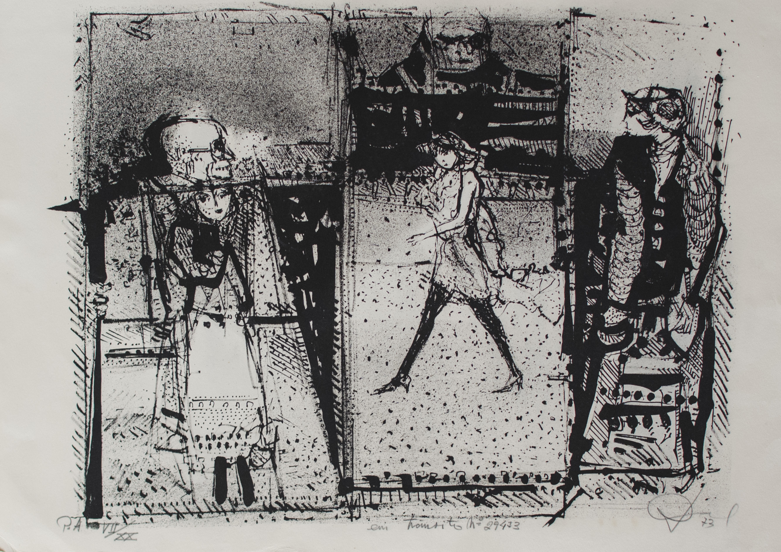 Darel Valença Lins (Palmares PE 1924). Gravador, pintor, desenhista, ilustrador, professor. Estuda na Escola de Belas Artes do Recife, atual Universidade Federal de Pernambuco - UFPE, entre 1941 e 1942, e atua como desenhista técnico. Muda-se para o Rio de Janeiro em 1946. Estuda gravura em metal com Henrique Oswald (1918 - 1965) no Liceu de Artes e Ofícios, em 1948. Dois anos depois, entra em contato com Oswaldo Goeldi (1895 - 1961). Atua como ilustrador em diversos periódicos, como a revista Manchete e os jornais Última Hora e Diário de Notícias. Entre 1953 e 1966, encarrega-se das publicações da Sociedade dos Cem Bibliófilos do Brasil. Com o prêmio de viagem ao exterior, recebido no Salão Nacional de Arte Moderna - SNAM do Rio de Janeiro, em 1957, viaja para a Itália, onde permanece até 1960. Ilustra diversos livros, como Memórias de um Sargento de Milícias, 1957, de Manuel Antônio de Almeida (1831 - 1861); Poranduba Amazonense, 1961, de Barbosa Rodrigues (1842 - 1909); São Bernardo, 1992, de Graciliano Ramos (1892 - 1953); e A Polaquinha, 2002, de Dalton Trevisan (1925). Leciona gravura em metal no Museu de Arte de São Paulo Assis Chateaubriand - Masp, em 1951; litografia na Escola Nacional de Belas Artes - Enba, no Rio de Janeiro, entre 1955 e 1957; e na Faculdade de Artes Plásticas da Fundação Armando Álvares Penteado - Faap, em São Paulo, de 1961 a 1964. Entre 1968 e 1969, realiza painéis como os do Palácio dos Arcos, sede do Ministério das Relações Exteriores, em Brasília.