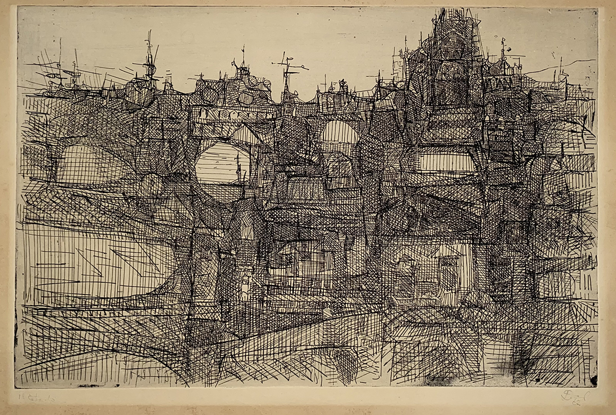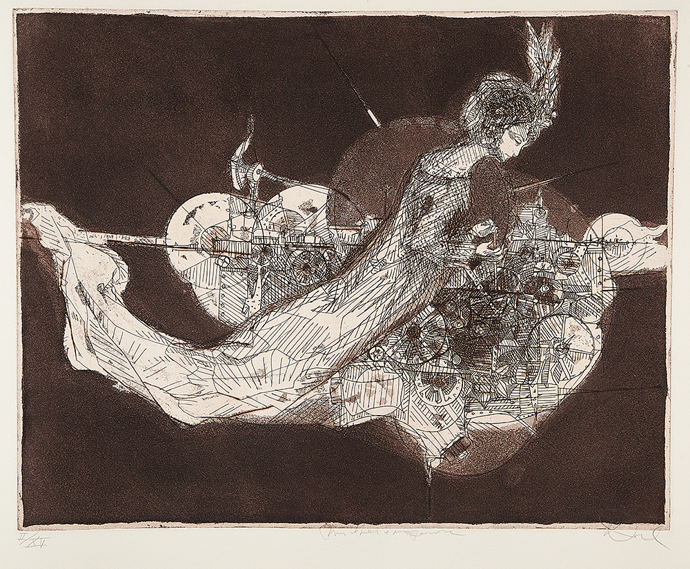 Utiliza variadas técnicas como desenhos, gravuras e pinturas, apresentando uma produção cujos principais temas são: as cidades imaginárias e os anjos e as máquinas.
