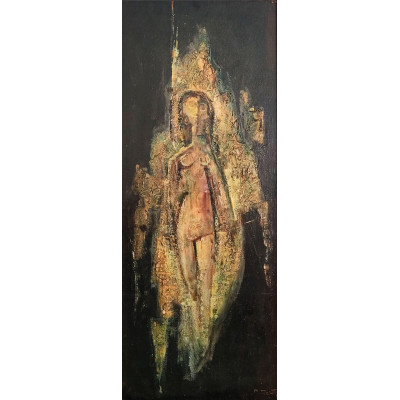 DARIO MECATTI – Sem título. Excepcional pintura a óleo com textura em areia, representando bailarinas em movimento, em plena harmonia de forma e ritmo. A composição, marcada por curvas fluidas e cores suaves, reflete o refinamento estético do estilo Art Déco, evidenciando o domínio técnico e a sensibilidade plástica do artista. Trata-se de uma obra provavelmente realizada na Itália, no início da carreira de Dario Mecatti, período em que o artista também se destacava como ilustrador e criador de cartazes. Dimensões: Altura 142 cm × Largura 135 cm.