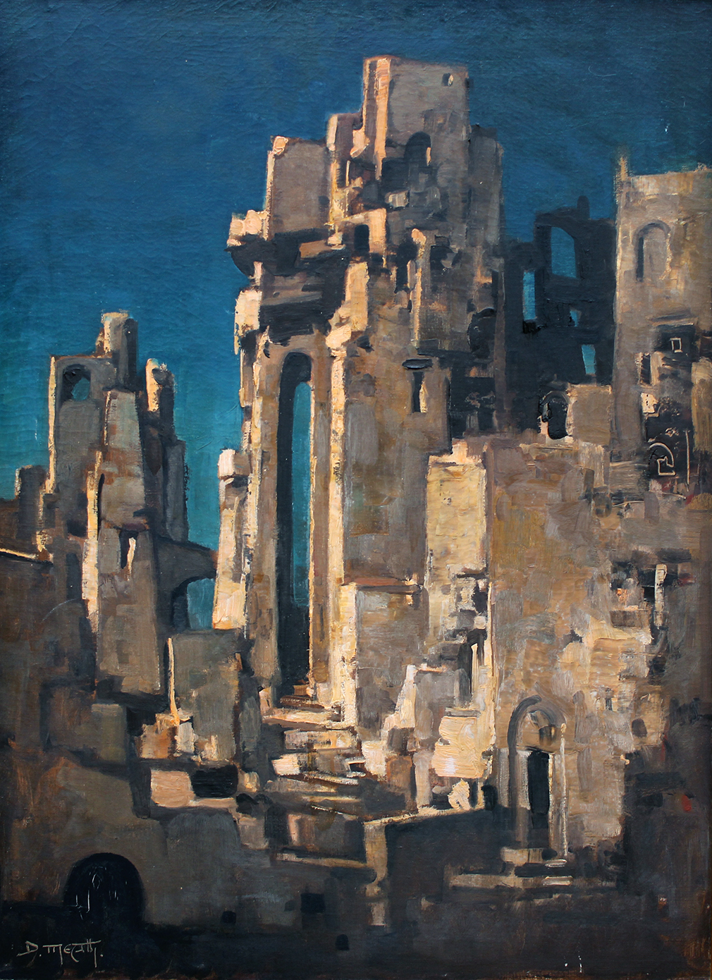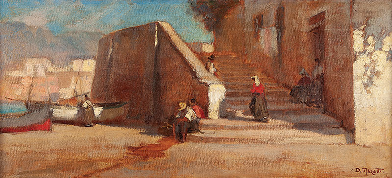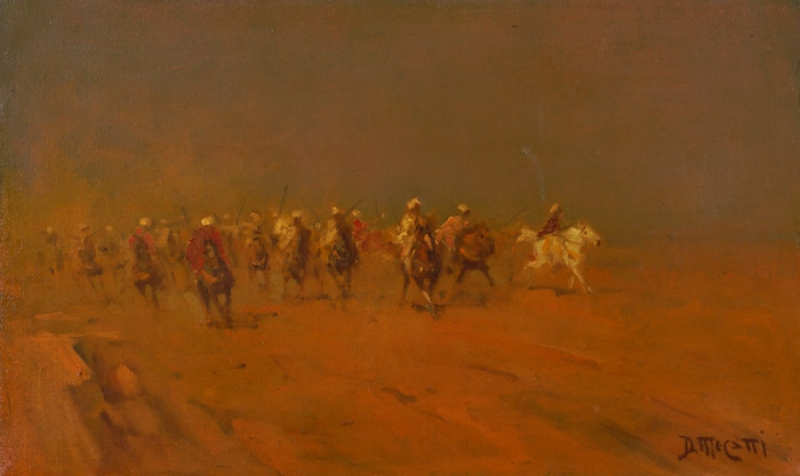 Dario Mecatti (Florença, Itália, 1909 - São Paulo, SP, 1976). Pintor e desenhista. Em Florença, por volta de 1927, pinta cartazes para a sala de cinema de m primo. Recebe orientação de Camillo Innocenti, pintor e professor italiano, porém não curse nenhuma instituição de ensino direcionado à arte. 1933 é o ano de sua primeira exposição, também na cidade de Florença. Em seguida, parte em viagem para o Norte da África, percorrendo diversos países como Líbia, Tunísia e Argélia e realizando exposições. Visita o Marrocos, entre 1936 e 1939, que lhe serve de inspiração para a produção de trabalhos que retratam os costumes da região. Em 1939, viaja para a Ilha de São Miguel, nos Açores. Em 1940, ao lado de Renzo Gori e Silvio Nigri, também pintores, viaja para o Brasil. É no Rio de Janeiro que realiza sua primeira exposição no país, na Sociedade Brasileira de Belas Artes. Viaja pelo estado de Minas Gerais para depois se fixar na cidade de São Paulo onde trabalha na Galeria Fiorentina entre 1941 e 1945. Em 1941 recebe a medalha de prata no sétimo Salão Paulista de Belas Artes. 1945 é o ano de casamento com a pintora Maria da Paz. Constrói, em 1946, casa-estúdio onde realiza, anualmente, exposições individuais. Retorna à Itália em 1947 e a partir de então, passa a viver e expor entre Brasil e Europa. Também realiza mostras em Buenos Aires e Montevidéu, nas décadas de 1940 e 1950. Entre os anos 1969 e 1978 é artista exclusivo da Galeria Irlandini na cidade do Rio de Janeiro. Em 1978, recebe homenagem póstuma no 42 Salão Paulista de Belas Artes. Apesar de ter transitado pela pintura de paisagens e retratos, Dario Mecatti se destaca, como artista plástico, pela pintura de gênero. As viagens ao Norte da África resultaram em trabalhos que retratam o cotidiano da região, assim como tradições e expressões culturais típicas. Mecatti filia-se, formalmente, ao grupo italiano de pintores italianos como macchiaioli cuja premissa é a reação à rigidez acadêmica. O grupo compreende a pintura como cor, luz e sombra cuja função é enfrentar direta e sinceramente, a realidade. Até os anos 1950, Mecatti compartilha destes princípios, momento em que cede lugar à geometrização das formas numa espécie de assimilação tardia dos paradigmas modernistas.