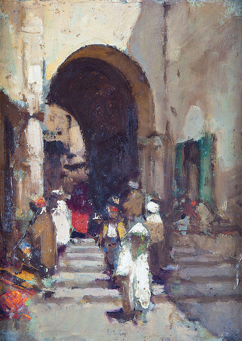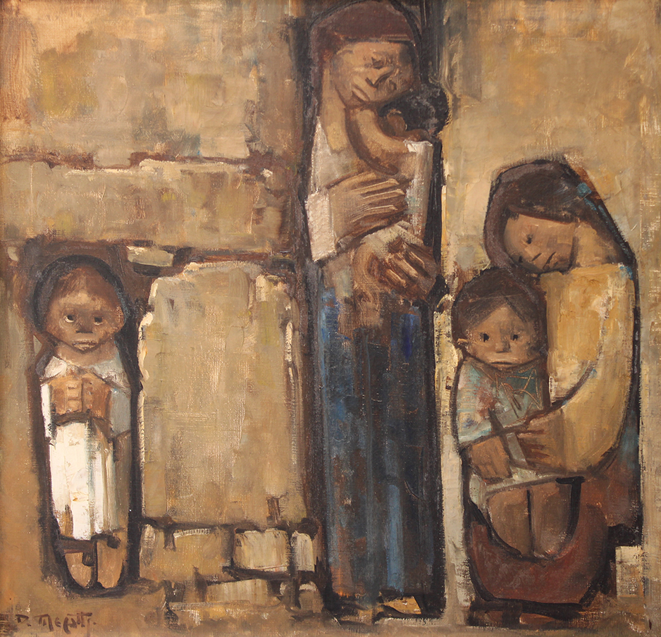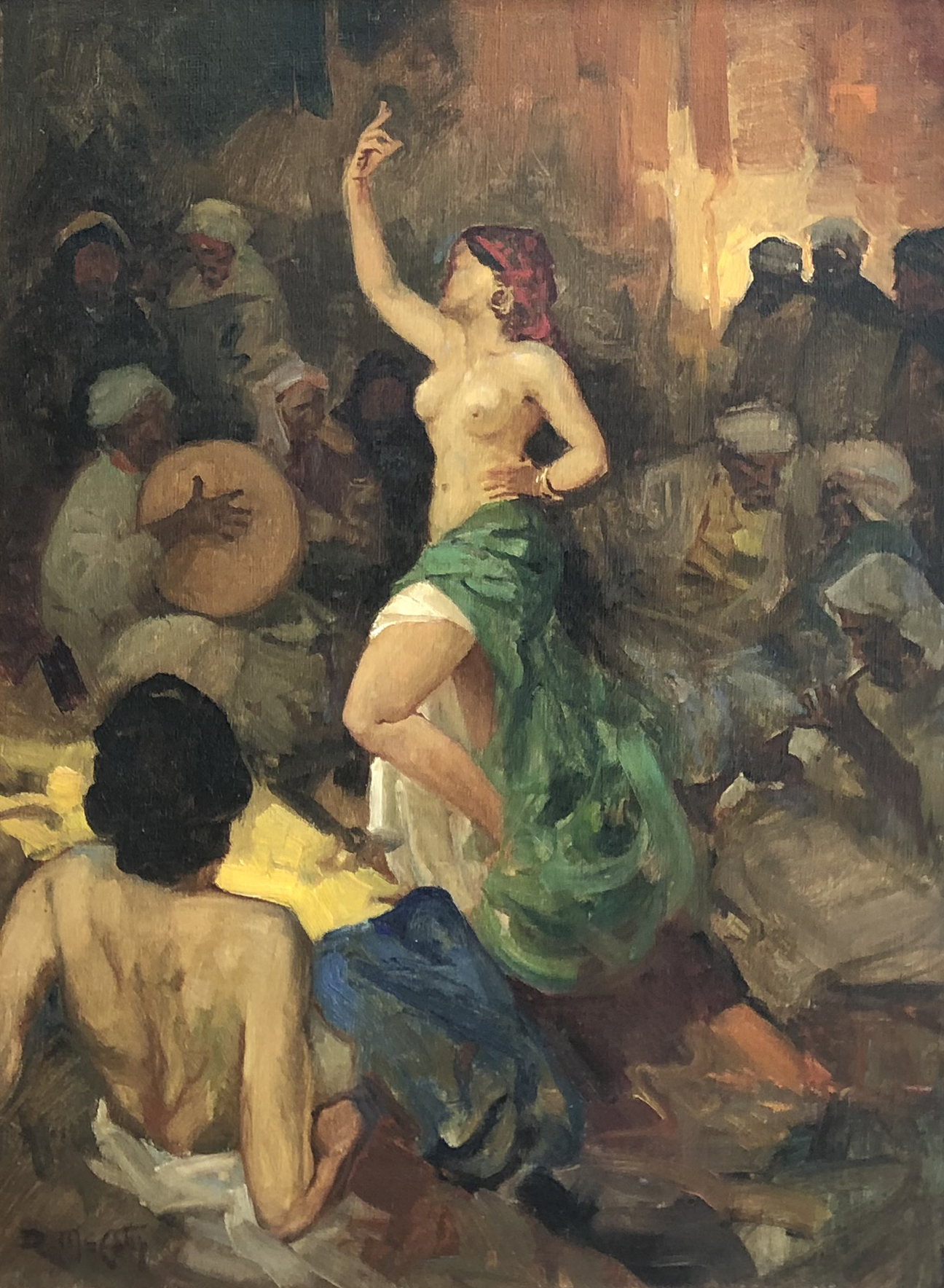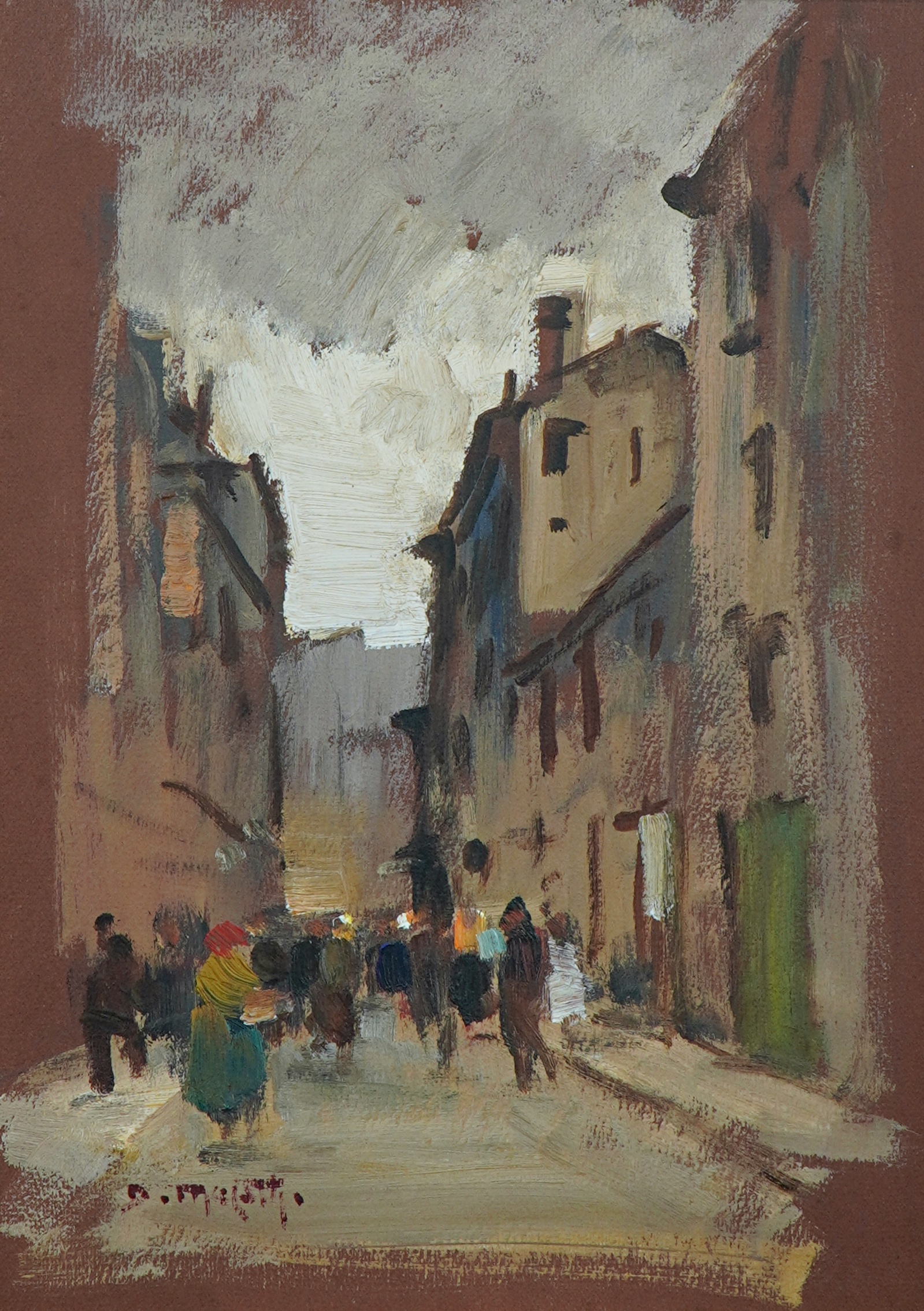 Dario Mecatti (Florença, Itália, 1909 - São Paulo, SP, 1976). Pintor e desenhista. Em Florença, por volta de 1927, pinta cartazes para a sala de cinema de m primo. Recebe orientação de Camillo Innocenti, pintor e professor italiano, porém não curse nenhuma instituição de ensino direcionado à arte. 1933 é o ano de sua primeira exposição, também na cidade de Florença. Em seguida, parte em viagem para o Norte da África, percorrendo diversos países como Líbia, Tunísia e Argélia e realizando exposições. Visita o Marrocos, entre 1936 e 1939, que lhe serve de inspiração para a produção de trabalhos que retratam os costumes da região. Em 1939, viaja para a Ilha de São Miguel, nos Açores. Em 1940, ao lado de Renzo Gori e Silvio Nigri, também pintores, viaja para o Brasil. É no Rio de Janeiro que realiza sua primeira exposição no país, na Sociedade Brasileira de Belas Artes. Viaja pelo estado de Minas Gerais para depois se fixar na cidade de São Paulo onde trabalha na Galeria Fiorentina entre 1941 e 1945. Em 1941 recebe a medalha de prata no sétimo Salão Paulista de Belas Artes. 1945 é o ano de casamento com a pintora Maria da Paz. Constrói, em 1946, casa-estúdio onde realiza, anualmente, exposições individuais. Retorna à Itália em 1947 e a partir de então, passa a viver e expor entre Brasil e Europa. Também realiza mostras em Buenos Aires e Montevidéu, nas décadas de 1940 e 1950. Entre os anos 1969 e 1978 é artista exclusivo da Galeria Irlandini na cidade do Rio de Janeiro. Em 1978, recebe homenagem póstuma no 42 Salão Paulista de Belas Artes. Apesar de ter transitado pela pintura de paisagens e retratos, Dario Mecatti se destaca, como artista plástico, pela pintura de gênero. As viagens ao Norte da África resultaram em trabalhos que retratam o cotidiano da região, assim como tradições e expressões culturais típicas. Mecatti filia-se, formalmente, ao grupo italiano de pintores italianos como macchiaioli cuja premissa é a reação à rigidez acadêmica. O grupo compreende a pintura como cor, luz e sombra cuja função é enfrentar direta e sinceramente, a realidade. Até os anos 1950, Mecatti compartilha destes princípios, momento em que cede lugar à geometrização das formas numa espécie de assimilação tardia dos paradigmas modernistas.