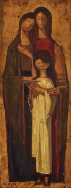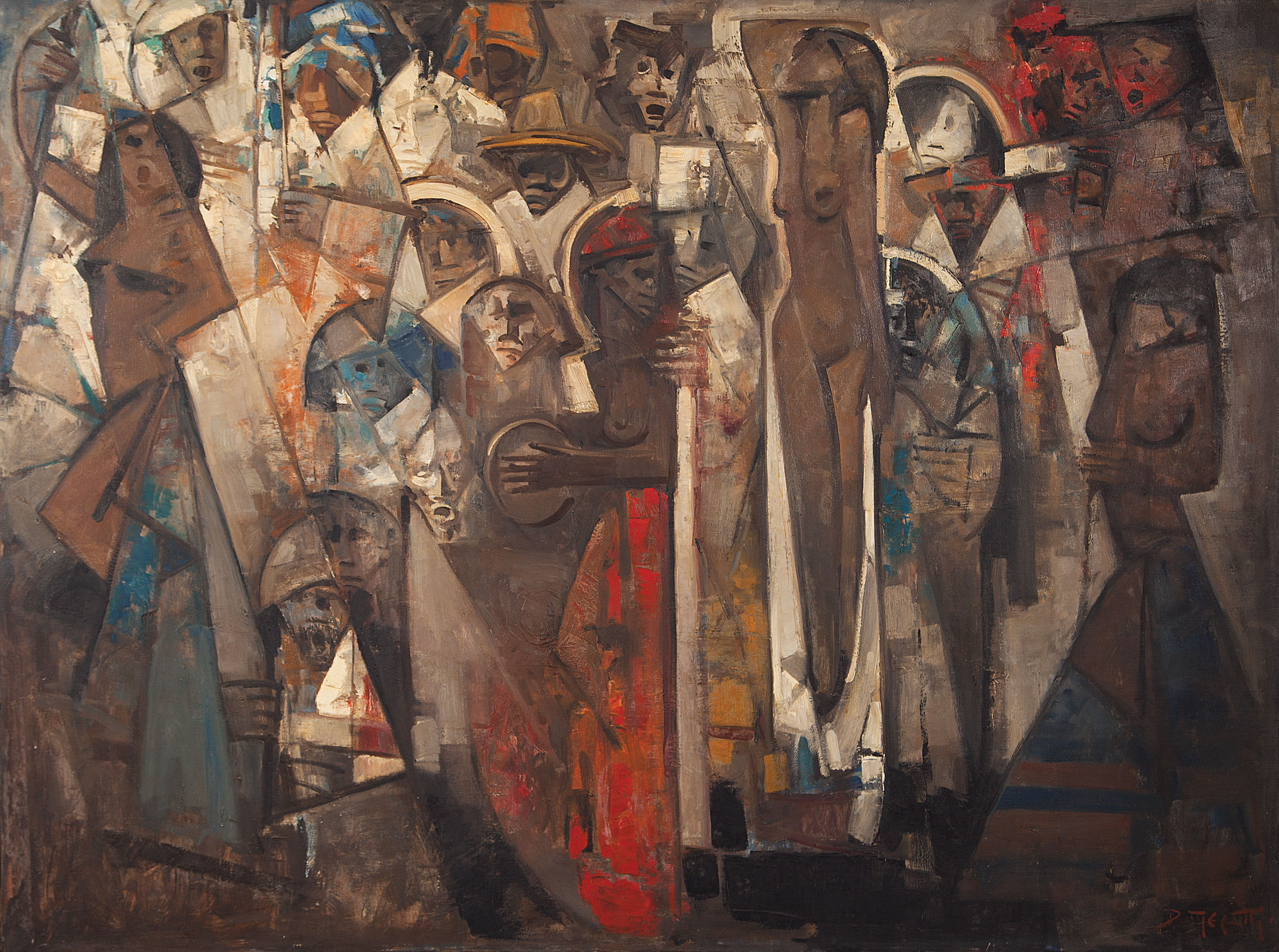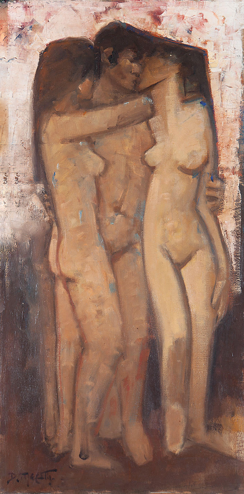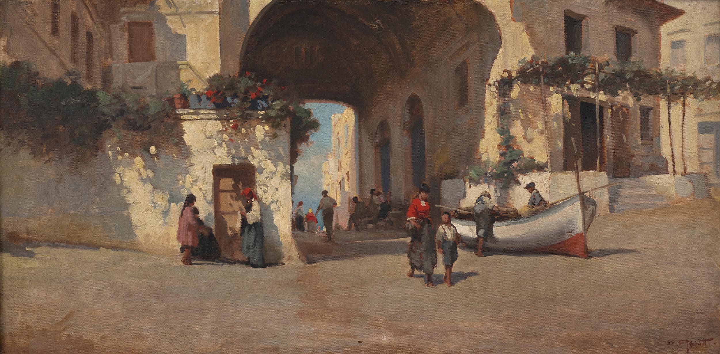 Dario Mecatti (Florença, Itália, 1909 - São Paulo, SP, 1976). Pintor e desenhista. Em Florença, por volta de 1927, pinta cartazes para a sala de cinema de m primo. Recebe orientação de Camillo Innocenti, pintor e professor italiano, porém não curse nenhuma instituição de ensino direcionado à arte. 1933 é o ano de sua primeira exposição, também na cidade de Florença. Em seguida, parte em viagem para o Norte da África, percorrendo diversos países como Líbia, Tunísia e Argélia e realizando exposições. Visita o Marrocos, entre 1936 e 1939, que lhe serve de inspiração para a produção de trabalhos que retratam os costumes da região. Em 1939, viaja para a Ilha de São Miguel, nos Açores. Em 1940, ao lado de Renzo Gori e Silvio Nigri, também pintores, viaja para o Brasil. É no Rio de Janeiro que realiza sua primeira exposição no país, na Sociedade Brasileira de Belas Artes. Viaja pelo estado de Minas Gerais para depois se fixar na cidade de São Paulo onde trabalha na Galeria Fiorentina entre 1941 e 1945. Em 1941 recebe a medalha de prata no sétimo Salão Paulista de Belas Artes. 1945 é o ano de casamento com a pintora Maria da Paz. Constrói, em 1946, casa-estúdio onde realiza, anualmente, exposições individuais. Retorna à Itália em 1947 e a partir de então, passa a viver e expor entre Brasil e Europa. Também realiza mostras em Buenos Aires e Montevidéu, nas décadas de 1940 e 1950. Entre os anos 1969 e 1978 é artista exclusivo da Galeria Irlandini na cidade do Rio de Janeiro. Em 1978, recebe homenagem póstuma no 42 Salão Paulista de Belas Artes. Apesar de ter transitado pela pintura de paisagens e retratos, Dario Mecatti se destaca, como artista plástico, pela pintura de gênero. As viagens ao Norte da África resultaram em trabalhos que retratam o cotidiano da região, assim como tradições e expressões culturais típicas. Mecatti filia-se, formalmente, ao grupo italiano de pintores italianos como macchiaioli cuja premissa é a reação à rigidez acadêmica. O grupo compreende a pintura como cor, luz e sombra cuja função é enfrentar direta e sinceramente, a realidade. Até os anos 1950, Mecatti compartilha destes princípios, momento em que cede lugar à geometrização das formas numa espécie de assimilação tardia dos paradigmas modernistas.